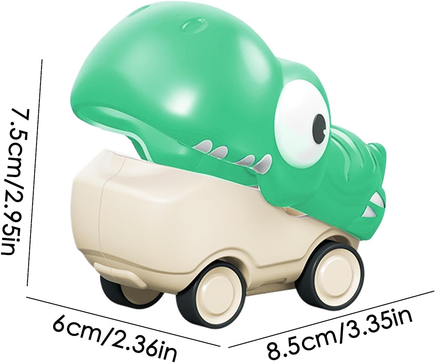 Forte propulsione a inerzia: premendo la testa del dinosauro, il principio di inerzia viene utilizzato per spostare l'auto in avanti. Senza bisogno di batterie, questo innovativo giocattolo a forma di dinosauro offre movimenti facili e ore di divertimento per i bambini Design simulato di dinosauro: caratterizzata da un design simulato di dinosauro e da un'immagine di dinosauro dei cartoni animati, questa macchinina coinvolge e aumenta la curiosità dei bambini, favorendo un desiderio incisivo di esplorare Durata senza pari: realizzato in resistente materiale ABS, questo giocattolo per auto dinosauro è robusto e non facile da danneggiare. Le sue proprietà resistenti all'usura e alla caduta lo rendono un buon giocattolo per i bambini a cui piace giocare duro Incoraggia l'apprendimento giocando: sviluppa le capacità cognitive e logiche di tuo figlio divertendoti con il giocattolo della macchina dinosauro. Aiutali a imparare e svilupparsi mentre giocano, coltivando abilità pratiche e interesse per i fenomeni fisici Facile da maneggiare per le mani piccole: dimensioni ideali di 8,5 x 6 x 7,5 cm, questa macchinina dinosauro si adatta comodamente alle mani piccole, rendendola adatta ai bambini di età superiore a 1 anno da manovrare