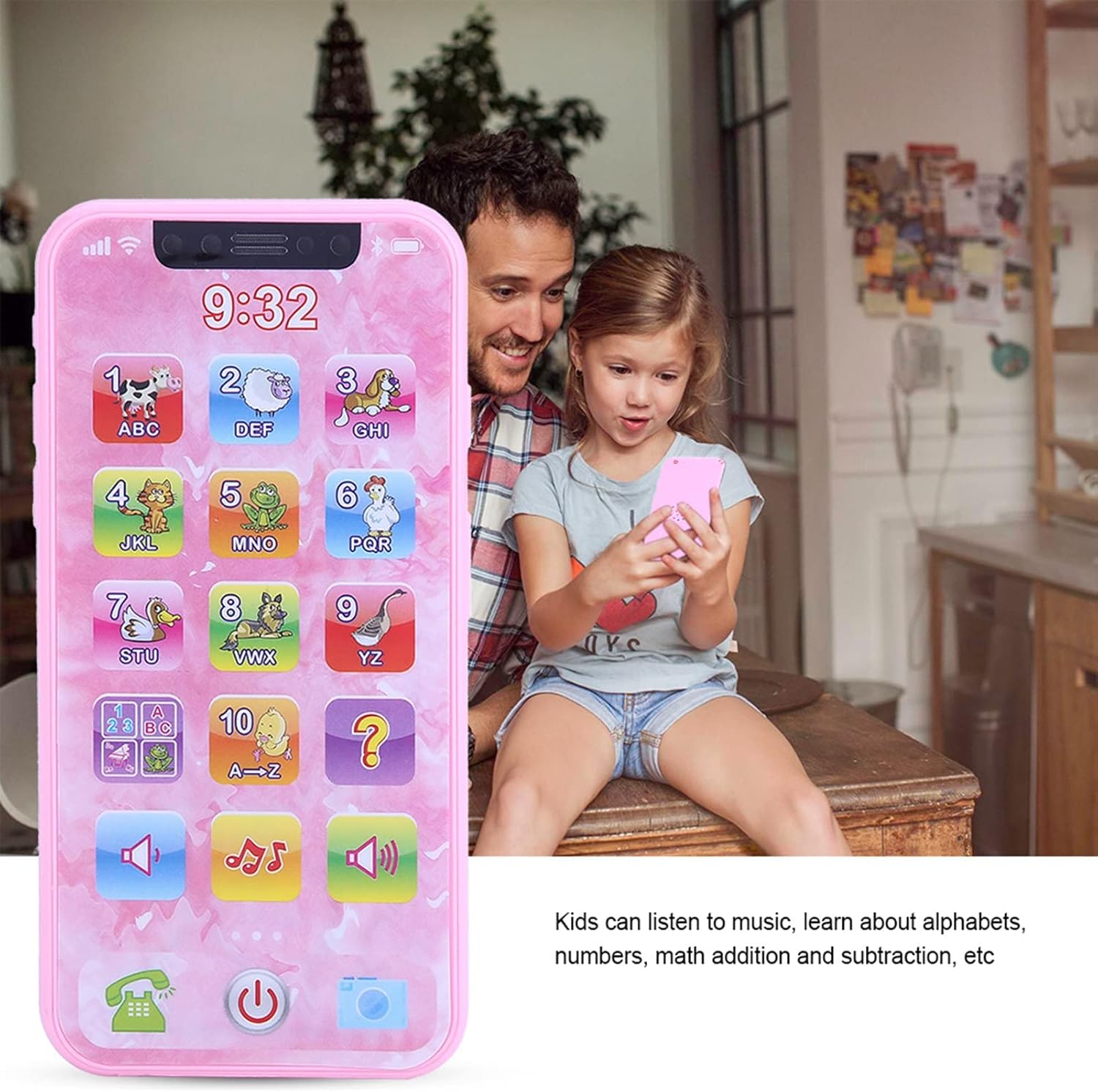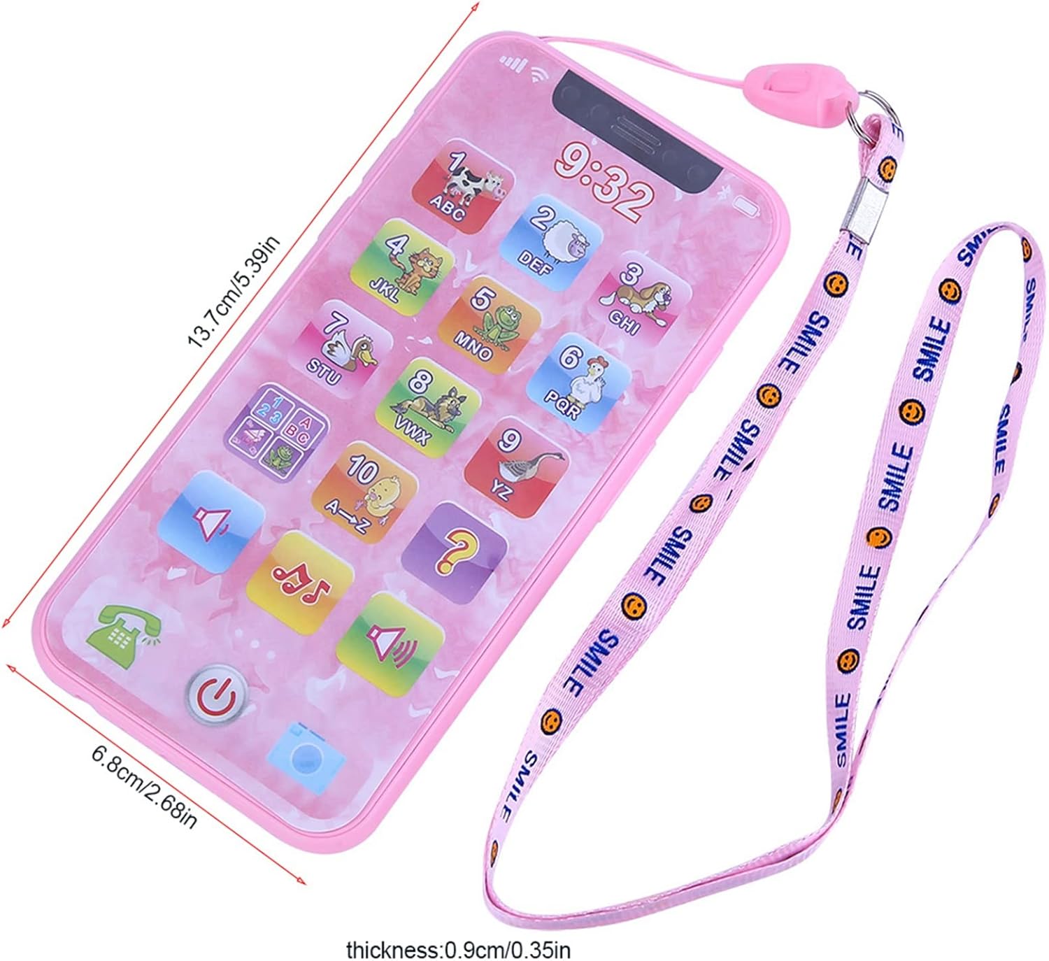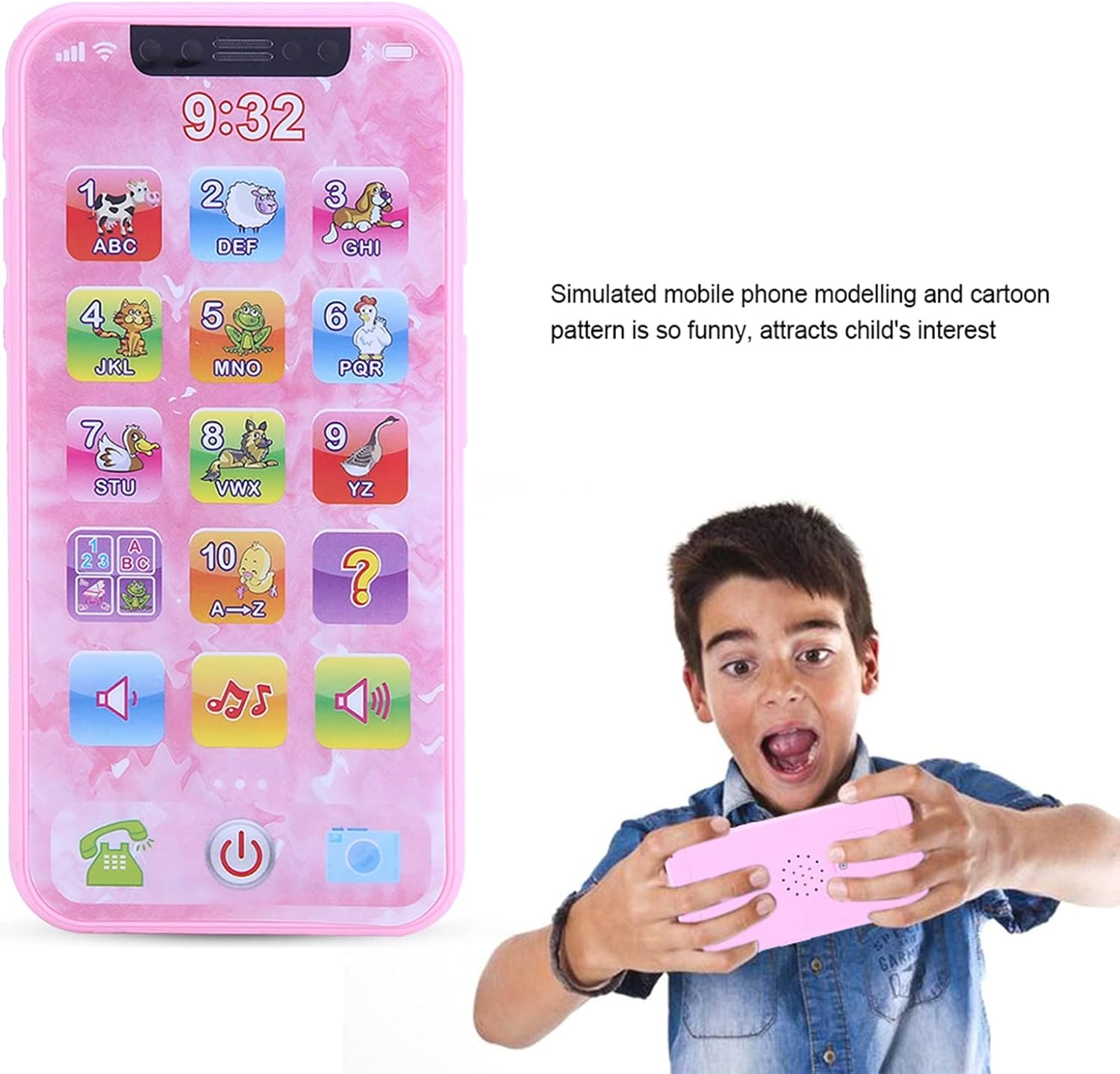 Il giocattolo è realizzato in plastica di alta qualità, ecologico e non tossico, sicuro per giocare Simulato modellazione cellulare e cartoni animati modelli sono così divertenti, suscitare l'interesse di Aiuta a sviluppare l'udito, la percezione musicale e la capacità di pensiero del bambino e allena la sua memoria e concentrazione Viene fornito con una corda sospesa, facile da trasportare, perfetta macchina di apprendimento prescolare per oltre 3 anni Contiene una conoscenza enorme, può conoscere l'alfabeto, i numeri, l'aggiunta matematica di base e la sottrazione, ecc