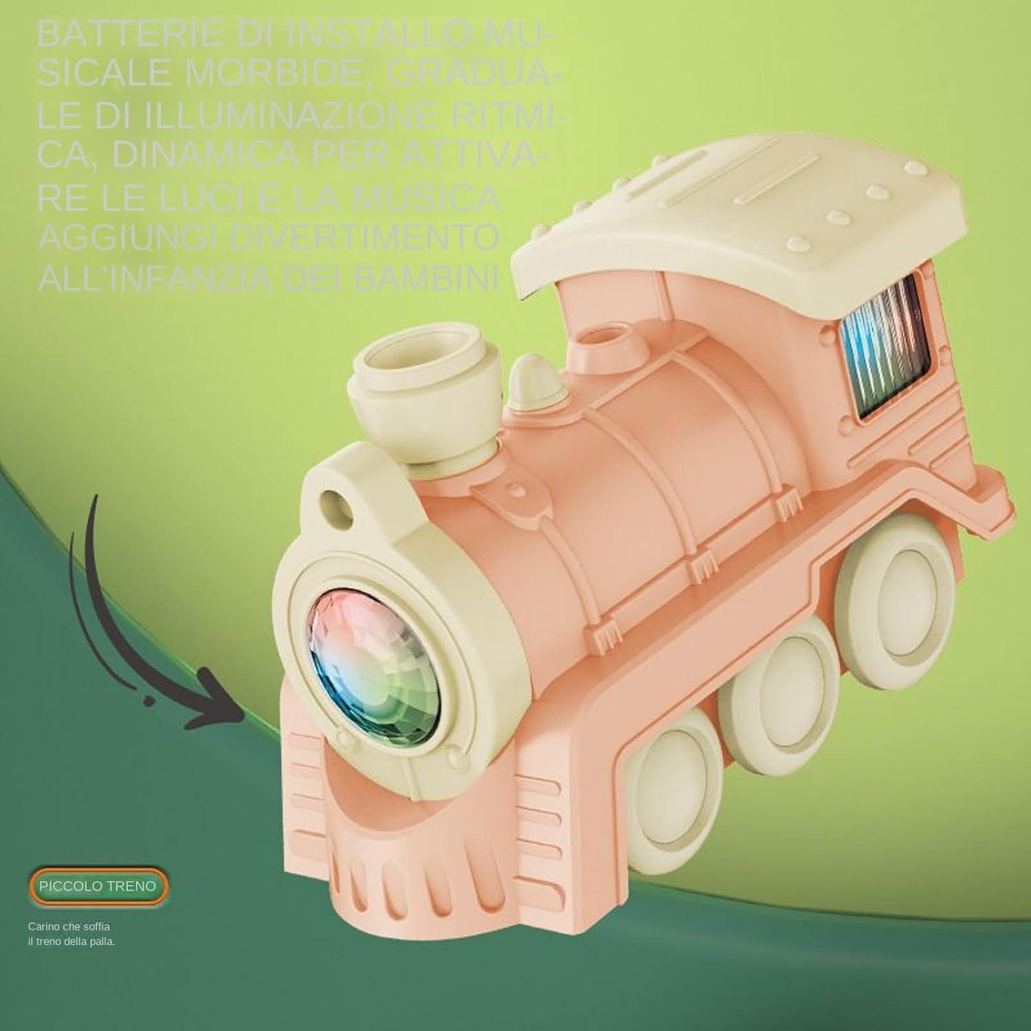 Resistenza e Sicurezza: Utilizzando materiali durevoli e innocui, è privo di spigoli pericolosi e esalazioni, garantendo interazioni piacevoli per bambini in ogni contesto ludico Forma Incantevole:Caratterizzato da colori vivaci e una del adorabile, è progettato per affascinare i bambini, migliorare la stimolazione sensoriale e offrire infinite opportunità per scenari di gioco simbolico pieno di gioia. Potenzia Sensorialità:Favorisce la crescita sensoriale grazie a treni giocattolo che allenano le abilità percettive, supportano lo sviluppo di competenze chiave e nutrono la creatività con attività adatte a piccoli apprendisti, migliorando le capacità cognitive passo dopo passo Gioco Interattivo:Comprende scivolo, funzione spray, sfera levitante, effetti luminosi e musica per coinvolgere attivamente il bambino, sviluppando capacità cognitive ed esplorazione immaginativa attraverso elementi sensoriali dinamici e multifunzionali. La Scienza del : Il flusso d'aria controlla il movimento della sfera, creando un affascinante effetto di levitazione che favorisce l'apprendimento scientifico mentre incoraggia l'esplorazione creativa durante il gioco con questo innovativo .
