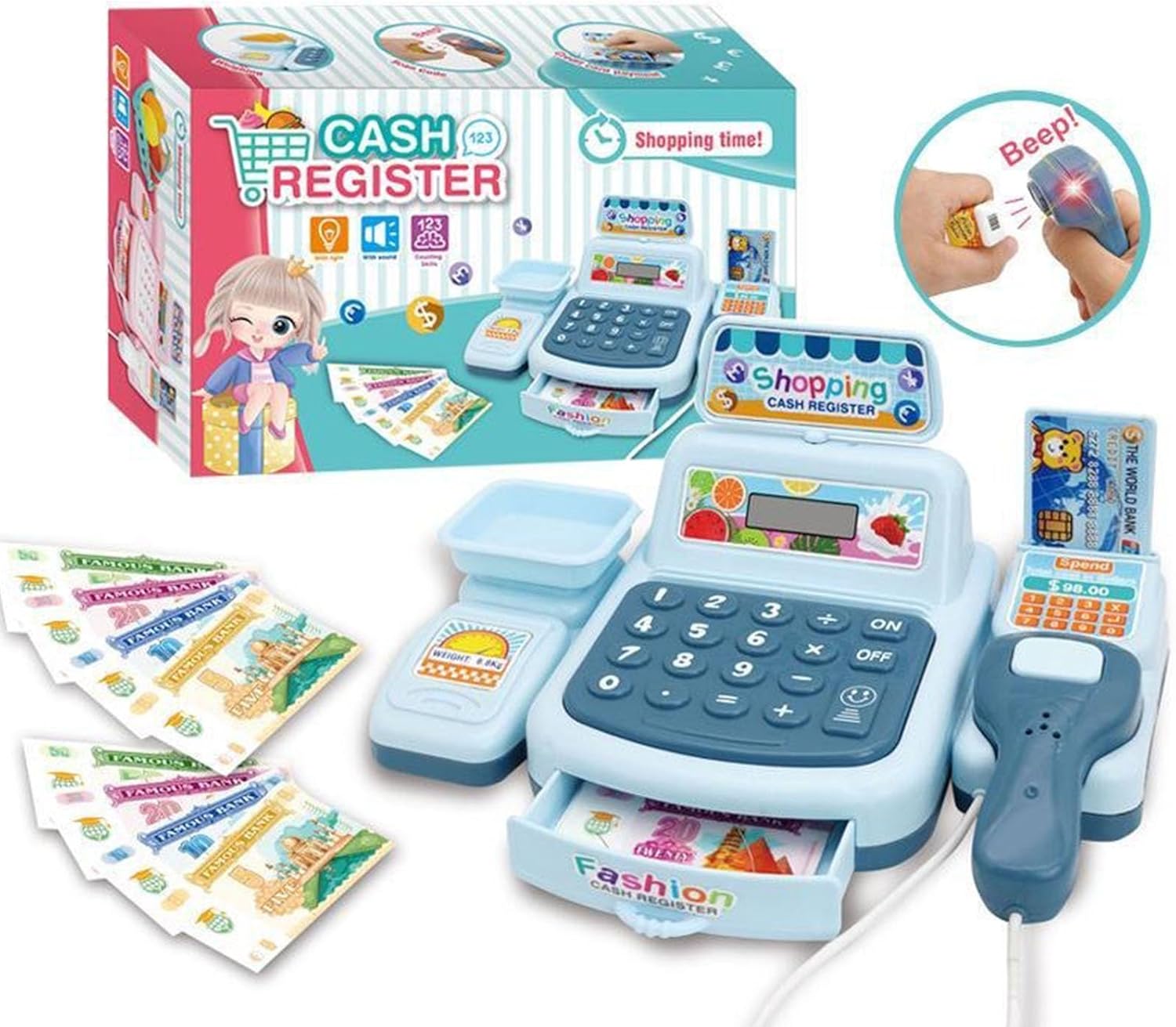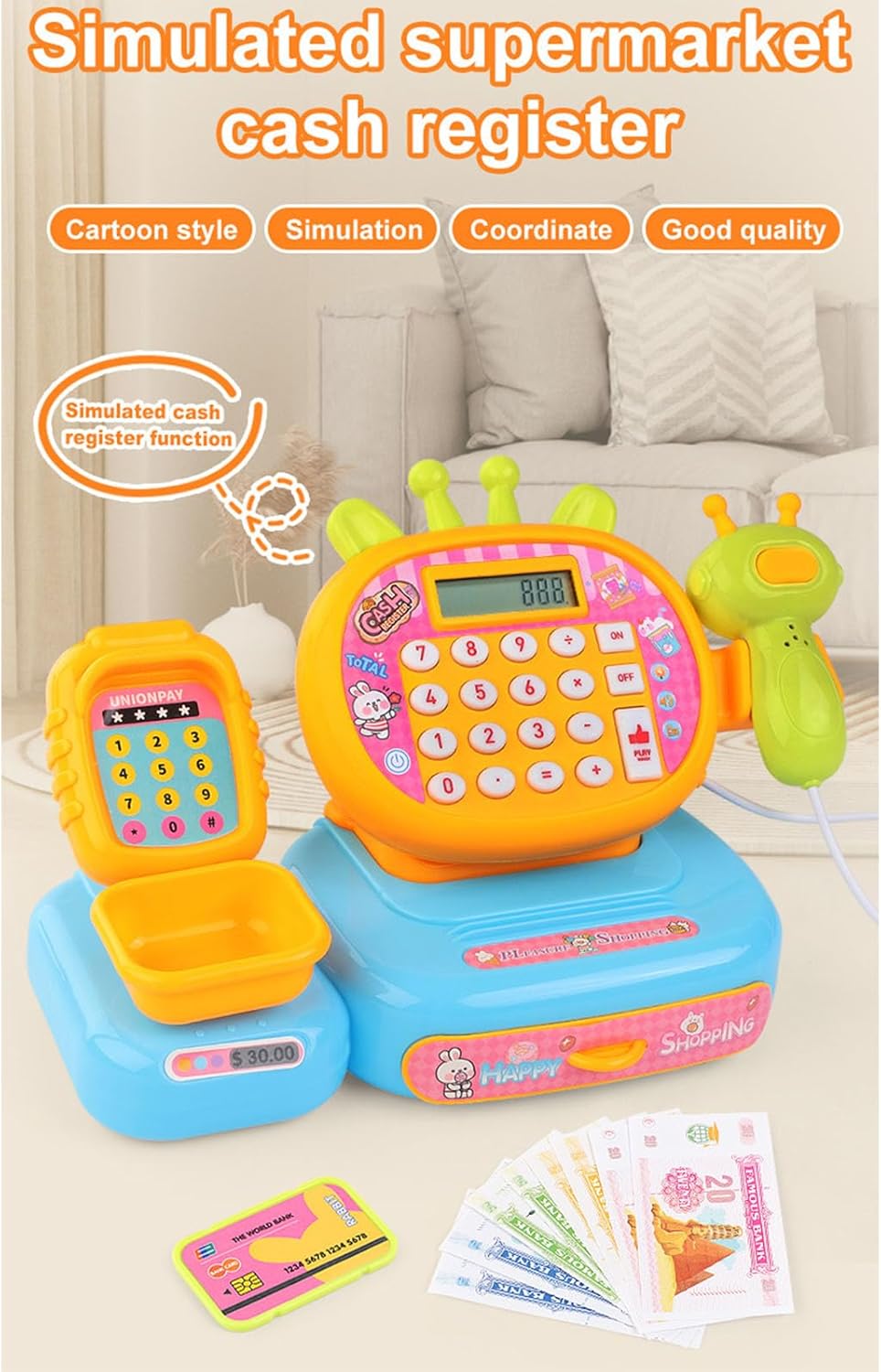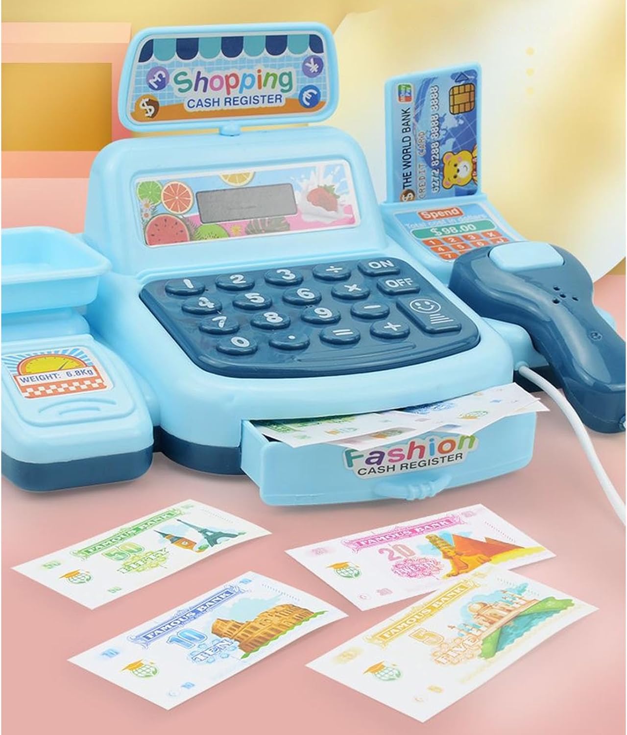 Ideale per bambini dai 3 anni in e genitori in cerca un giocattolo educativo che combini l'apprendimento attraverso gioco, perfetto per legame familiare o le attività in classe prescolare Contiene calcolatrice integrata, uno scanner rimovibile e articoli per la spesa per un gioco coinvolgente, incoraggiando riconoscimento dei numeri, esercitazioni matematiche base e narrazione fantasiosa Questo finto registratore cassa simula un'esperienza realistica alla cassa del supermercato, favorendo l'alfabetizzazione finanziaria e le abilità sociali precoci attraverso giochi ruolo interattivi con materiali plastici sicuri per i bambini Crea scenari domestici coinvolgenti, dalla spesa alla gestione del negozio, completi denaro finto e suoni scansione dei prodotti per autentiche avventure gioco finzione design compatto con scomparti organizzati semplifica la pulizia mantenendo gioco, rendendolo un'aggiunta efficiente in termini spazio a qualsiasi sala giochi o asilo nido