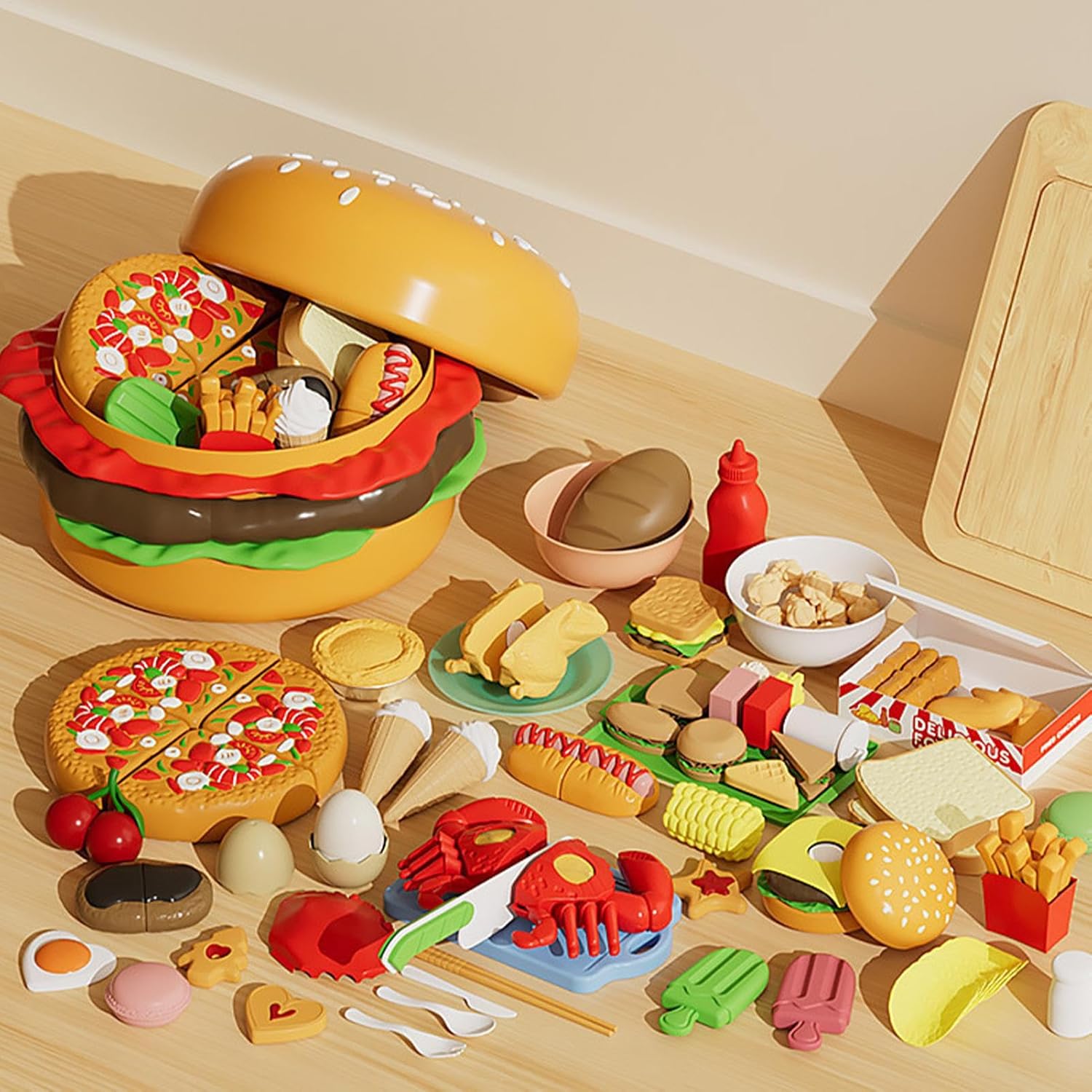 Organizzazione intuitiva: il caratteristico contenitore per hamburger favorisce lo sviluppo positivo del bambino attraverso un gioco stimolante l'immaginazione, semplifica i sistemi di smistamento e offre un'eccellente mobilità per i set da cucina da gioco Esperienza di gioco coinvolgente: colori freschi e design realistici ispirano giochi di cucina creativi, con accessori dettagliati per migliorare il divertimento di ruolo dei bambini Motoria e pensiero: allena le abilità motorie e promuove il pensiero logico con alimenti interattivi in cucina a misura di bambino. Legame familiare attraverso il gioco: supporta il divertimento multiplayer con giochi di ruolo, rafforza le relazioni familiari e promuove interazioni sociali significative durante il gioco con il set da cucina per bambini ABS resistente: lo speciale materiale ABS durevole rende il set da cucina giocattolo estremamente resistente per la cottura creativa quotidiana e favorisce il gioco di ruolo sicuro per anni