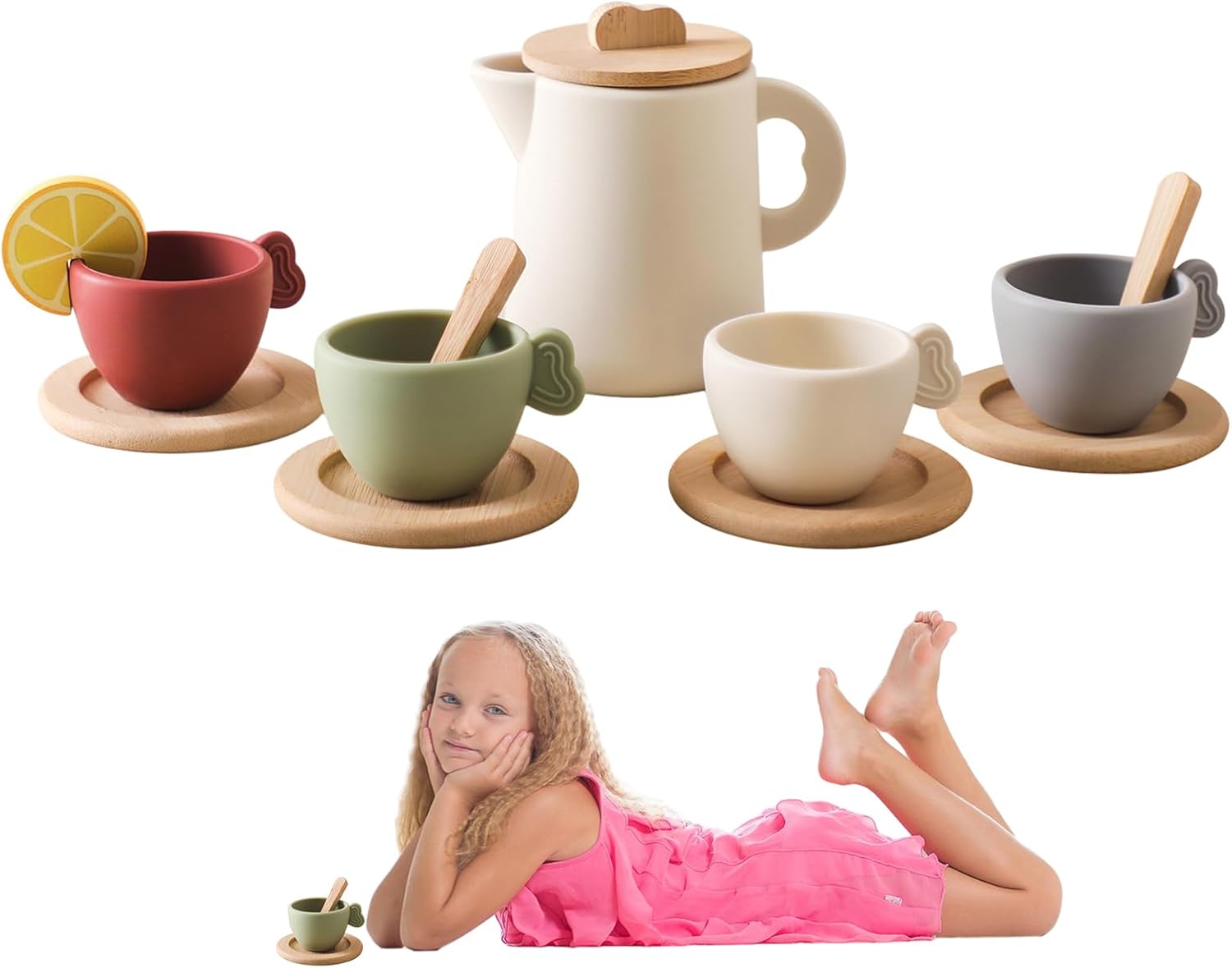 Facile da pulire]: il set da tè per bambine è dotato di materiale in silicone e legno sicuro e durevole che assicura una facile pulizia dopo il disordinato gioco 'ora del tè. Inoltre, la struttura robusta e resistente all'usura garantisce ore di divertimento senza problemi per i tuoi bambini. Sicuro e fluido]: offri alle tue bambine un'esperienza di tea party sicura e senza preoccupazioni con il nostro set finemente lucidato. Le sue superfici lisce e di bave consentono ai bambini di giocare a proprio agio, mentre i genitori possono stare certi che le mani dei bambini saranno curate senza spigoli appuntiti. Ospita un tea party memorabile]: con questo set da tea party per bambine, i bambini possono liberare la loro creatività e immaginazione. Guardali mentre organizzano il loro affascinante tea party e mettono in pratica le loro abilità di hostess, perfette per i bambini 3 agli 8 anni che amano intrattenere e divertirsi con i loro amici. Incoraggia la creatività del bambino]: stimola l'immaginazione del bambino con il nostro set da tè per bambine, incoraggiando il gioco di ruolo e le capacità di networking. Migliora il loro linguaggio e il loro sviluppo sociale divertendosi con i propri . per creare una esperienza di tea party. Strumento multiuso]: questo set da tè per bambine è un must per ogni occasione, comprese le vacanze di Capodanno, Natale, compleanni, Ringraziamento, Festa dei bambini e Pasqua. Il bambino sarà deliziato da questa nuova aggiunta ai suoi giocattoli, incoraggiando la creatività e le abilità sociali attraverso tea party divertenti e interattivi.