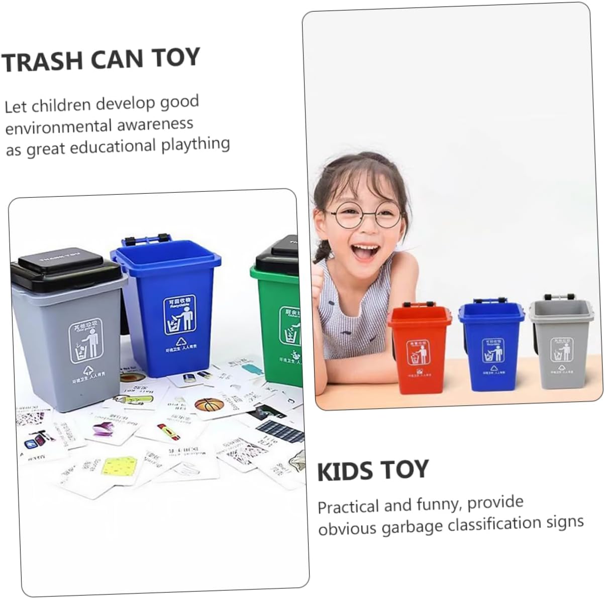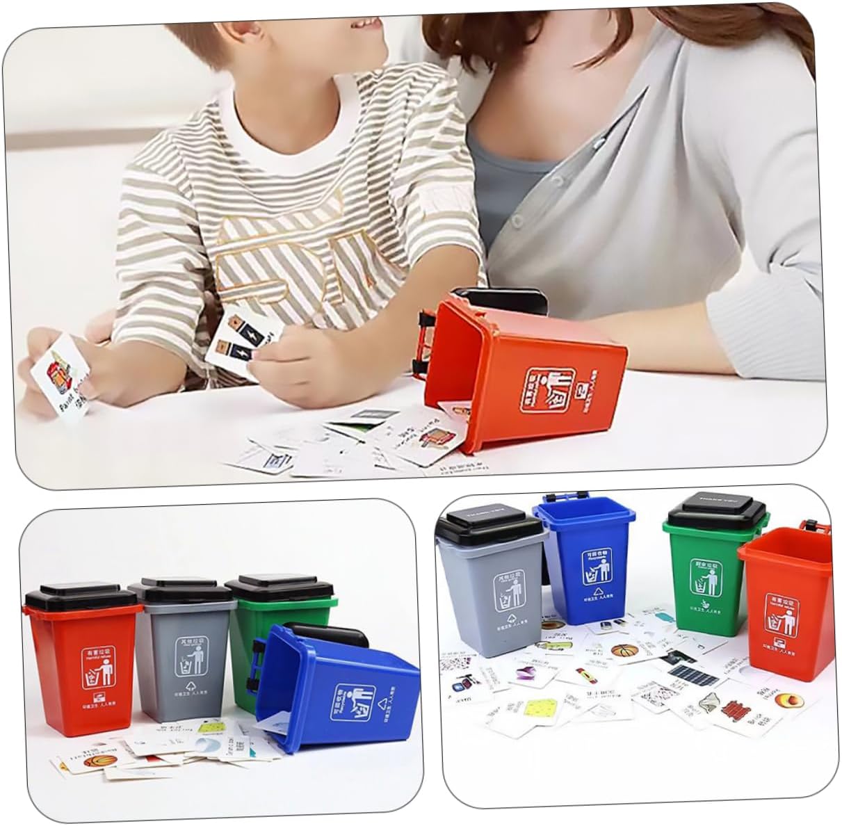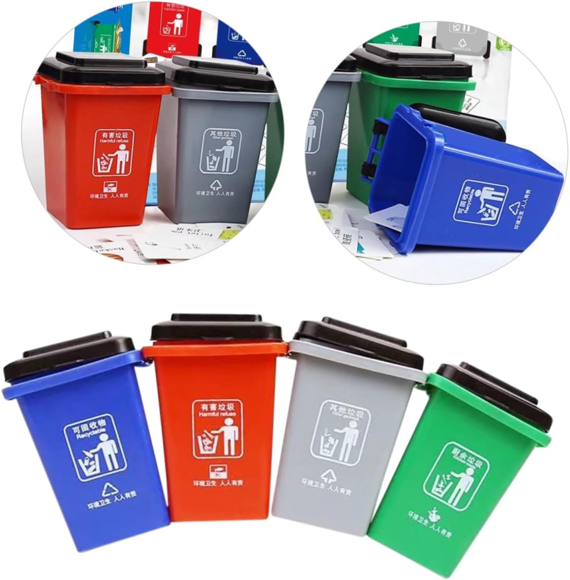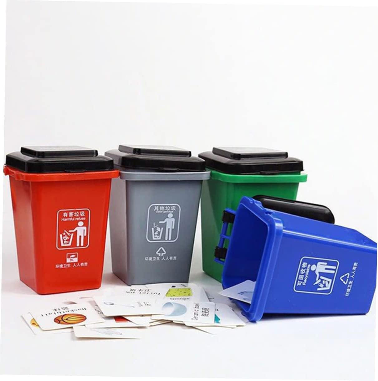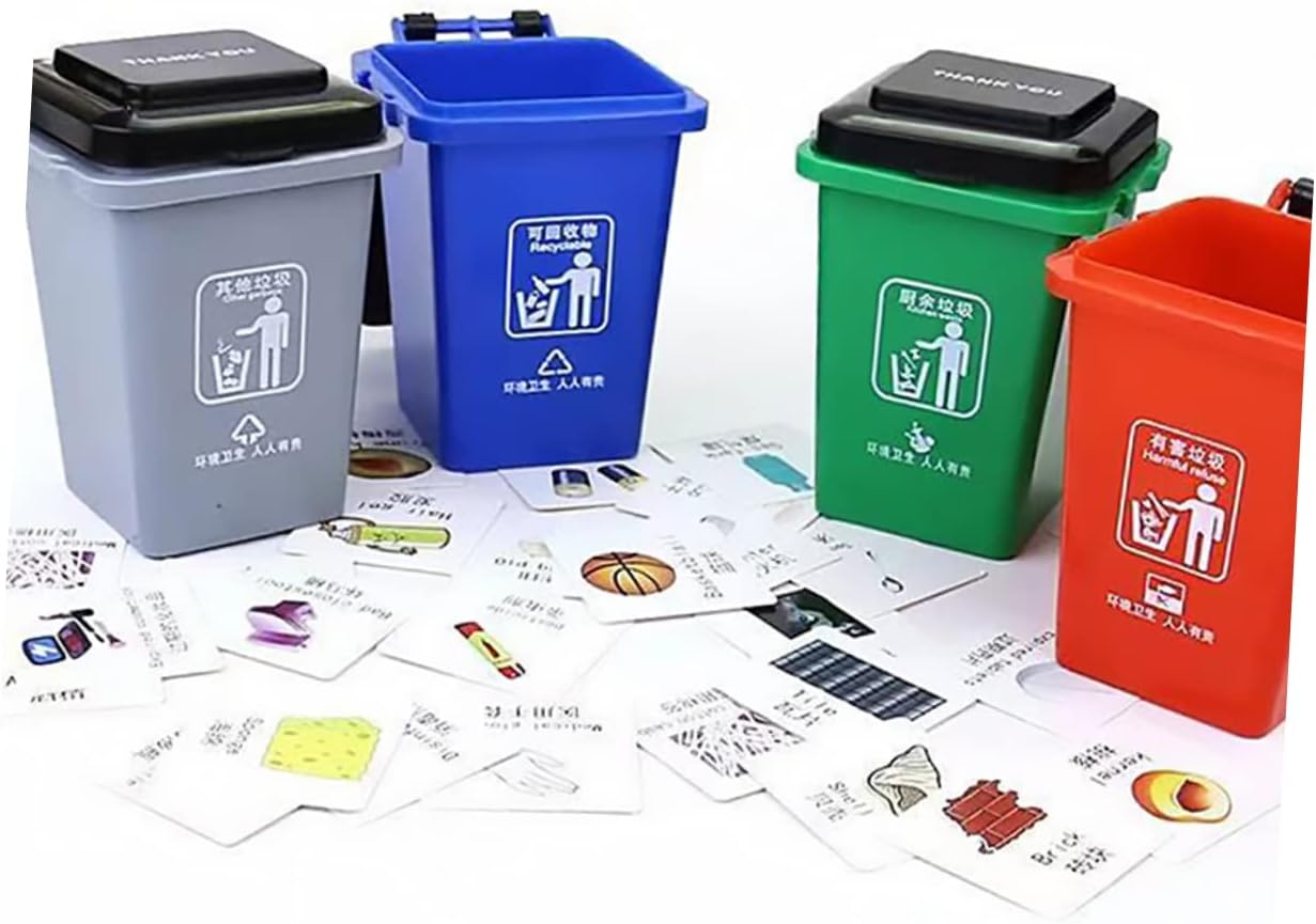 Giocattolo per la classificazione dei rifiuti - ti fa conoscere i segnali di classificazione dei rifiuti fin dall'infanzia per sviluppare la consapevolezza ambientale, cestino da scrivania Mini cestino - aiuta i bambini a imparare a separare i rifiuti in giovane età e sviluppare buone abitudini di vita, per la classificazione dei rifiuti Piccolo bidone della spazzatura - il materiale selezionato del giocattolo è sicuro e pratico per te, giocattoli per bambini per la classificazione dei rifiuti Giocattolo per lo smistamento dei rifiuti - dà consapevolezza ambientale Sviluppato come un grande giocattolo educativo e in miniatura per la classificazione dei bidoni della spazzatura - fatto di plastica, non cammina facilmente quando si cammina, piccolo bidone della spazzatura