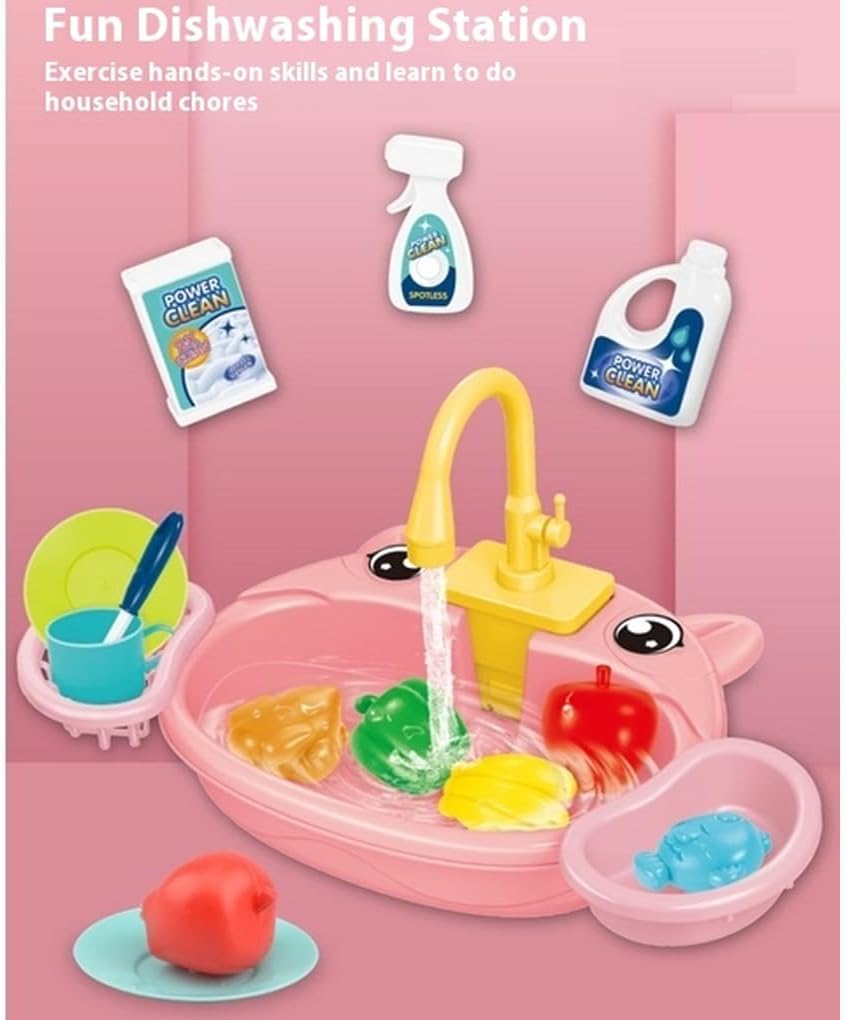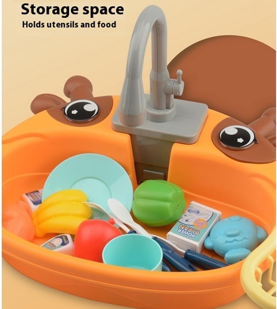 Gioco interattivo: i bambini possono divertirsi con questo lavandino elettrico a forma di cartone animato dotato di acqua circolante, che offre un'esperienza realistica di lavello da cucina Giocattolo educativo: questo lavello elettrico e giocattolo d'acqua è dotato di cibo e utensili da cucina per far finta di cucinare e pulire dopo i pasti Facile da montare: il giocattolo per bambini, un lavello da cucina simulato, è facile da montare con tutti i componenti necessari e le istruzioni incluse Resistente: realizzato in plastica, questo lavello da gioco è robusto e affidabile, offrendo un sicuro in cui i bambini possono giocare e imparare a risparmiare acqua e a mantenere l'igiene Divertimento realistico: versare acqua nel rubinetto di questo lavandino elettrico per farla uscire, rendendo l'esperienza di gioco più interattiva e coinvolgente per i bambini