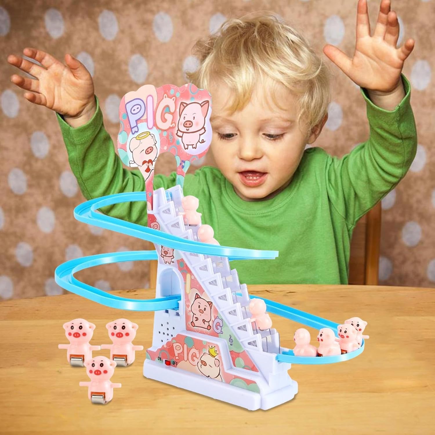 SCIVOLO ALL'AVVENTURA: il giocattolo Go Racer Track, che include un elemento scivolo, consente al modello animale di zoomare lungo lo scivolo e correre velocemente lungo la pista. I tuoi bambini adoreranno l'eccitazione extra che questa funzionalità porta al loro di gioco. DESIGN INNOVATIVO: costruisci più strutture di binari come scale e scivoli utilizzando l'innovativo design costruttivo del giocattolo di pista Go Racer. Scatena la creatività di tuo figlio e richiede 2 batterie AA (vendute separatamente). Avventura nella fauna selvatica: lascia che i bambini provino l'emozione di osservare e apprendere il comportamento degli animali con il giocattolo Go Racer Truck. Dotati di modelli di animali che possono lungo le scale, i bambini possono esplorare come si muovono gli animali e correre lungo i binari con movimenti realistici. Sviluppa il pensiero logico: sperimenta un modo divertente e stimolante per migliorare il pensiero logico con il giocattolo Go Racer Truck. Costruendo camion, i bambini sviluppano capacità di costruzione di puzzle, strategie di risoluzione dei problemi e lavorano in . MIGLIORA LA COMPRENSIONE: Con il camion giocattolo Go Racer, i bambini possono sviluppare una comprensione più profonda dei principi fisici di base osservando la velocità e la traiettoria di un vagone elettrico mentre sfreccia lungo un binario.