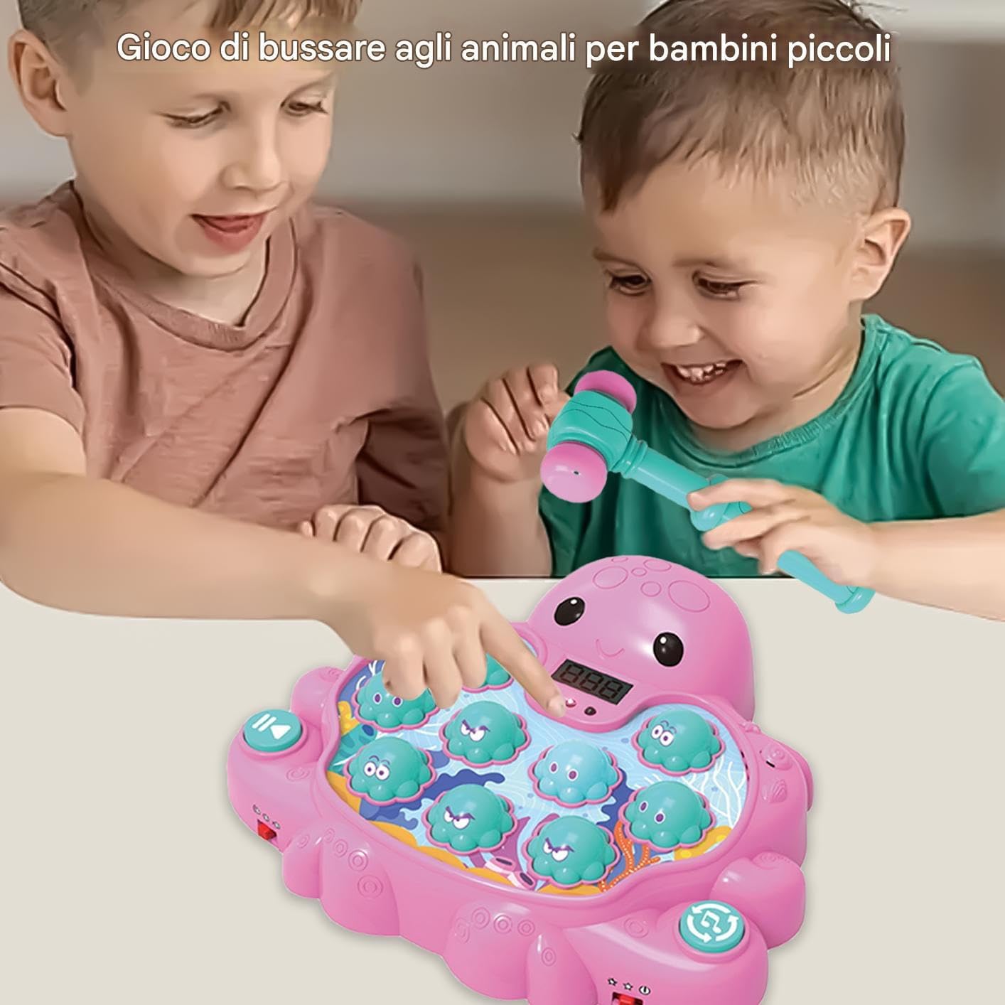 a Punteggio: Modalità innovativa basata sui punti stimola una competizione leale e sviluppa perseveranza tra diversi livelli di abilità, garantendo intrattenimento prolungato Attività Educativa Coinvolgente: Migliora la coordinazione occhio-mano con luci intermittenti e suoni interattivi, combinando divertimento e sviluppo delle abilità motorie in modo stimolante Divertimento in Due: Goditi il gioco talpa progettato per due giocatori, migliora il genitore-figlio con un gioco interattivo che coinvolge tutte le età creando momenti gioiosi condivisi Materiali Resistenti: Design con superfici lisce e materiali durevoli assicura sicurezza, resiste a cadute e usura anche dopo utilizzo prolungato, per apprendimento divertente Pratico e Compatto: Progetto monopezzo pieghevole assicura portabilità senza sforzo e conservazione ridotta, ottimale per viaggi o uso domestico in qualsiasi momento