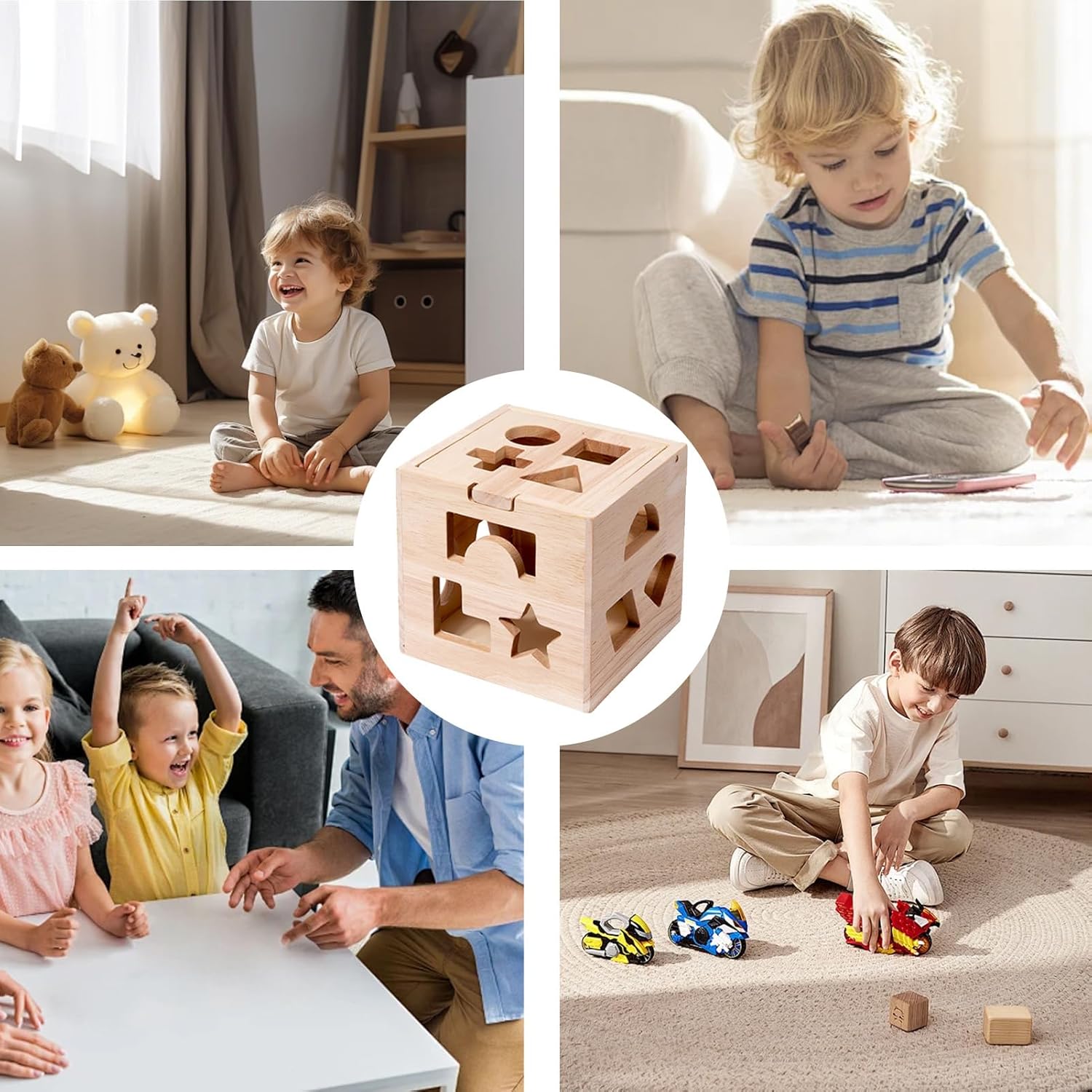 Costruito per Durare: Costruito con legno massello resistente e finito con bordi lisci e vernice sicura, questo giocattolo per l'ordinamento delle forme garantisce un ambiente di gioco sicuro per i bambini, aiutandoli ad affinare la coordinazione occhio-mano attraverso un gioco divertente di abbinamento delle forme sia in interni che in esterni, con una struttura che resiste all'usura quotidiana. Allenamento Versatile a Casa: I giocattoli di forme includono pezzi impilabili e multifunzionali che ispirano l'esplorazione creativa mentre migliorano la coordinazione motoria fine, rendendoli ideali per allenamenti di gioco versatili a casa o durante attività educative. Promuovono lo sviluppo delle capacità manuali e cognitive in un contesto divertente, adatto sia per l'apprendimento strutturato che per il gioco libero, offrendo opportunità di crescita attraverso l'assemblaggio e la manipolazi Cubo per Sviluppare Abilità: Progettato per unire educazione e divertimento, il cubo per ordinare le forme include tredici forme con fori di corrispondenza precisi, incoraggiando l'apprendimento pratico mentre stimola il pensiero critico durante sessioni di gioco creativo per giovani apprendisti, favorando lo sviluppo di competenze essenziali in un contesto giocoso e coinvolgente per l'età prescolare. Giocattolo Apprendimento Precoce: Il giocattolo di ordinamento delle forme per bambini supporta le tappe dello sviluppo introducendo colori, forme e consapevolezza spaziale attraverso il gioco esplorativo. Favorisce le competenze cognitive essenziali per preparare il bambino al successo accademico futuro, promuovendo l'apprendimento precoce in modo divertente e educativo. Questo giocattolo aiuta a sviluppare abilità fondamentali come il riconoscimento di colori e forme, migliorando la consapevol Potenziamento Pensiero Logico: Questi giocattoli guidano i bambini ad allineare le forme con gli slot appropriati, rafforzando le capacità di problem-solving e affinando le abilità di logica e ragionamento. Ispirano il pensiero critico durante sessioni di gioco immaginativo a casa o in contesti educativi, promuovendo sviluppo mentale attraverso un'esperienza pratica e coinvolgente.