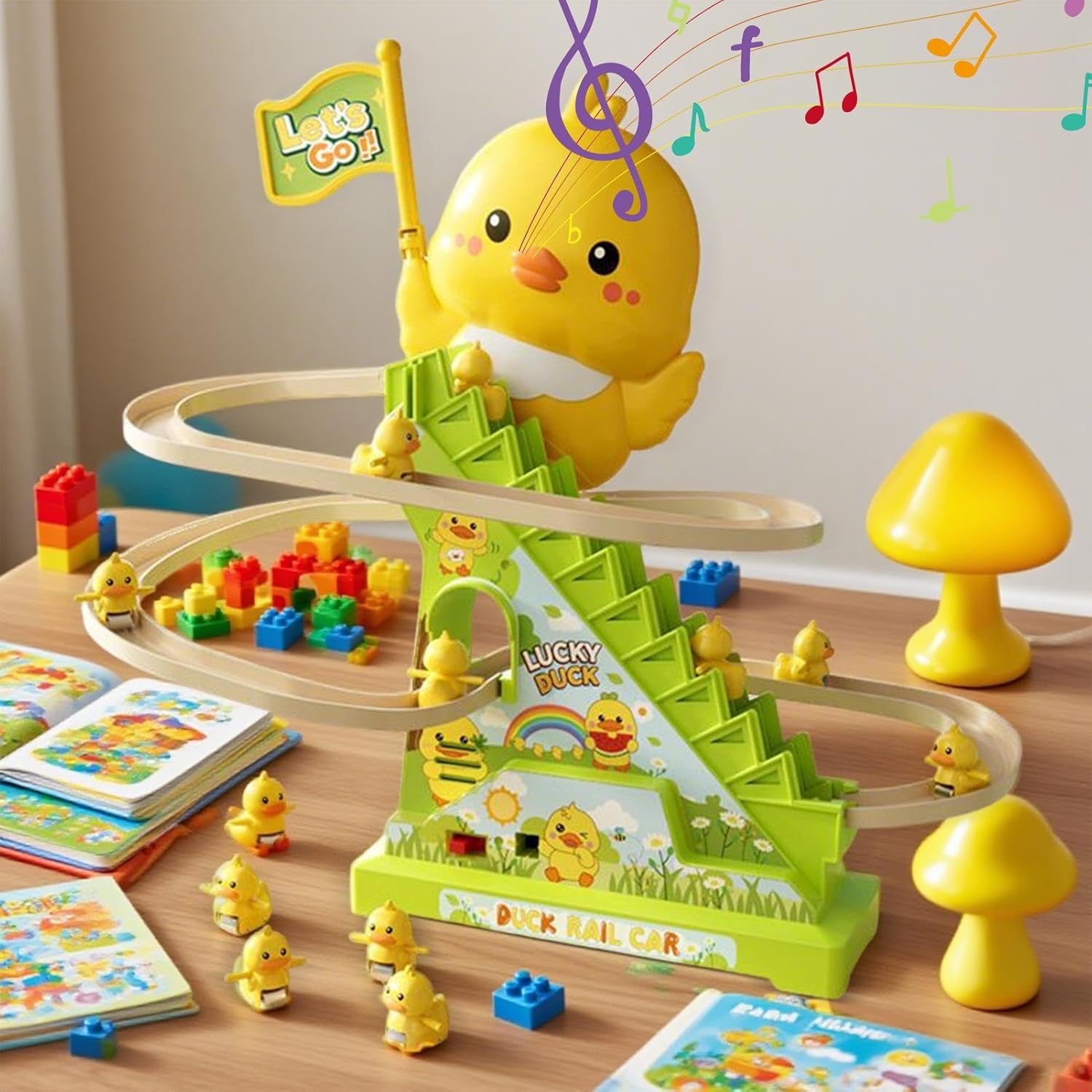 Play di apprendimento precoce: progettato per i bambini in età prescolare, questo giocattolo per scale per arrampicarsi incoraggia incoraggia lo sviluppo cognitivo coordinazione per gli occhi e le capacità motorie fornendo al contempo un gioco coinvolgente e interattivo che stimola la curiosità e la risoluzione dei problemi Electric 12 Duck Activity: dodici anatre che si muovono lungo la diapositiva con movimento automatico che danno ai bambini un'esperienza visiva e interattiva, sostenendo l'osservazione e l'apprendimento di causa ed effetto Luci lampeggianti a LED e musica: dotato di luci colorate e suoni giocosi questo giocattolo cattura l'attenzione dei bambini rendendo l'apprendimento divertente e divertente, migliorando lo sviluppo sensoriale attraverso la stimolazione uditiva e visiva Set di montagne russe di diapositive: include scivolo da 10,47 pollici e le scale di arrampicata che promuovono il gioco interattivo e aiutano i bambini a praticare le capacità di tempistica e coordinamento durante il movimento continuo delle anatre in tutto il set Game educativo per bambini: adatto per le aule domestiche o i centri di asilo Questo giocattolo combina l'intrattenimento con l'apprendimento che fornisce un'esperienza pratica divertente che supporta gli obiettivi educativi in età prescolare e le pietre miliari dello sviluppo