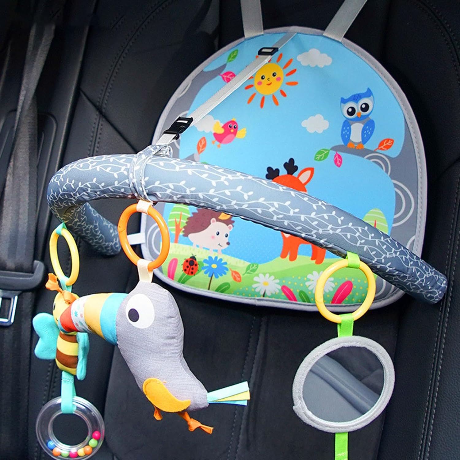 Interessante: il giocattolo per sedili per auto per bambini è progettato con pannelli artistici a doppia faccia, colorato per catturare l'attenzione del bambino e fornire una ricca interattività e ore di divertimento dell'apprendimento. Sviluppo sensoriale: questo giocattolo per sedili per auto per bambini con scatola di musica per uccelli, specchio con teether e altri pendenti, promuove lo sviluppo sensoriale del bambino, le capacità motorie e la coordinazione per gli occhi per la mano. Facile da installare: il giocattolo per auto per bambini è fissato saldamente sotto il poggiatesta dell'auto da due Clamp/Holder di plastica. L'angolo di lunghezza e inclinazione può essere regolato per impedire al ciondolo di scuotere e colpire il bambino. Tessuto morbido: il giocattolo per auto posteriori è realizzato in tessuto colorato, morbido e adatto alla pelle, non c'è bisogno di preoccuparsi di ferirli. Baby Shower, Christmas e Baby Birthday. Per i viaggi in auto: il giocattolo di Activity Arch di neonati è appositamente progettato per i viaggi in auto, offrendo una varietà di attività divertenti e musica delicata per fornire un in macchina divertente e calmante sia per i bambini che per i genitori.