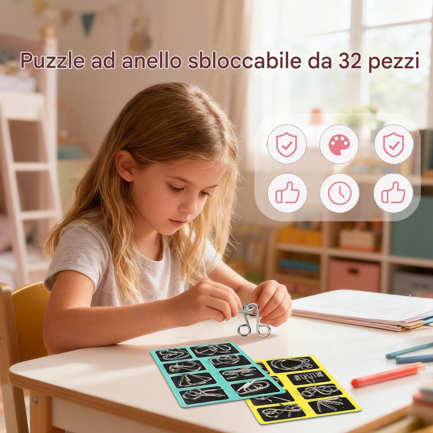 Divertente rompicapo: stimola la tua mente con questi puzzle metallici complicati ma divertenti progettati per testare la logica, la concentrazione e la pazienza per tutte le età. Costruzione in metallo resistente: realizzata in acciaio inossidabile di alta qualità che resiste alla flessione e alla ruggine, garantendo un uso duraturo e un gioco ripetuto. Educazione e sviluppo di competenze: migliora la risoluzione dei problemi, la coordinazione occhio-mano e il pensiero critico, per aule, case e attività di gruppo. Compatto e adatto ai viaggi: leggero e facile da trasportare; goditi gli allenamenti mentali durante i viaggi, le vacanze o gli incontri informali. Regalo per tutte le occasioni: ottimo per Natale, compleanni, Halloween, e serate di giochi in famiglia, ideale per bambini, adolescenti e adulti.
