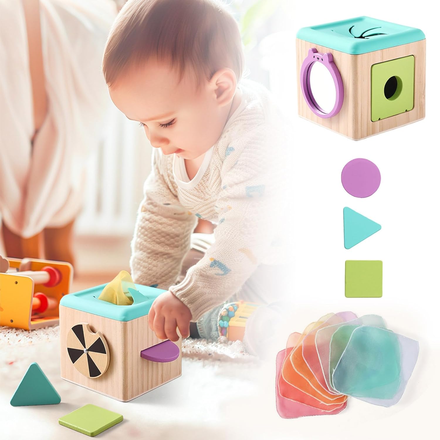 I genitori possono incoraggiare la scoperta dell'indipendenza durante il gioco sul pavimento, intrattenendo l'organizzazione con il suo vano portaoggetti Shape Block integrato Dotata di un pannello accattivante e molteplici giocattoli sensoriali rimovibili, la scatola di attività quadrata coinvolge il bambino con l'esplorazione delle texture e la stimolazione visiva Utilizzando legno delicato con bordi arrotondati, questa scatola di attività multifunzionale di sicurezza per i bambini incoraggia le capacità di risoluzione dei problemi attraverso sfide di abbinamento di modelli Ideale per bambini curiosi da 1 a 3 anni, questo giocattolo educativo per la selezione di forme supporta l'apprendimento precoce Nelle stanze dei giochi domestiche o nelle aule prescolari Questa scatola in legno combina l'ordinamento delle forme e il colore riconoscimento per aumentare lo sviluppo cognitivo e le capacità motorie attraverso il gioco interattivo