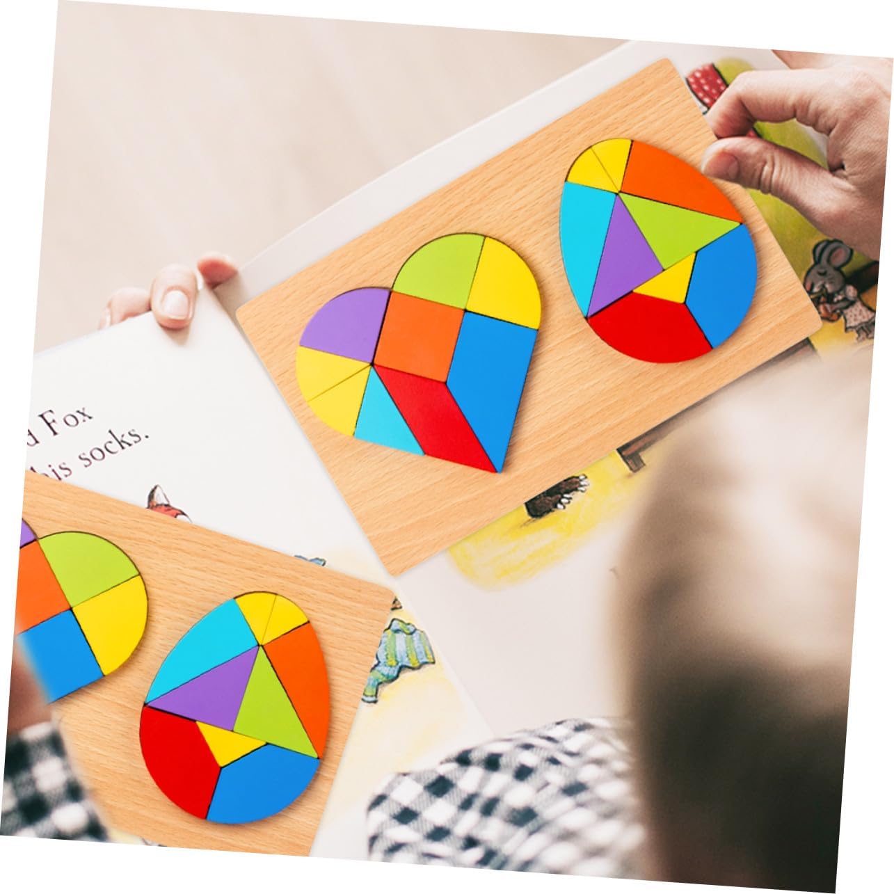 Puzzle Tangram: questo è un giocattolo perfetto per bambini, che può essere utilizzato per imparare la forma e il colore degli oggetti in modo divertente e creativo. Puzzle educativo: la trama piacevole è adatta alle piccole mani del bambino, puzzle educativo colorato: può essere usato come elegante pezzo decorativo per decorare le case dei giocattoli dei bambini. Puzzle di forme Puzzle in legno: questo è un giocattolo educativo multifunzionale per rendere più divertente il tuo puzzle tangram. Giocattolo puzzle in legno: con questo interessante giocattolo educativo puoi migliorare le tue capacità cognitive e creatività. tangram fai da te