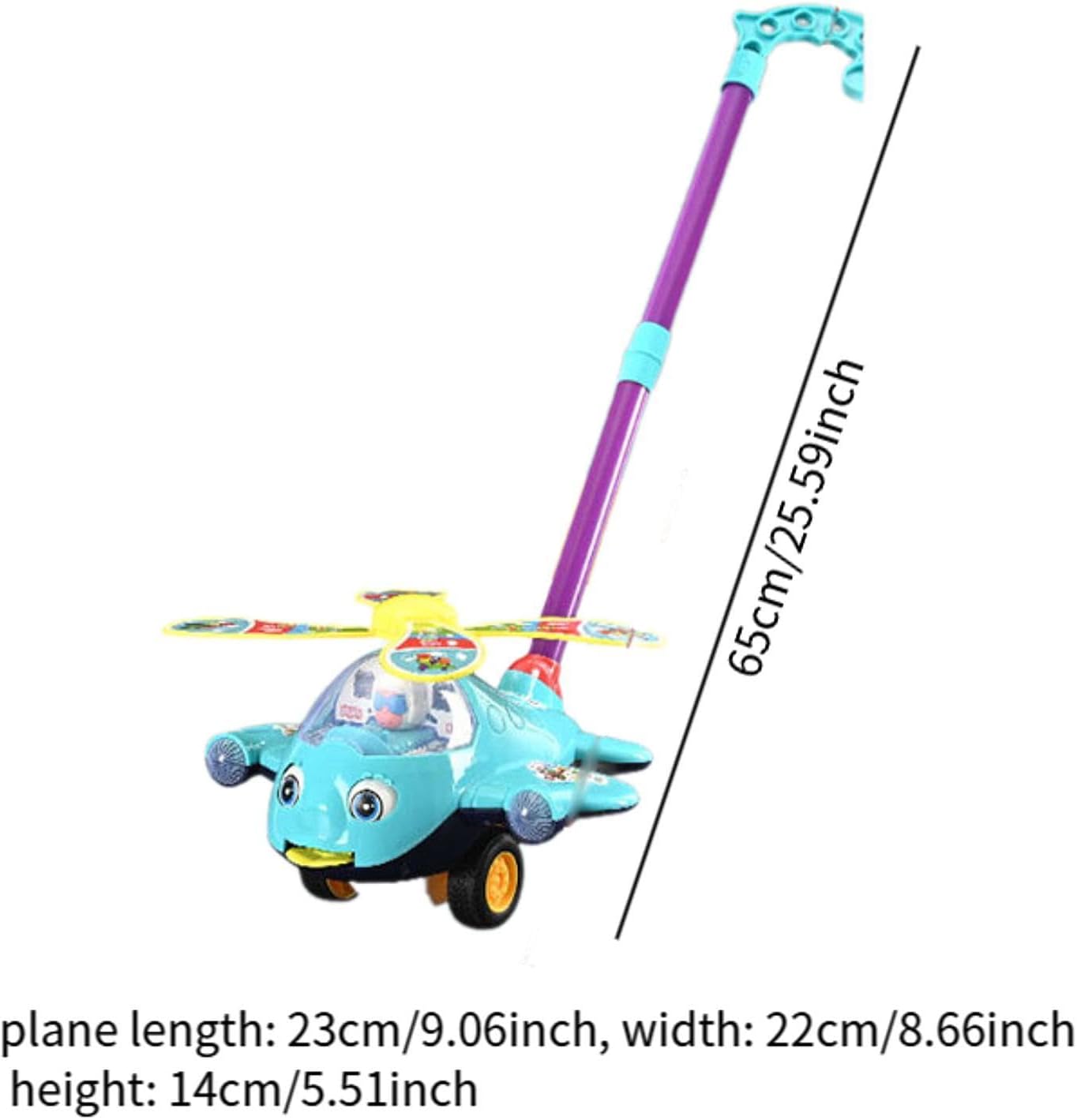 【Giocattoli per lo sviluppo del bambino】: il giocattolo da passeggio push-pull è un giocattolo per lo sviluppo precoce che promuove l'apprendimento e le capacità di deambulazione dei bambini ed è adatto ai bambini che imparano a gattonare. 【Design adattato】 La maniglia del carrello giocattolo dell'aereo dei cartoni animati a spinta può essere ruotata e regolata in base alle esigenze del bambino. Puoi regolare facilmente l'altezza della maniglia in base alle esigenze del tuo bambino.,Campanello incorporato: i giocattoli per la prima educazione hanno un campanello incorporato. Quando viene premuta, la campana all'interno del piccolo aereo suona, emettendo un suono "ding-ding-ding". 【Giocattolo per l'educazione precoce】 Questo giocattolo a spinta è progettato per promuovere l'immaginazione e la creatività dei bambini, migliorando al contempo la coordinazione e le abilità occhio-mano. 【Regalo di creatività】: giocattolo con rotella realizzato in materiale PP e regalo durevole e perfetto per il compleanno, le vacanze o qualsiasi occasione speciale di tuo figlio