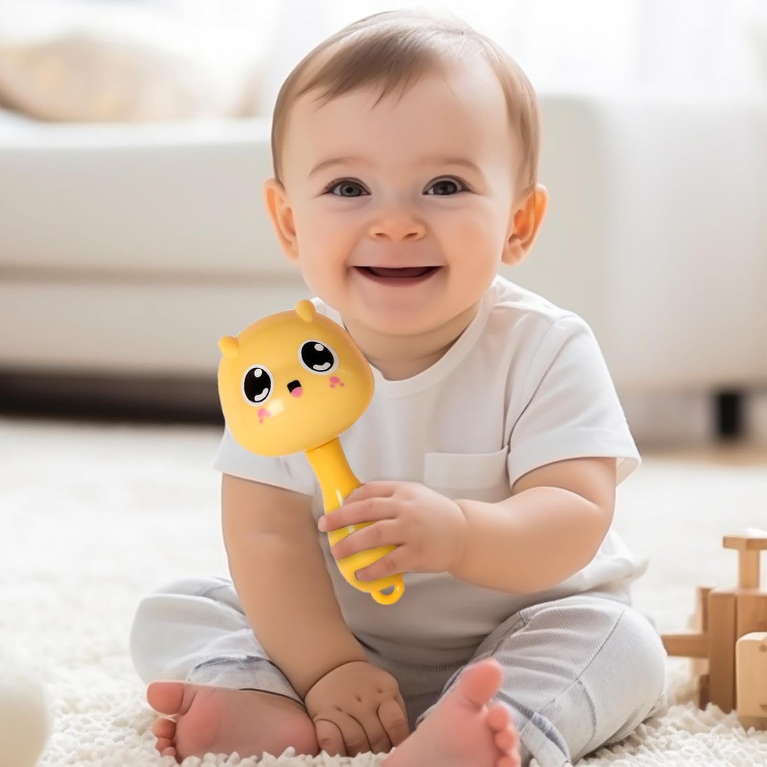 Sonaglio dei cartoni animati: il design del dinosauro del pane dei cartoni animati di Infant Rattle attirerà e catturerà sicuramente l'attenzione di tuo figlio. Con i suoi stimolanti colori vivaci e le forme , questo sonaglio migliora la percezione visiva e stimola la curiosità, accendendo i sensi Sviluppa abilità motorie: il sonaglio per bambini è realizzato per promuovere la flessibilità delle dita e la capacità di presa degli esercizi, aiutando lo sviluppo delle abilità a tutto tondo del tuo bambino. Le sue dimensioni compatte sono perfette per le mani dei più piccoli e lo rendono comodo da tenere in mano e da giocare, migliorando la coordinazione occhio-mano Sicurezza dei bambini: i suoni rilassanti del sonaglino del giocattolo miglioreranno lo sviluppo sensoriale del tuo bambino oltre a fornire intrattenimento. È realizzato per creare rumori morbidi e chiari che non danneggiano l'udito, garantendo un'esperienza di gioco piacevole e sicura Creatività migliorata: coinvolgi i sensi del tuo bambino poiché i suoni rilassanti del tremore della mano possono esercitare la percezione uditiva, favorendo passi di sviluppo indispensabili e supportando la sua crescita cognitiva e sensoriale Stabilisci una relazione migliore: migliora le capacità cognitive del tuo bambino con questo sonaglio per bambini. Perfetto per far giocare insieme genitori e bambini, è un modo divertente per stimolare la mente del tuo bambino e aiutarlo nello sviluppo intellettuale e nella formazione iniziale