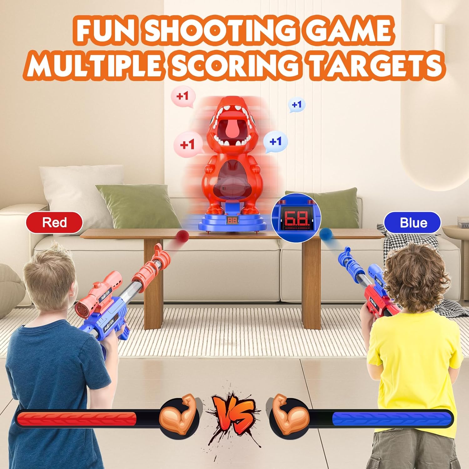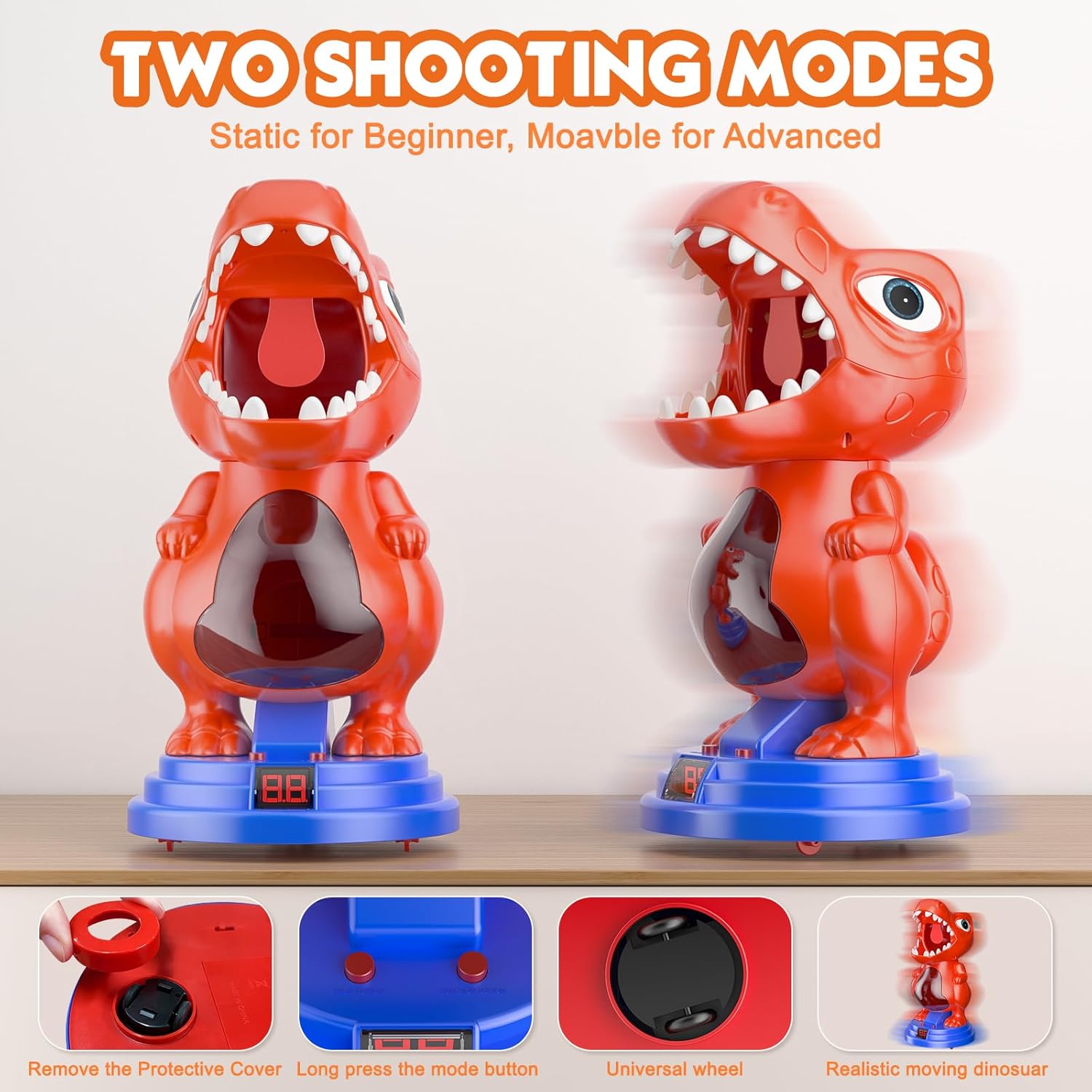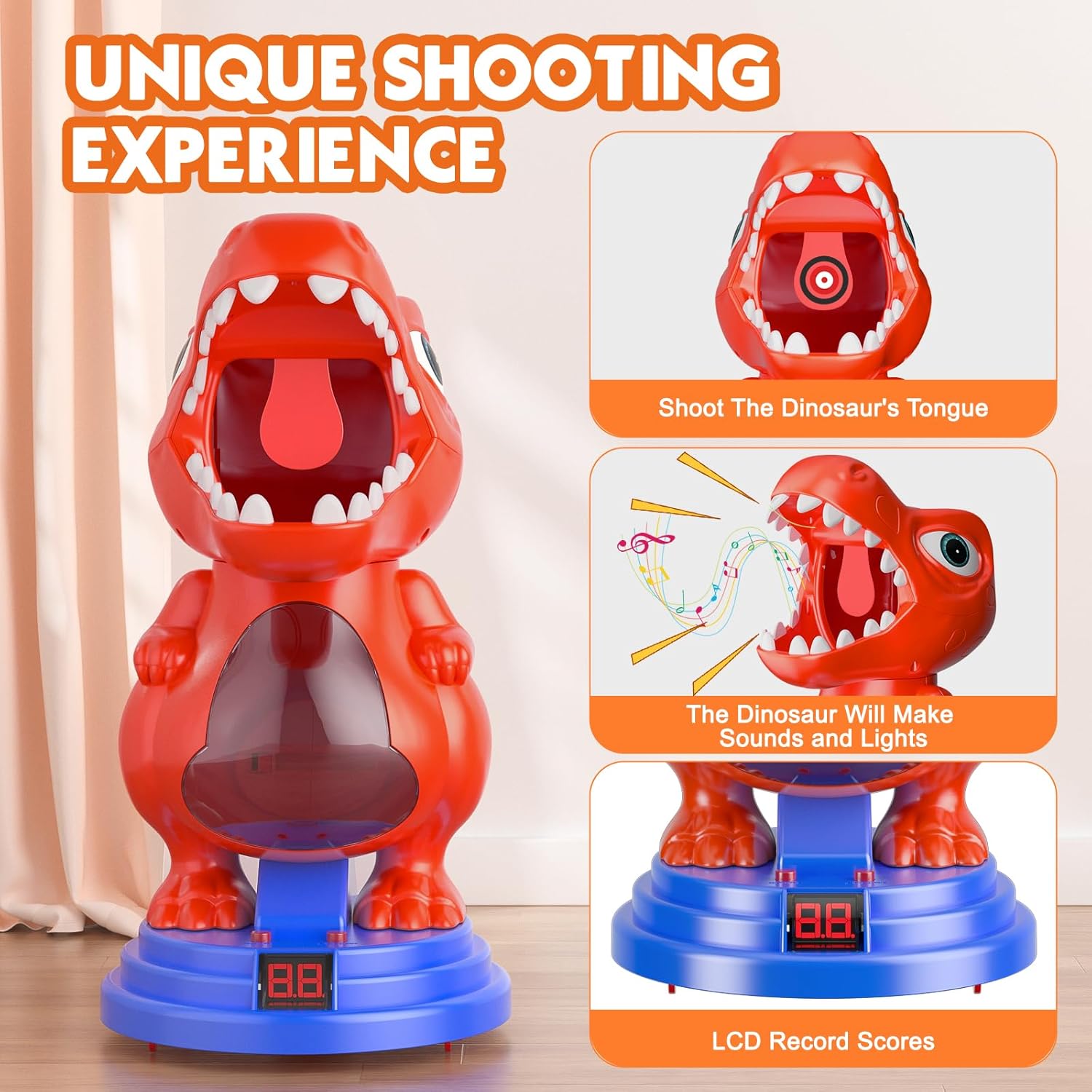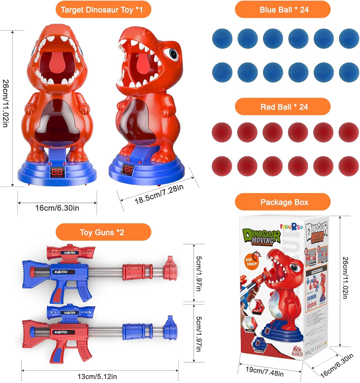 2 modalità di gioco di tiro: il nostro bersaglio dinosauro è dotato di 2 modalità: statico (adatto ai principianti) e in movimento (sfida avanzata con evitamento automatico degli ostacoli). Adatto a bambini di diverse età per giocare a giochi competitivi, un regalo ideale per ragazzi di età compresa tra 6 e 12 anni. Colpire la lingua del dinosauro bersaglio ha luci lampeggianti e suoni realistici di dinosauro. Ti offre un'esperienza di tiro molto realistica Nuovo di zecca gioco di tiro a segno di dinosauri: dotato di 1 bersaglio di tiro di dinosauri, 24 palline di schiuma, 2 pistole a pompa d'aria con mirini, adatto per uso interno/esterno, ottimo per riunioni di famiglia o giochi per giocatore singolo Competizione multigiocatore: il display LCD registra in modo chiaro e preciso il punteggio di ogni tiratore, quando la palla di schiuma entra nella lingua del dinosauro affamato, emetterà un suono e conterà 1 punto nel display del punteggio, i bambini piccoli possono competere tra loro per divertimento, vince chi ha il punteggio più alto, i bambini possono ottenere felicità e amicizia nel gioco Gli amanti dei dinosauri devono avere: il gioco di immagini di dinosauri dei cartoni animati può attirare di più l'attenzione dei bambini. Le parti sono realizzate in materiale ABS, sicuro e innocuo, senza sbavature. La morbida palla in schiuma EVA è molto leggera e delicata quando colpisce e non causerà danni a nessuno o a qualsiasi altra cosa che spara. I bambini possono divertirsi con i giochi di tiro in sicurezza Ottima scelta regalo: questo set di giochi di tiro è un gioco attraente per interni ed esterni per ragazzi e ragazze, può esercitare la coordinazione occhio-mano del tuo bambino e il suo senso di competizione. Può anche liberare dallo stress adolescenti e adulti! È un fantastico regalo di Natale, festa, compleanno per bambini, amici, famiglia