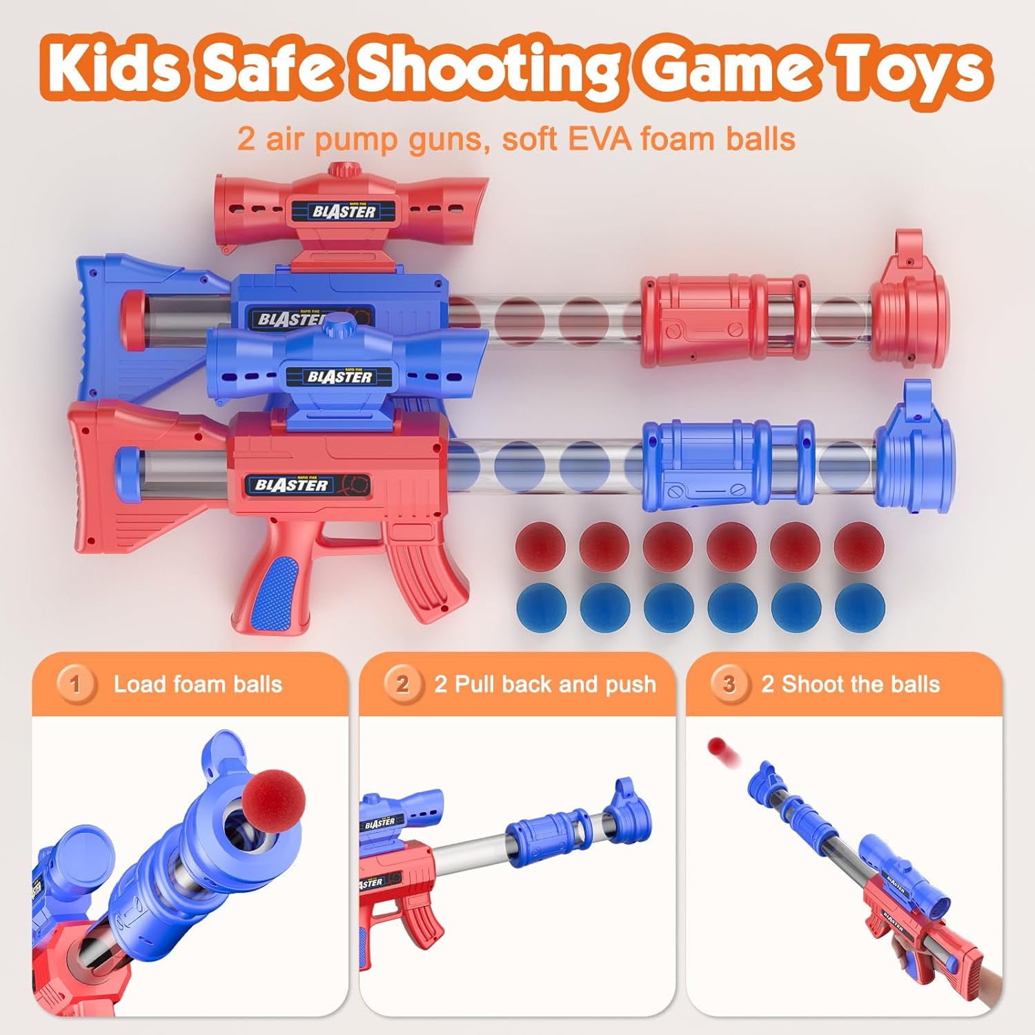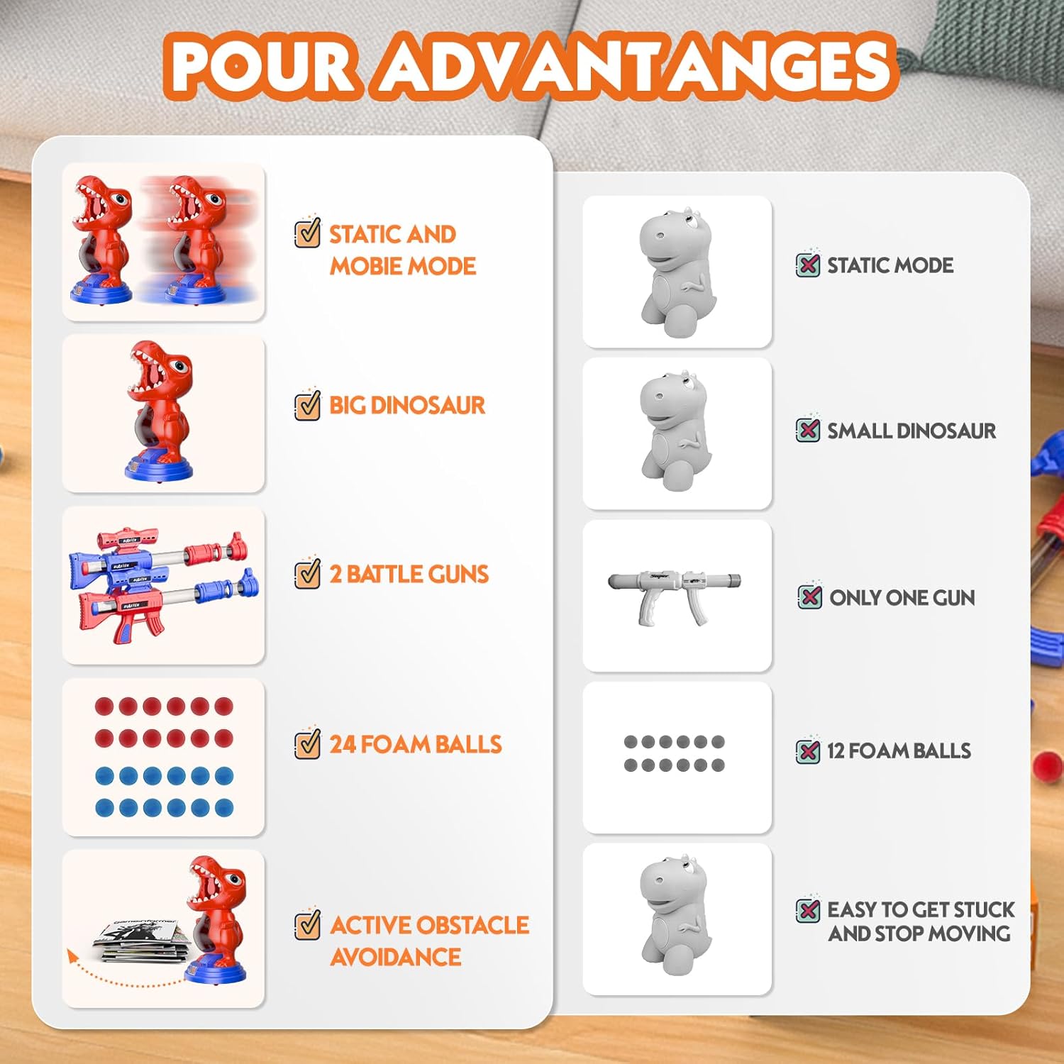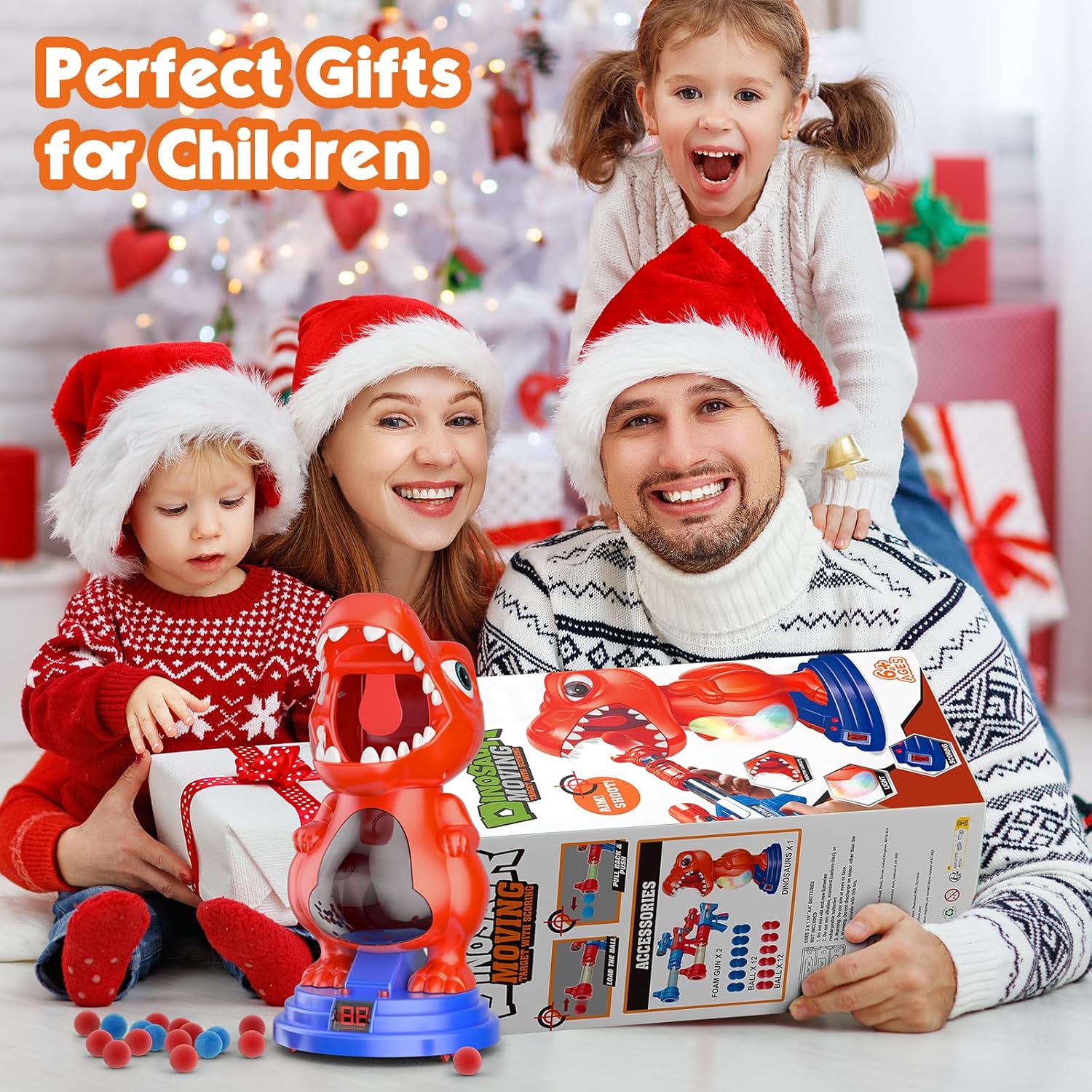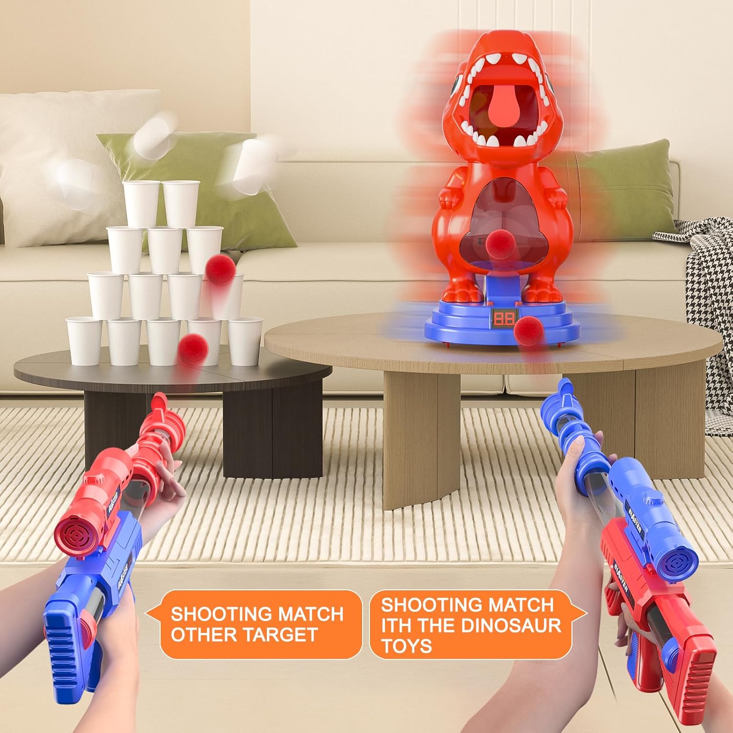 2 modalità di gioco di tiro: il nostro bersaglio dinosauro è dotato di 2 modalità: statico (adatto ai principianti) e in movimento (sfida avanzata con evitamento automatico degli ostacoli). Adatto a bambini di diverse età per giocare a giochi competitivi, un regalo ideale per ragazzi di età compresa tra 6 e 12 anni. Colpire la lingua del dinosauro bersaglio ha luci lampeggianti e suoni realistici di dinosauro. Ti offre un'esperienza di tiro molto realistica Nuovo di zecca gioco di tiro a segno di dinosauri: dotato di 1 bersaglio di tiro di dinosauri, 24 palline di schiuma, 2 pistole a pompa d'aria con mirini, adatto per uso interno/esterno, ottimo per riunioni di famiglia o giochi per giocatore singolo Competizione multigiocatore: il display LCD registra in modo chiaro e preciso il punteggio di ogni tiratore, quando la palla di schiuma entra nella lingua del dinosauro affamato, emetterà un suono e conterà 1 punto nel display del punteggio, i bambini piccoli possono competere tra loro per divertimento, vince chi ha il punteggio più alto, i bambini possono ottenere felicità e amicizia nel gioco Gli amanti dei dinosauri devono avere: il gioco di immagini di dinosauri dei cartoni animati può attirare di più l'attenzione dei bambini. Le parti sono realizzate in materiale ABS, sicuro e innocuo, senza sbavature. La morbida palla in schiuma EVA è molto leggera e delicata quando colpisce e non causerà danni a nessuno o a qualsiasi altra cosa che spara. I bambini possono divertirsi con i giochi di tiro in sicurezza Ottima scelta regalo: questo set di giochi di tiro è un gioco attraente per interni ed esterni per ragazzi e ragazze, può esercitare la coordinazione occhio-mano del tuo bambino e il suo senso di competizione. Può anche liberare dallo stress adolescenti e adulti! È un fantastico regalo di Natale, festa, compleanno per bambini, amici, famiglia