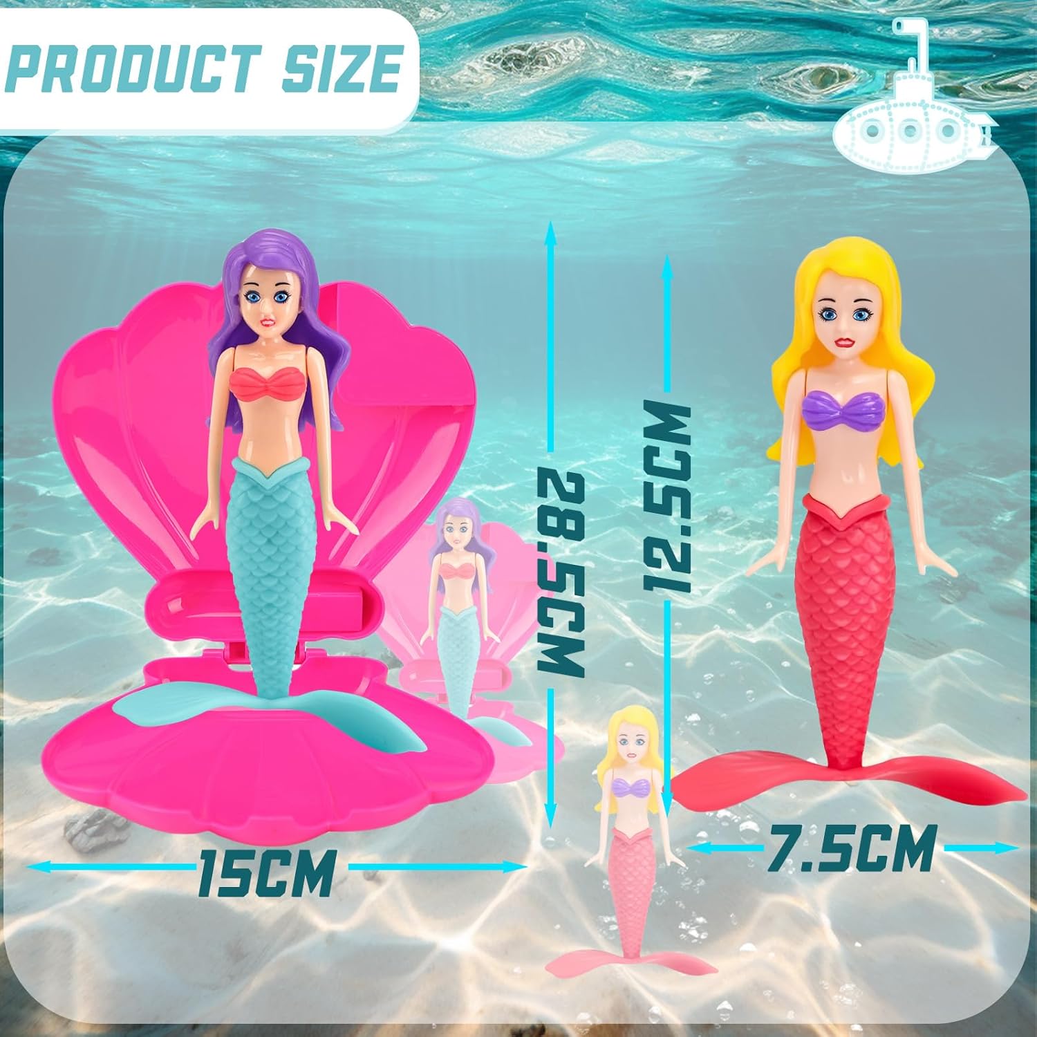 Giocattoli da nuoto di sirena: i nostri giocattoli da nuoto di sirena sono realizzati in plastica di qualità, con una superficie liscia, senza componenti taglienti, sicurezza dei materiali, in grado di sopportare bene i giochi ruvi in piscina. Adatto per principianti e nuotatori avanzati. Dimensioni: Le nostre conchiglie di sirena sono disponibili in tre colori: rosso rosa, rosa trasparente scintillante e blu trasparente scintillante. Le dimensioni della cassa a chiusura sono di 15 cm x 10 cm. Ideale per piscine, spiagge e parchi acquatici; Questi giocattoli di sirena sono leggeri, facili da portare e ideali per le vacanze estive e le feste Come usare: il nostro piccolo casinò per giocattoli di piscina di sirena non richiede installazione, il gioco è semplice. Basta gettare la conchiglia contenente la sirena in acqua e affonderà automaticamente. L'acqua scorre lentamente nella conchiglia e, quando raggiunge il fondo del lago o della piscina, la conchiglia si apre e la sirena ruota e galleggia automaticamente fino a che non galleggia in superficie. Sarà una scena magica. Regali per bambini: questi accessori per la piscina, giocattoli all'aperto, giocattoli per il lago e giocattoli per la spiaggia sono super facili da portare, rendendo il grande regalo per la festa in piscina, questo giocattolo per la piscina è un regalo estivo per gli studenti di immersioni e tutti coloro che amano gli sport acquatici, sono perfetti per la festa a tema sirena. Giocattoli per immersioni in piscina: il nostro set di giocattoli per immersioni per sirene in piscina comprende 2 sirene + 1 conchiglia + 6 gemme per migliorare l'esperienza di nuoto del tuo bambino con questi set di giocattoli per sirene.