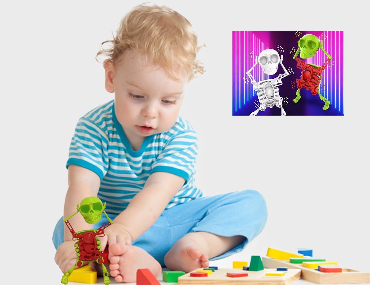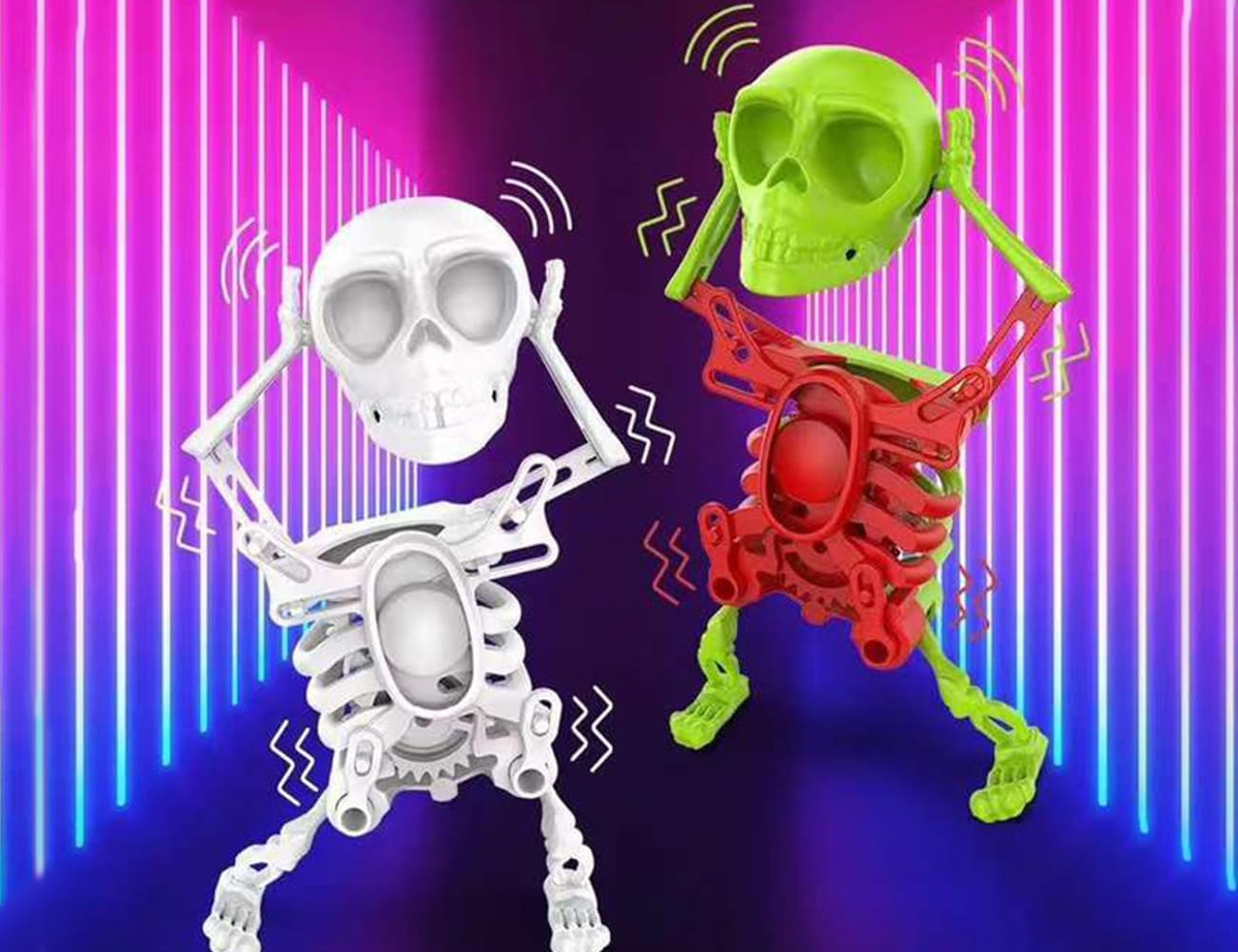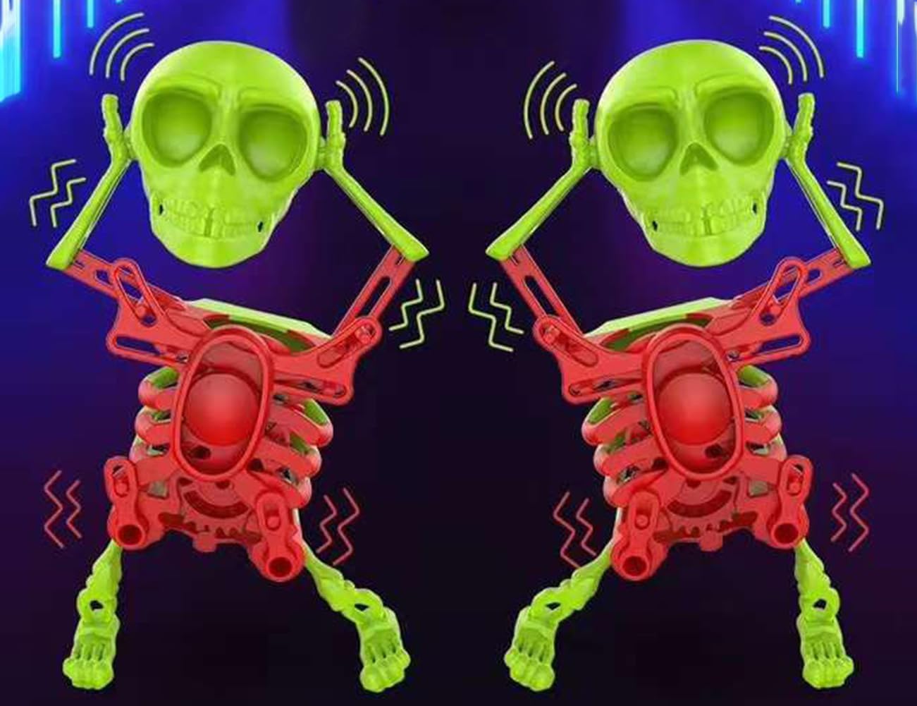 Quando studi, lavori sotto pressione; o incontri difficoltà, umore noioso; o aspetti, noia, guarda il giocattolo del teschio danzante che scuote la testa: può portarti divertimento, alleviare lo stress, liberare le emozioni, rilassarti, regolare il tuo stato, in modo da riempirti di energia. Per far ballare lo scheletro, basta ruotare in senso orario il meccanismo sul retro del giocattolo dello scheletro for azionare lo scheletro, dopodiché potrai apprezzare e divertirti con la danza sinuosa e divertente dello scheletro danzante. Questo colorato giocattolo a forma di scheletro umano può essere utilizzato come un originale ornamento decorativo, da posizionare in casa o in ufficio, for esprimere la propria personalità e il proprio gusto, ma anche for decorare lo spazio. Questo giocattolo rilassante a forma di scheletro danzante è adatto ad adolescenti e adulti. Puoi regalarlo ad amici e familiari. La sua fantastica forma a teschio non solo stupirà i tuoi amici, ma attirerà anche l'attenzione di tutti, facendoli sentire nuovi e strani, strappando loro un sorriso. Lo scheletro danzante è realizzato in plastica, resistente e non si rompe facilmente. È alto 17 cm.