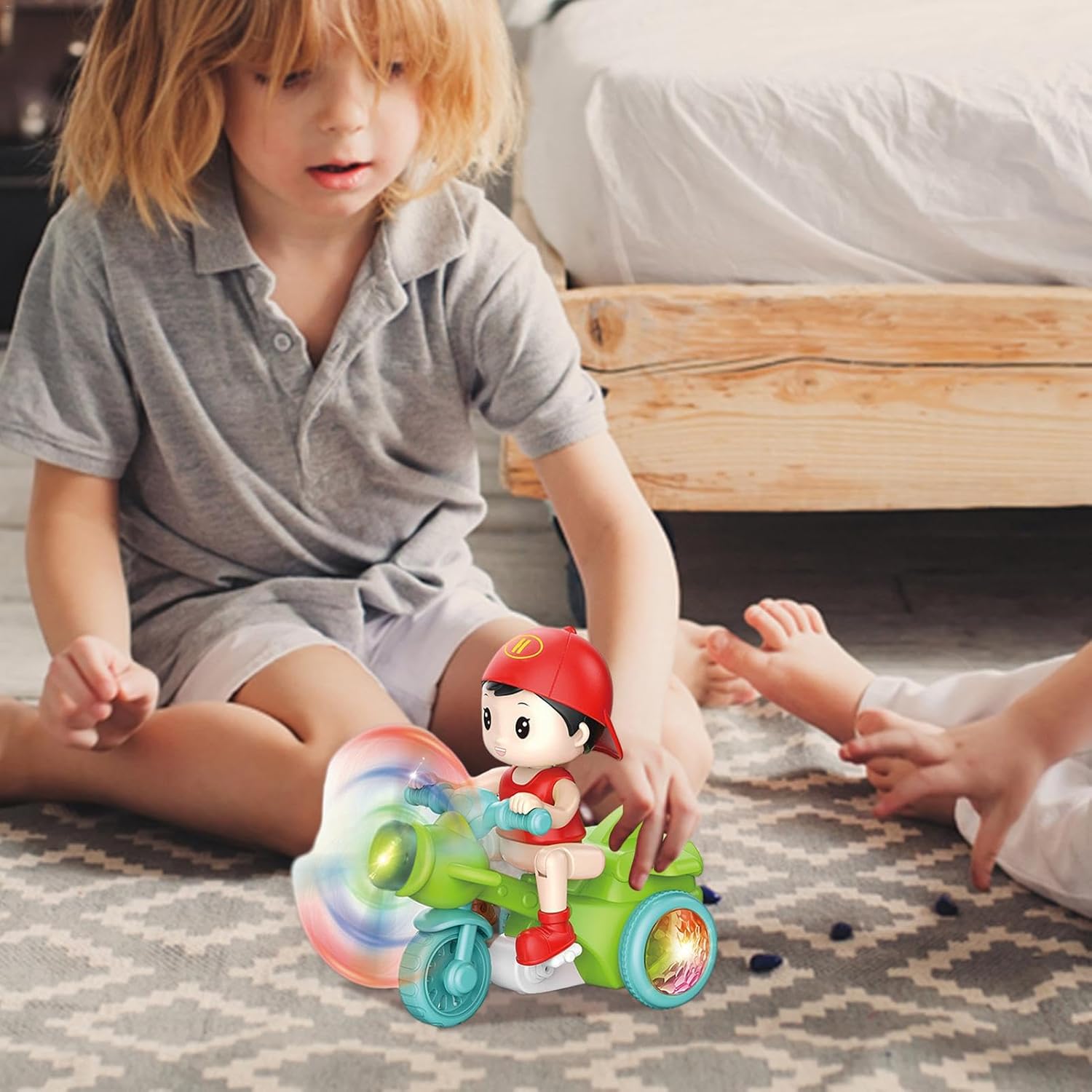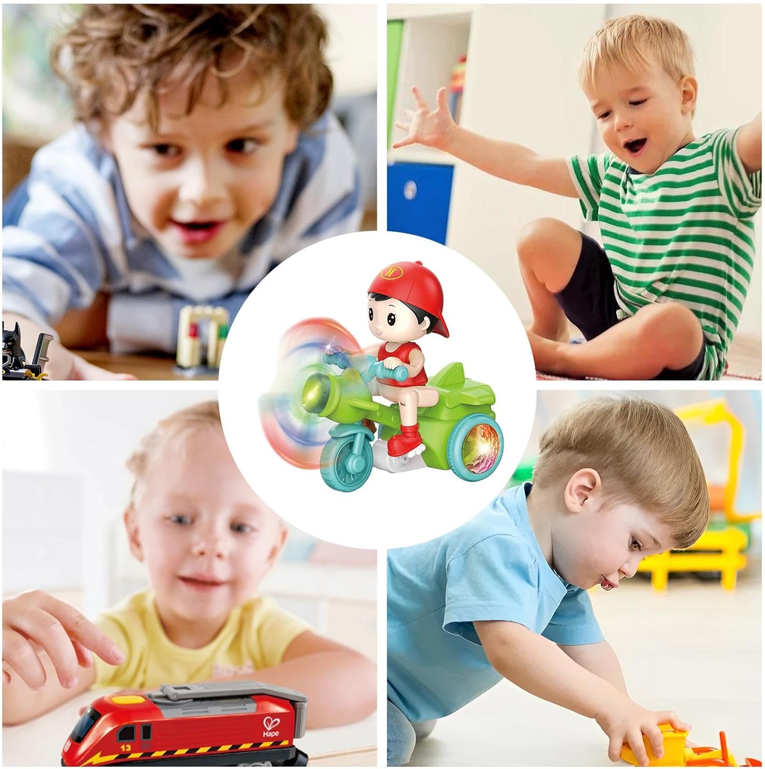 Sicuro e durevole: questo giocattolo per moto acrobatica è realizzato in ABS resistente al calore, agli urti e alle basse temperature, che ne garantisce prestazioni e sicurezza di lunga durata. Non ha spigoli o punte taglienti, consentendo ai giocatori di giocare in tutta tranquillità. Sviluppa l'immaginazione dei bambini: il nostro triciclo acrobatico li sfida a progettare e costruire il proprio percorso unico, migliorando le loro capacità di risoluzione dei problemi. Eseguendo acrobazie, sviluppano abilità pratiche e coordinazione fisica, rendendoli un ottimo strumento per l'educazione precoce e l'esercizio fisico. Effetti di luce affascinanti: questo giocattolo per moto acrobatica ha superfici lisce e fresche con un design raffinato. È dotato di luci ambientali ultra luminose che creano uno spettacolo abbagliante di colori e motivi. La verniciatura a spruzzo inodore ed ecologica rende questo giocattolo sicuro e durevole. Acrobazie incredibili: porta il tuo tempo di gioco al livello successivo con il nostro giocattolo in moto acrobatica. Incredibilmente divertente da guidare, esegue acrobazie incredibili come giri a 360 gradi, rendendolo l'aggiunta perfetta alla collezione di qualsiasi giocatore. Affronta diverse sfide di gioco con la sua capacità unica di muoverti avanti e indietro, a destra e a sinistra. Regalo straordinario: vivi momenti emozionanti con il nostro giocattolo per moto acrobatica. Ideale per ragazzi e ragazze avventurosi, questa bici elettrica è il regalo perfetto per compleanni, compleanni o Natale. Regala a tuo figlio un giocattolo che porterà sicuramente più eccitazione e divertimento.