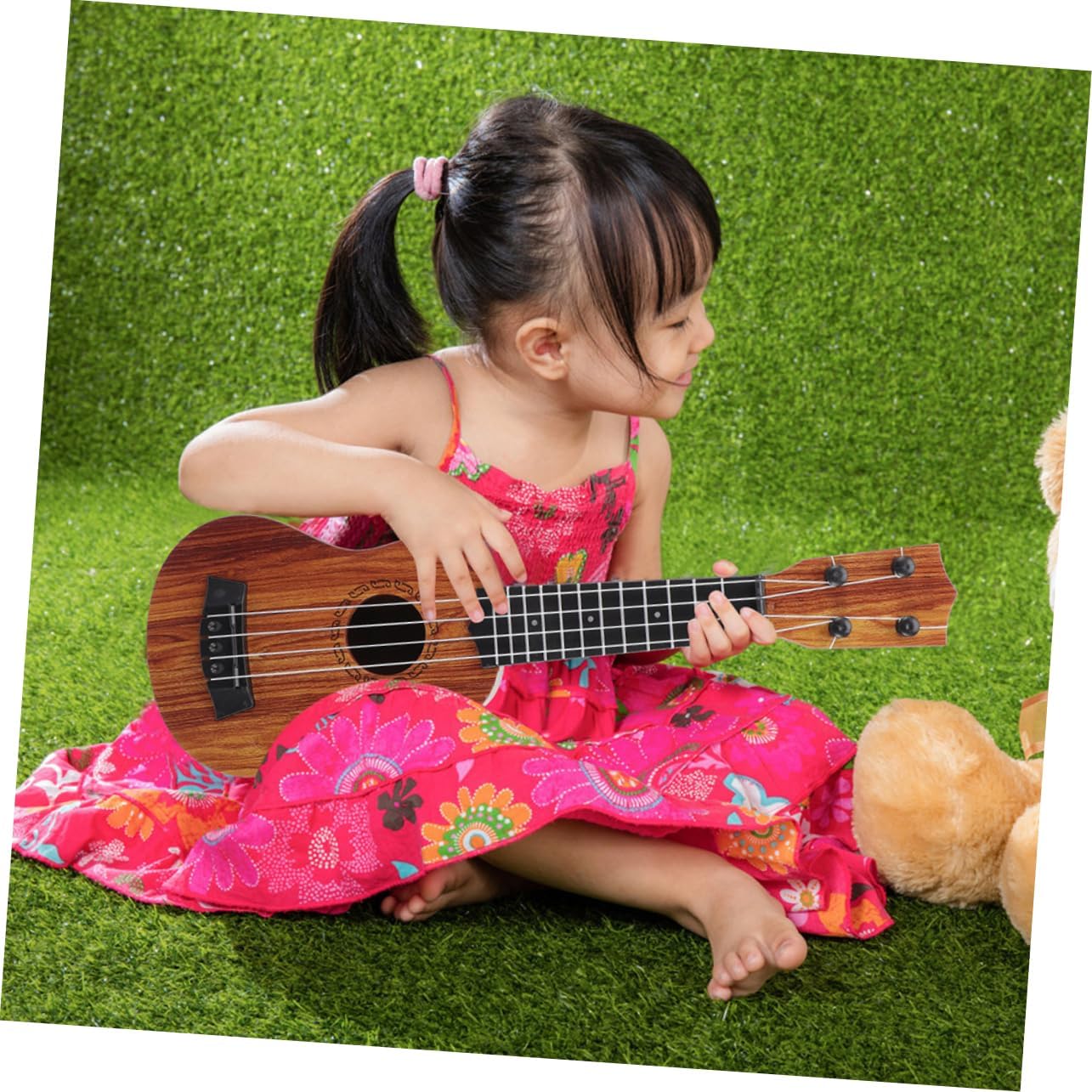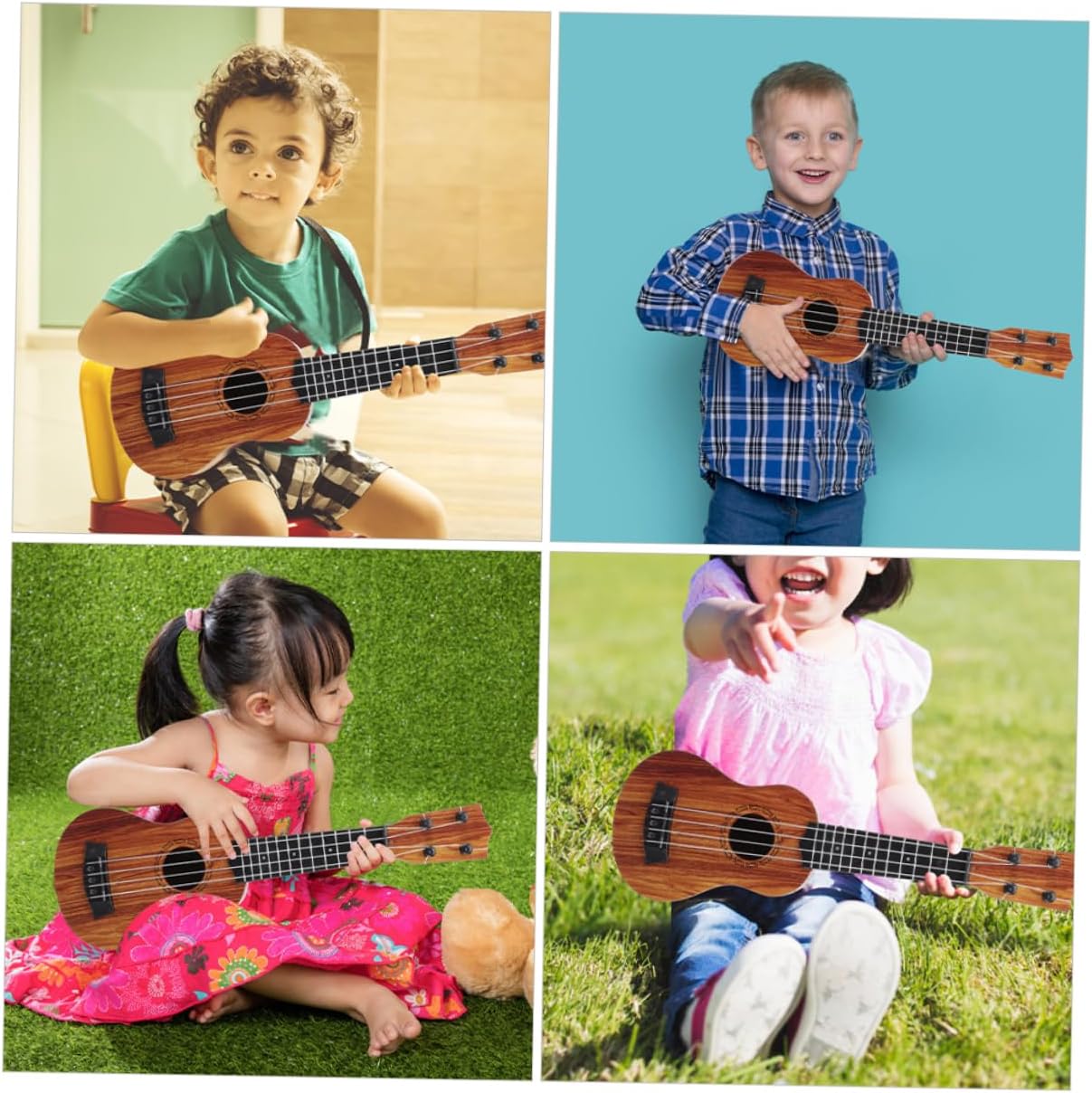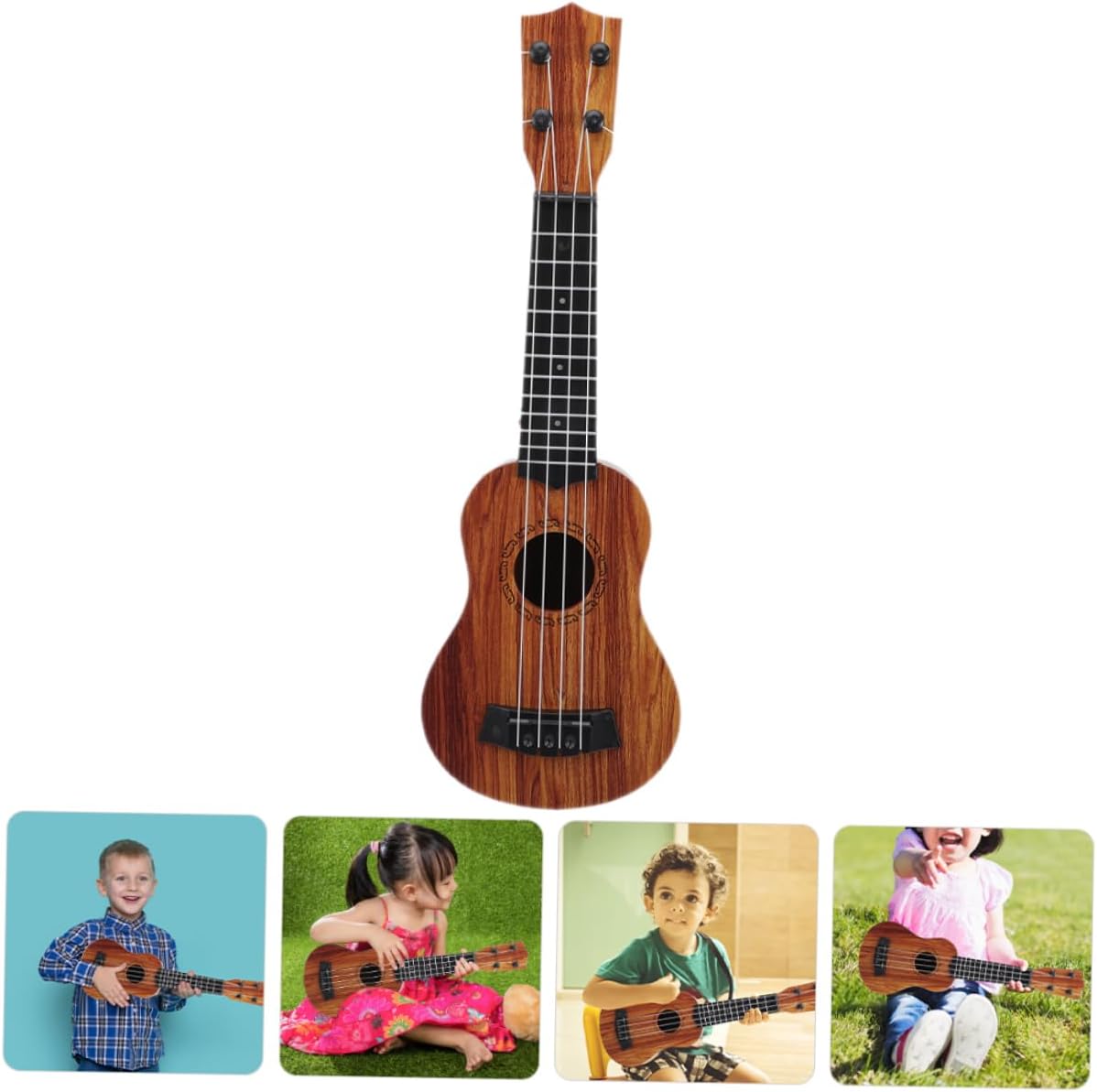 MULTIUSO: Con il suo aspetto, questo giocattolo per ukulele può essere utilizzato come decorazione per la casa, ornamento decorativo da collezione, ukulele in miniatura o strumento musicale per giocattoli per bambini - compatto e leggero, adatto per viaggi e attività all'aperto, per un maggiore comfort di trasporto, giocattolo per strumenti musicali Giocattolo educativo: questo è per l'asilo o l'educazione della prima infanzia, uno strumento giocattolo per o un giocattolo per chitarra per Mini giocattolo per chitarra - dimensioni mini, facile da trasportare e in qualsiasi momento e vai ovunque, design realistico, aspetto, alto grado di simulazione, ukulele per principianti Ukulele per bambini: questo ukulele simulato è realizzato in materiale di legno, può essere utilizzato a lungo, molto robusto, modello di chitarra per bambini