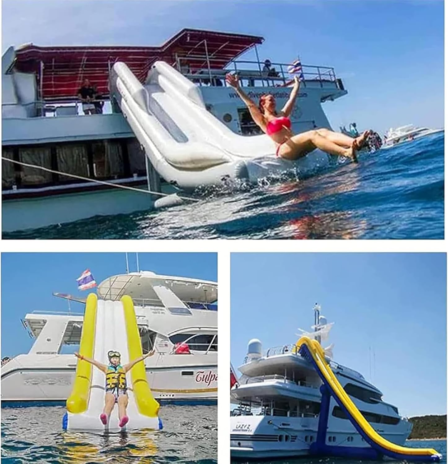 [Materiale di alta qualità] Il trampolino acquatico è realizzato in PVC composito resistente e tessuto elastico, con elevata resistenza alla trazione, buona resistenza alla pelatura, buona resistenza e durata. [Gonfiaggio rapido] Nel nostro pacchetto è presente un potente dispositivo di gonfiaggio elettrico, bastano solo 10 minuti per far esplodere il buttafuori. Il buttafuori gonfiabile è facile da trasportare quando è sgonfio. [Materiale]: questo scivolo gonfiabile è realizzato con un telone in PVC ecologico da 0,9 mm con superficie liscia e impermeabile e buone proprietà ignifughe, resistenti al freddo, al calore e anti-invecchiamento. Il tessuto da salto nero sulla parte superiore è realizzato in materiale PP, che ha un'eccellente capacità di rimbalzo [Diverse maniglie integrate] Questo scivolo gonfiabile ha diverse maniglie integrate per un facile spostamento e per aiutarti a mantenere un migliore equilibrio sull'acqua. Può essere posizionato su stagni, laghi, fiumi, piscine, pavimenti e palloni marini per giocare ed è adatto sia a bambini che ad adulti. [Happy Sports Gear] Lo scivolo gonfiabile è il prodotto perfetto per trasformare uno stagno o un lago in un'area per nuotare, perfetta per far rimbalzare i bambini e far uscire gli adulti.