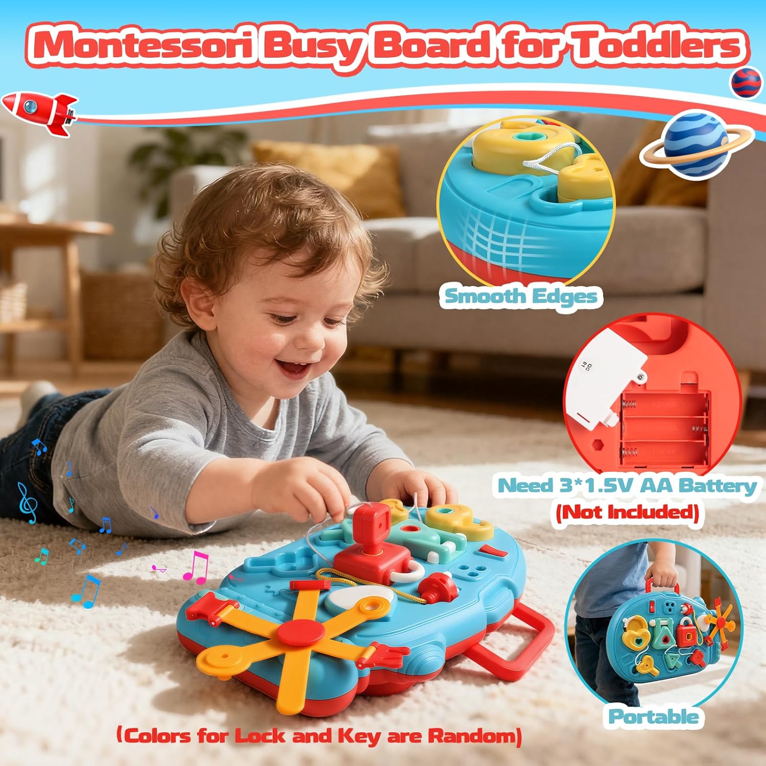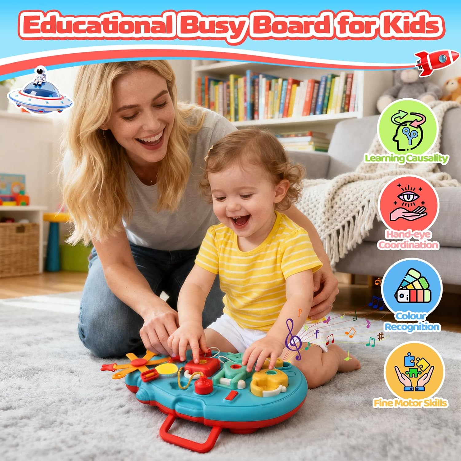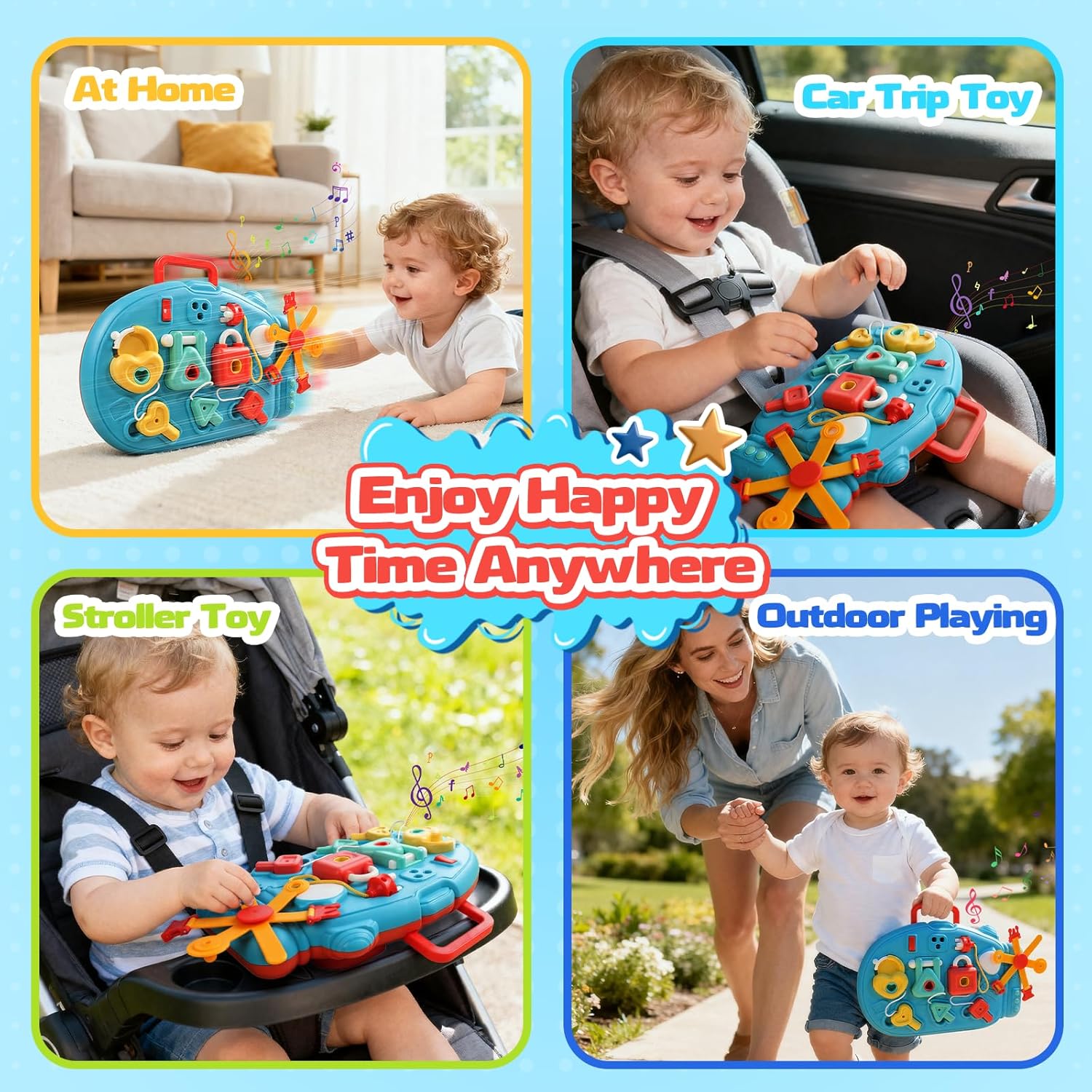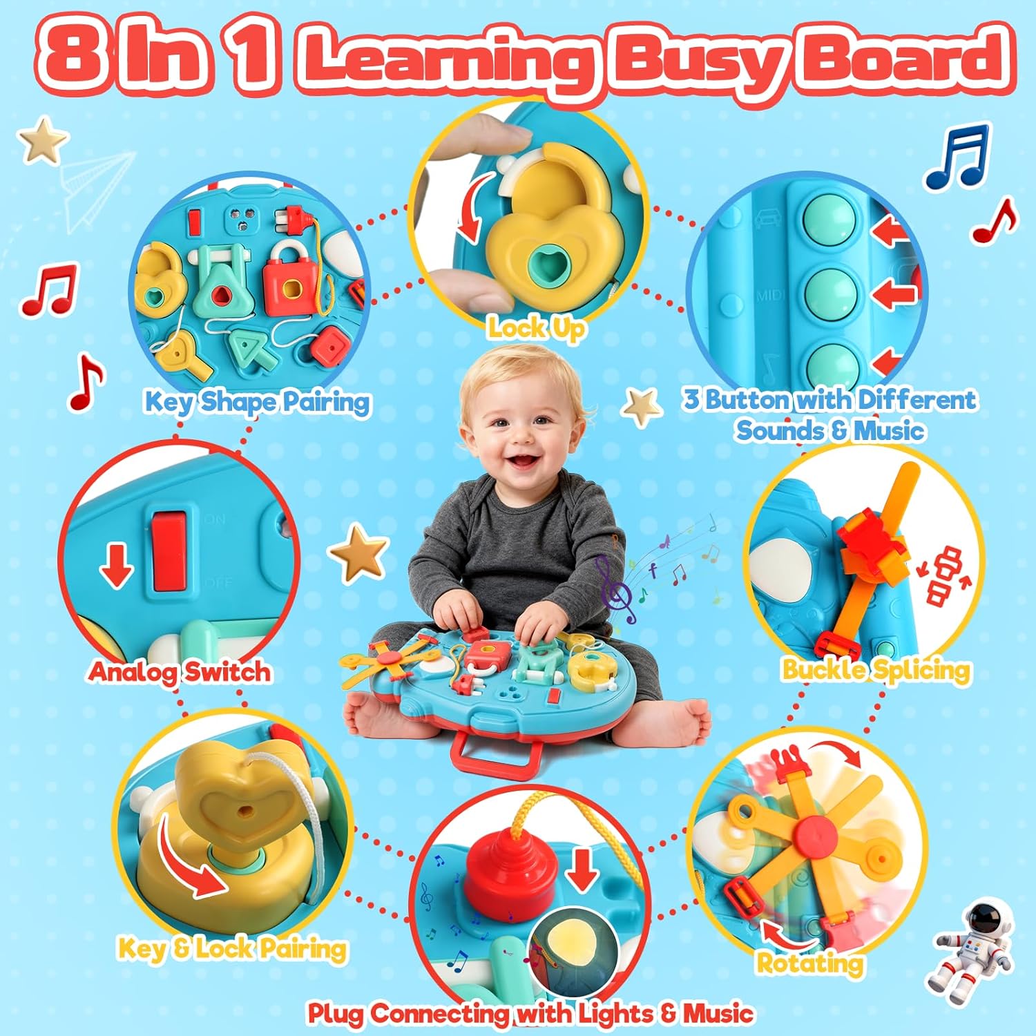 8 in 1 Giochi Bambini 1 Anno: Questo busy board montessori 1 anno, offre una vasta gamma di giochi, tra cui serrature, interruttori, abbinamenti di forme e nodi, Inoltre, è anche un giochi interattivi per bambini 1 anno dotato di funzioni audio e luci, attira enormemente l'attenzione dei bambini e allevia lo stress dei genitori nel prendersi cura dei propri figli. Ideale giochi bambina bambino 1 anno. Design Portatile e Giocattoli Multipli: Questo giochi bambini 1 anno è leggero e facile da trasportare. Raccolge serrature a cuore, a triangolo e a quadrato, abbinato a interruttori, rotelle e nodi di corda e altri meccanismi interattivi. Il bambino può aprire le serrature manualmente, ruotare le rotelle, abbinato alla musica, stimolando integralmente il desiderio di esplorazione. Molto adatto gioco bambino 1 anno. Giochi Montessori 1 2 Anno:Gioco bambino 1 anno afferrare la chiave, inserirla nella serratura, girarla per aprire la serratura, ruotare la rotella... Una serie di azioni che allenano le capacità motorie fini delle mani del bambino e favoriscono la coordinazione occhio-mano. Questo giocattolo offre uno stimolo sensoriale completo. Aiuta a sviluppare la percezione uditiva, il riconoscimento dei colori e la sensibilità tattile.È un ottimo prodotto giochi bambina bambino 1 anno. Materiali sicuri, per proteggere le manine dei più piccoli: Busy board realizzato in plastica ecologica, sicuri e resistenti.Le dimensioni dei giocattoli sono adatte alle piccole mani dei bambini.Dal materiale al design, la sicurezza dei bambini è garantita, per la tranquillità dei genitori e il divertimento dei più piccoli.È un prodotto sicuro giochi bimbo 1 anno. Regalo Bambino 1 Anno: Busy board stimolanti che combinano l'apprendimento precoce Montessori con il divertimento, rendendolo un regali bambini 1 anno di età superiore, sia che si tratti di un compleanno, un primo compleanno o una sorpresa per le feste.È il perfetto per regalo bambina bambini 1 2 anni.