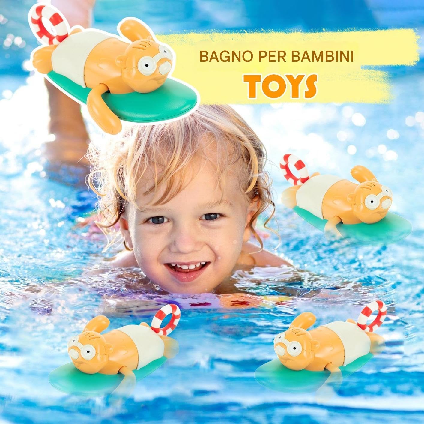 Compatto e multifunzionale: design compatto e senza cuciture per un risciacquo istantaneo e una facile conservazione. Adatto a vasche e docce di piccole dimensioni, ottimizza lo spazio. Movimento a carica manuale: questo giocattolo da bagno utilizza un meccanismo a carica manuale per creare un divertente movimento a molla che trasforma il bagno in un'esperienza coinvolgente che cattura l'attenzione dei bambini con interazioni acquatiche dinamiche e divertenti Design formativo: semplifica la gestione con forme a misura di bambino, motiva il gioco e incoraggia lo sviluppo naturale delle capacità di coordinazione trasformando il bagno in un'attività educativa Strumento di apprendimento: progettato come compagno multifunzionale, funge sia da giocattolo da bagno che da giocattolo educativo che migliora lo sviluppo sensoriale e rafforza naturalmente genitore-figlio Protezione delicata della pelle: Progettato per garantire serenità, utilizza materiali morbidi e delicati sulla pelle ed elimina gli spigoli vivi per una maggiore sicurezza quando si gioca in acqua.