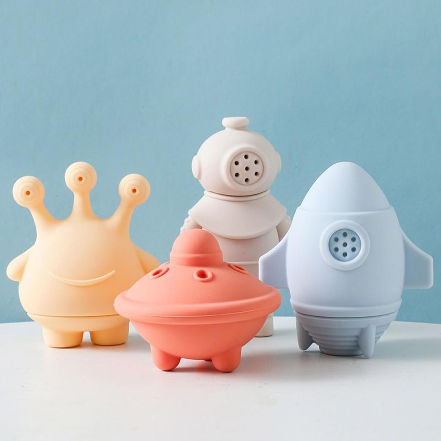Abilità Naturali: Superfici strutturate potenziano i sensi tattili mentre i colori brillanti promuovono lo sviluppo visivo e la coordinazione, stimolando organicamente le fasi sensoriali tramite attività da bagno coinvolgenti Gioco Spaziale Creativo: Stimola la curiosità dei bambini con astronauti e corpi celesti, trasformando il bagno in un entusiasmante viaggio di scoperta piena di divertimento e immaginazione senza fine Design Igienico: Struttura smontabile favorisce essiccazione rapida ed evita ristagni d'acqua, semplificando la pulizia con risciacquo per mantenere igiene impeccabile dei giocattoli da bagno senza sforzo Compagno di Bagno Divertente: Trasforma la routine in un'attività piacevole con caratteristiche interattive che galleggiano e spruzzano acqua, calmando il bambino e intensificando la connessione durante il bagno Materiale Sicuro per Dentizione: Il silicone alimentare morbido e durevole offre un sicuro alla dentizione, per essere masticato durante il bagnetto.
