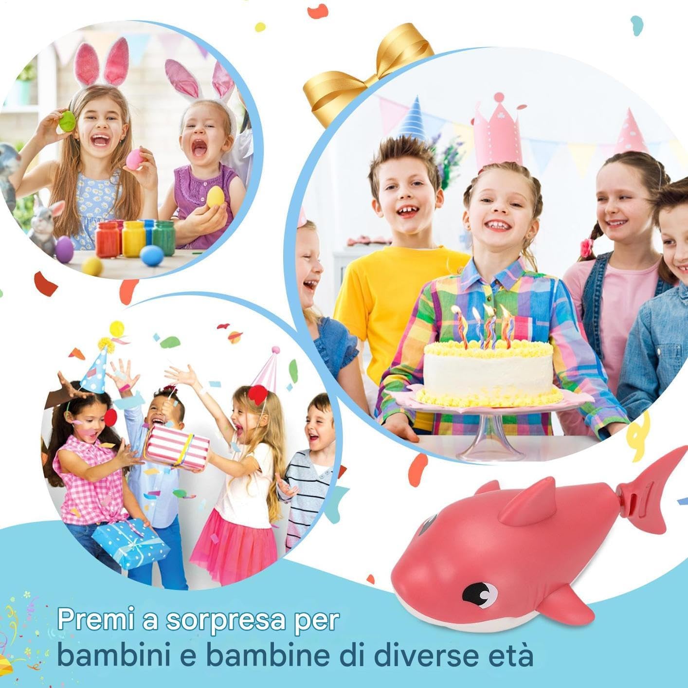 Operazione semplice: Basta girare il componente a carica e appoggiare dolcemente lo squalo in acqua. Nuoterà in modo autonomo, creando un momento rilassante e piacevole durante il bagnetto. Giochi Educativi: Stimola la curiosità e le capacità sensoriali durante il bagnetto. Forme morbide e facili da afferrare promuovono l'apprendamento dei colori e la motricità fine mentre i bimbi giocano nell'acqua Design Accattivante: Giocattolo da bagno a forma di squalo adorabile cattura l'attenzione del bambino, rendendo il momento del bagno coinvolgente e piacevole. La simpatica figura stimola la fantasia e aiuta i piccoli a scoprire il divertimento durante il bagnetto attraverso il gioco creativo con questo compagno acquatico. Materiale Eccellente: Lavorati in ABS di alta gamma, i giocattoli da bagno sono solidi e resistenti, assicurando ottima durabilità per uso a lungo termine preservando sicurezza e affidabilità durante il divertimento in vasca Adattabilità:Progettati per vasca da bagno e ambienti da piscina questi giochi assicurano godibilità versatile durante la doccia garantendo esperienze acquatiche domestiche coinvolgenti per intrattenimento del bebè in diversi contesti d'acqua con giochi da bagno pratici