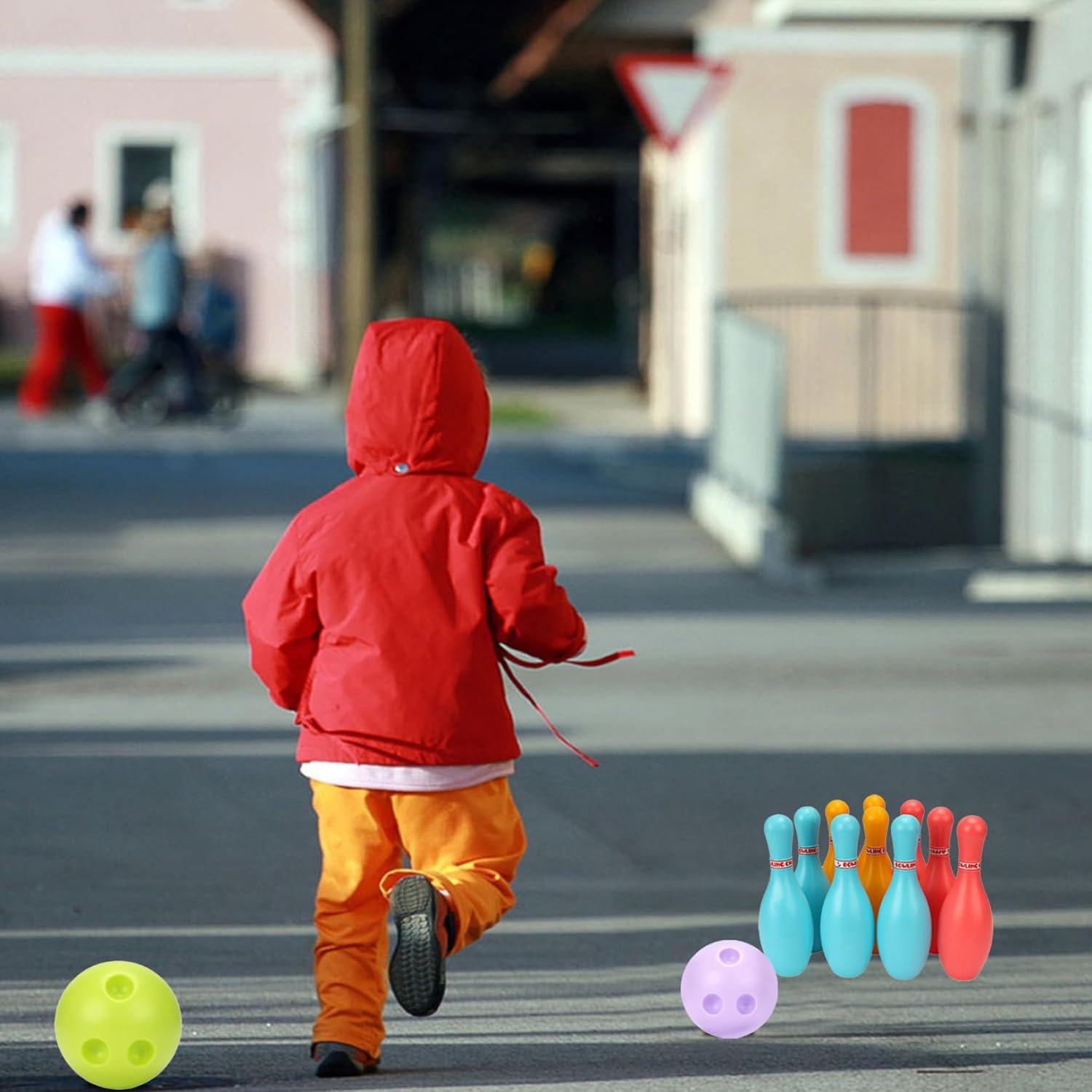 Il pacchetto include: il set da bowling per bambini comprende 10 birilli colorati e 2 piccole palline da bowling..Sono di piccole dimensioni, quindi è facile per ragazzi e ragazze giocare. Sviluppa abilità per bambini: giocattolo da bowling Aiuta i bambini a sviluppare abilità di bowling all'interno o all'esterno e a migliorare la coordinazione occhio-mano generale, le capacità motorie e l'equilibrio dei bambini..I bambini faranno anche esercizi fisici, che possono aumentare il loro entusiasmo per lo sport fin dall'inizio. Grandi giocattoli educativi: i nostri set da bowling in plastica aiutano a sviluppare le capacità motorie generali e la consapevolezza spaziale. Fa sì che i bambini imparino a contare mentre sistemano le bottiglie in base ai numeri e aiuta anche a migliorare l'identificazione del colore, le capacità motorie e anche l'interazione e il modo di comunicare con le persone. Materiale: questo kit palla da bowling è realizzato in materiale plastico sicuro e con una superficie liscia e innocua. Perfetto: il set da bowling per bambini è adatto a bambini dai 3 anni, come compleanno per ragazzi dai 3 ai 9 anni..Perfetto per i bambini di 3,4,5,6,7 anni a Natale, Pasqua, Halloween, Festa dei bambini.
