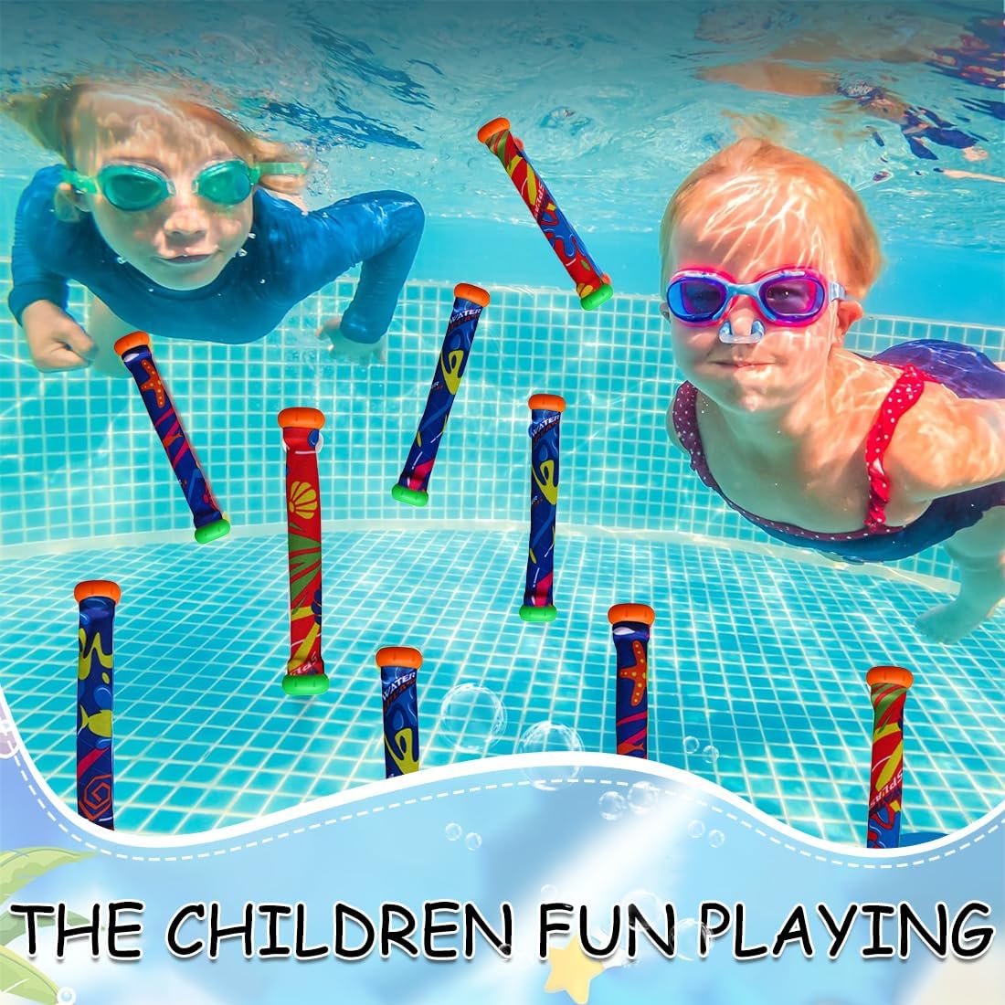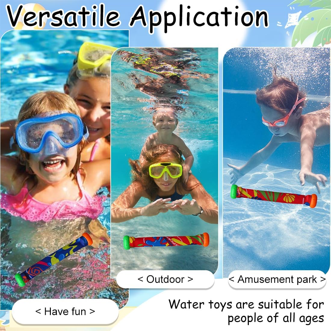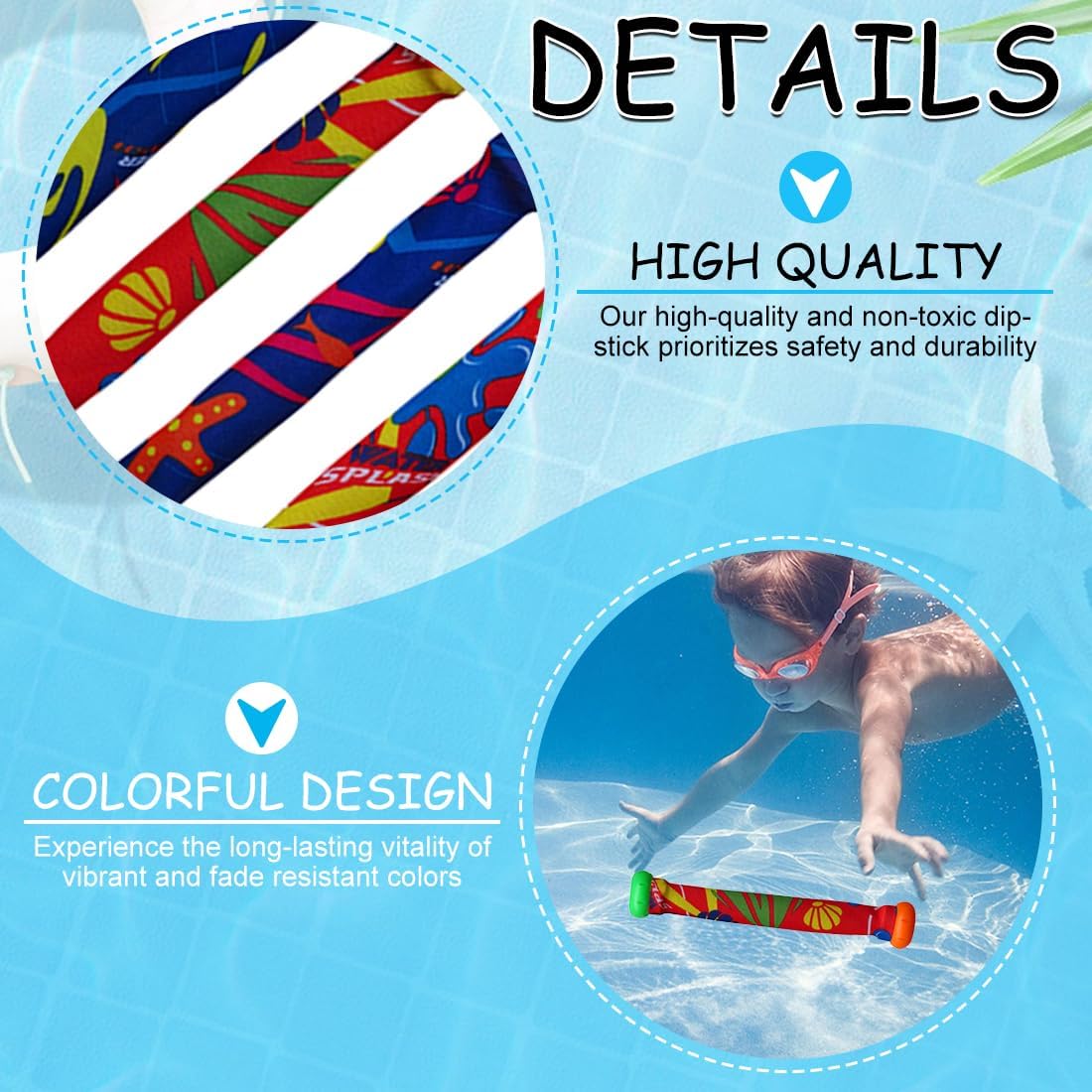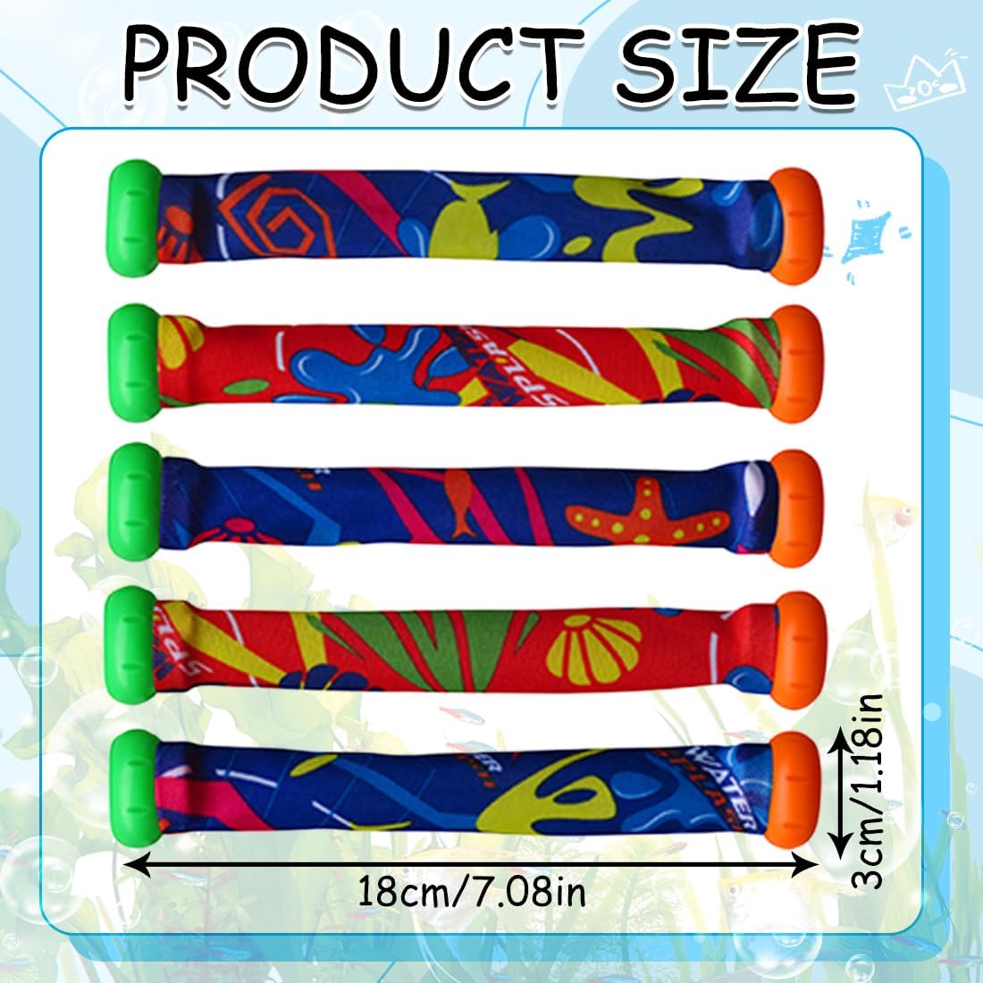 5 COLORI: immergiti in un mondo colorato con i nostri 5 giocattoli da sub in tessuto. I colori vivaci aggiungono entusiasmo e divertimento a ogni avventura subacquea. Dimensioni: il giocattolo subacqueo in tessuto da 18 x 3 cm ha le dimensioni perfette per il gioco in acqua ed è una scelta bilanciata e versatile per bambini di tutte le età. Colorato e resistente allo sbiadimento: sperimenta una vitalità duratura, colori vivaci e nessun sbiadimento, garantito per durare anche dopo un uso ripetuto. Materiale in tessuto morbido: Il centro del giocattolo è realizzato in tessuto resistente e spesso, accuratamente progettato per resistere al gioco in acqua, proteggendo al contempo la salute del bambino. Affonda velocemente, rimane sott'acqua: crea adrenalina con un bastone da sub che affonda velocemente e rimane in posizione verticale sott'acqua: una sfida entusiasmante per i bambini da recuperare e con cui divertirsi.