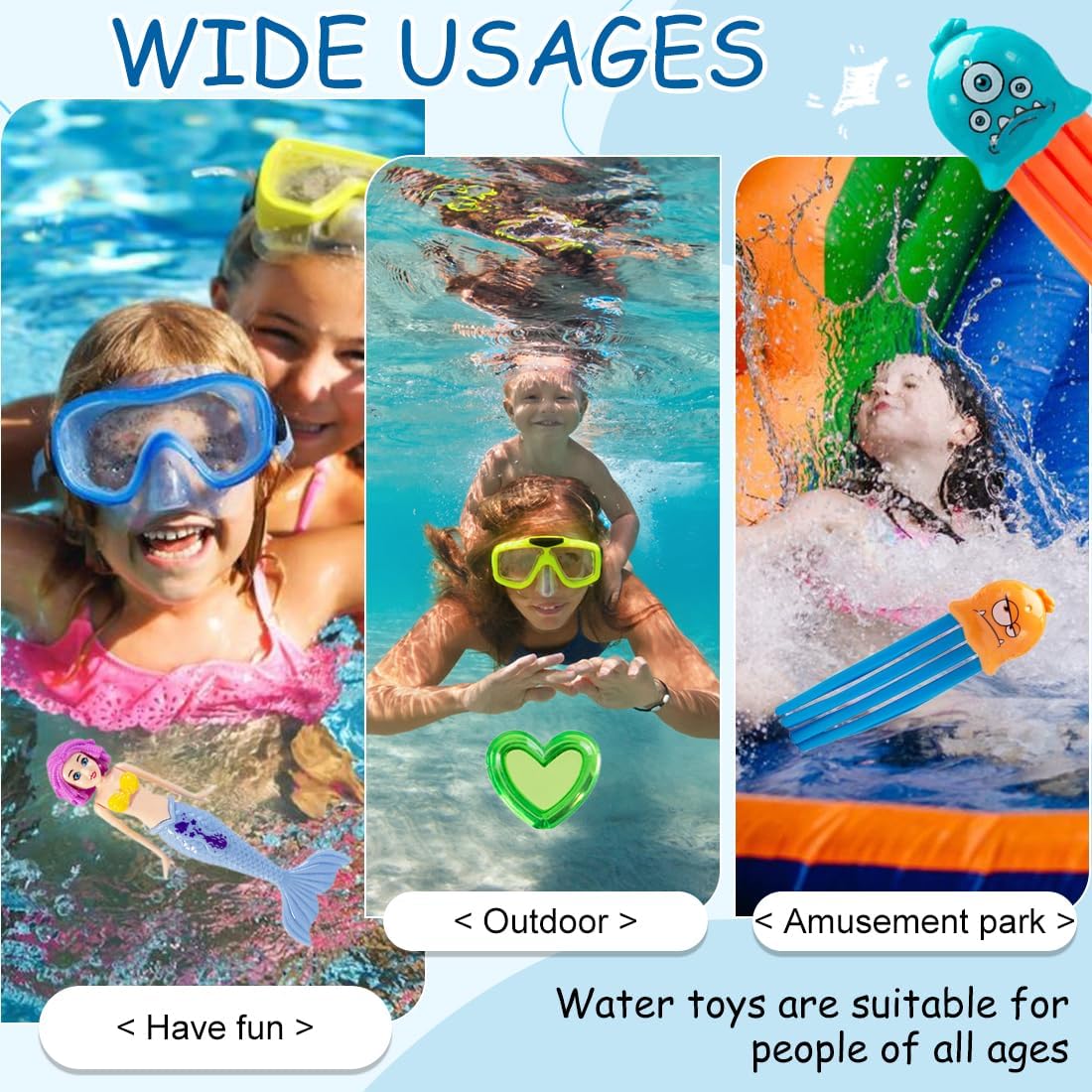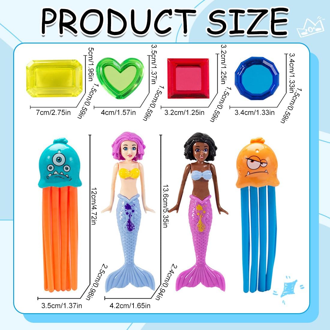 【Set di cerchi per immersioni per bambini】Otterrai 8 divertenti giocattoli per immersioni, tra cui 2 meduse + 2 sirene + 4 gemme. Questo giocattolo subacqueo è stato progettato appositamente per i bambini: con questo set i bambini potranno divertirsi in spiaggia e in piscina. 【Materiali di alta qualità】I giocattoli da piscina per bambini sono realizzati con materiali sicuri e durevoli. La superficie dei giochi d'acqua per bambini è liscia e senza spigoli vivi, quindi sono facili da impugnare e non faranno male ai bambini. L'anello da immersione è robusto e durevole e può essere riutilizzato più volte. 【Migliora le abilità di immersione】Gli accessori per giocattoli subacquei sono ricchi e i genitori possono giocare con i propri figli. I giocattoli da piscina sono ideali per bambini e adolescenti e possono essere utilizzati per l'addestramento alle immersioni, per giochi in acqua, ecc. Rendono divertenti le attività di nuoto e migliorano le capacità di immersione di bambini e bambine. 【Divertimento e giochi】: i giocattoli per l'allenamento in piscina si basano sul principio di gravità. Basta lanciare i tuoi giocattoli da sub in piscina, aspettare che affondino sul fondo e poi impostare diverse distanze per recuperarli. I giocattoli subacquei colorati per bambini renderanno il divertimento ancora maggiore. Vieni a goderti una meravigliosa nuotata estiva con la tua famiglia! 【Ottimo regalo per bambini】Il set per immersioni è il miglior regalo estivo per bambini, decorazione per feste in piscina, giochi d'acqua per bambini, giocattoli da piscina, regalo di compleanno. I giocattoli subacquei per bambini sono ampiamente utilizzati durante le vacanze estive, i corsi di nuoto, gli allenamenti di immersioni, i bagni, i parchi acquatici, ecc.
