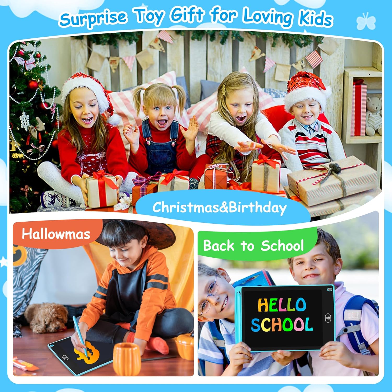 ✍【Aggiorna la tavoletta grafica LCD per bambini】Utilizza la più recente tecnologia flessibile a cristalli liquidi per scrivere sulla tavoletta in modo luminoso e chiaro. Tecnologia di risparmio energetico che riduce il consumo di elettricità, rendendola ecologica ed economica. La tecnologia avanzata dello schermo offre inoltre un'esperienza di scrittura confortevole senza danneggiare gli occhi del tuo bambino. 🧠【Scatena la creatività di tuo figlio】 La ricerca ha dimostrato che i bambini sono i più creativi a partire dalla scuola materna. La tavoletta grafica Carviki è uno strumento perfetto per stimolare l'immaginazione e la creatività del tuo bambino. Che stiano scarabocchiando, disegnando, scrivendo o scarabocchiando, il nostro tablet offre un modo divertente e coinvolgente per esprimersi e liberare l'artista interiore. 🙋【Mantieni il tuo bambino concentrato】La custodia da disegno per bambini Carviki è il modo ideale per aiutare il tuo bambino a rimanere concentrato e impegnato, a casa, in macchina o in viaggio. Senza distrazioni, offre un'ottima alternativa agli schermi tradizionali, che possono essere fonte di sovrastimolazione e disturbo. Puoi giocare a indovinare cosa disegnare e coltivare l'interazione genitore-figlio. 🎈【Le mani libere della mamma】La lavagna magica Carviki è un must per le mamme impegnate che hanno bisogno di tenere le mani libere mentre intrattengono i propri figli. Che tu stia cucinando, pulendo o facendo commissioni, il nostro tablet offre a tuo figlio un modo sicuro e divertente di giocare e imparare senza richiedere la tua costante attenzione. 🎁【Regalo perfetto per i bambini】Il tablet per bambini Carviki è un ottimo regalo per ogni bambino. Sono disponibili 3 diversi stili di colore, una scelta regalo perfetta per il compleanno, la Festa dei bambini, Natale, il rientro a scuola, ecc. Con la sua tecnologia innovativa, il design ecologico e infinite possibilità creative, è il modo perfetto per mostrare a tuo figlio quanto ci tieni.