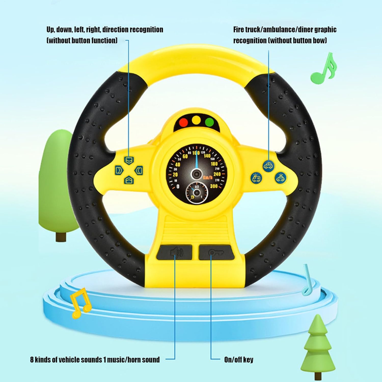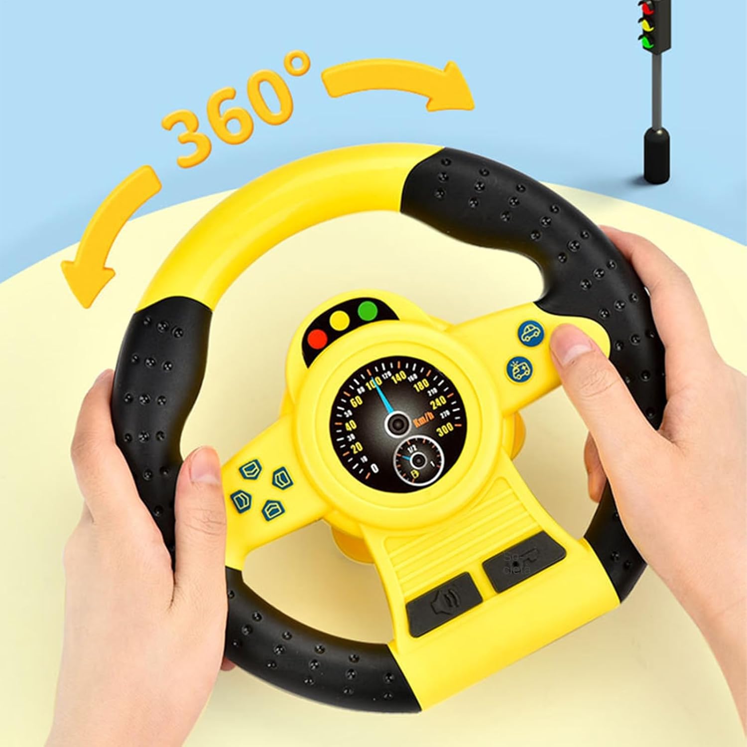 Usa in modo sicuro: vantando una robusta sul retro, questo giocattolo del volante per bambini può essere attaccato a oggetti lisci e piatti per ore di divertimento. Inoltre, è progettato con una protezione ad angolo arrotondata per impedire ai bambini di farsi male Pronto per l'uso: i suggerimenti vocali del giocattolo del volante dei nostri bambini e i controlli realistici rendono facile per i bambini imparare le regole del traffico e divertirsi. Premere i pulsanti per i suggerimenti vocali, ruotare il volante e girare a sinistra e a destra. per il gioco interattivo e coinvolgente Ottima lavorazione: sapientemente realizzata con una delicata lavorazione, il giocattolo del volante sfoggia una prestazione anti-caduta, con parti lisciate senza intoppi che assicurano che le mani dei bambini rimangano incolumi Non facile da rompere: i genitori possono consentire ai loro figli di usare questo giocattolo del volante con sicurezza, grazie ai suoi materiali sicuri e entrovisti. Aggiunge eccitazione e più divertimento a qualsiasi avventura mentre dà tranquillità ai genitori Nice regalo: ideale per docce per bambini ed eventi scolastici, il nostro giocattolo del volante è un regalo premuroso. Affronta la sana crescita fisica e mentale, promuove il genitore-figlio e le capacità motorie e l'udito