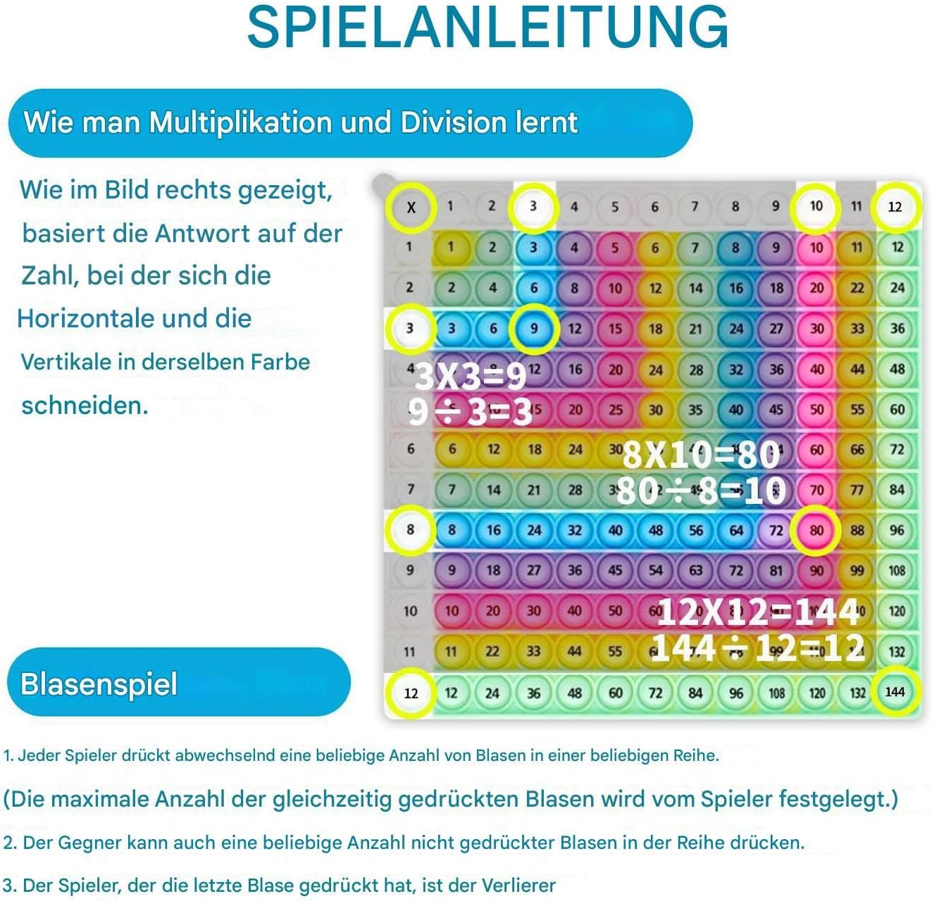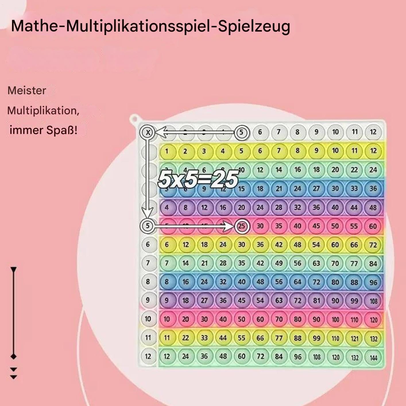 Risorsa didattica efficace: Multiplication Pop 12x12 presenta un layout visivamente accattivante con codice colore per aiutare gli insegnanti e i genitori in classe a praticare la matematica e promuovere il riconoscimento dei modelli e il miglioramento della memoria attraverso esperienze di apprendimento sane per tutte le età. Strumento di rinforzo matematico tattile: la lavagna Math Pop combina il gioco tattile che migliora la concentrazione con la pressione sensoriale per supportare l'apprendimento che riduce lo stress durante la pratica della matematica. Ciò lo rende ideale per i bambini che necessitano di un'esperienza di apprendimento rilassante ma coinvolgente a casa o in classe Facile da trasportare: Combinando portabilità e funzionalità, questo tappetino didattico resistente alla ripetizione consente ai bambini di impegnarsi senza problemi nella pratica della moltiplicazione durante i viaggi in macchina, le vacanze o le attività all'aperto senza ingombro aggiuntivo. Meravigliosa scelta regalo: la moltiplicazione del giocattolo Fidget matematico migliora le capacità di risoluzione dei problemi e supporta la motivazione matematica che incoraggia il gioco, fornendo un apprendimento significativo per le vacanze per arricchire le giovani menti durante le vacanze o durante il gioco educativo Divertenti esercizi di moltiplicazione: Multiplication Pop funge da ausilio all'apprendimento tattile-visivo incorporando divertenti apprendimenti intersanitari negli esercizi di moltiplicazione, mantenendo i bambini concentrati e intrattenuti durante le attività matematiche a scuola o le serate di gioco in famiglia