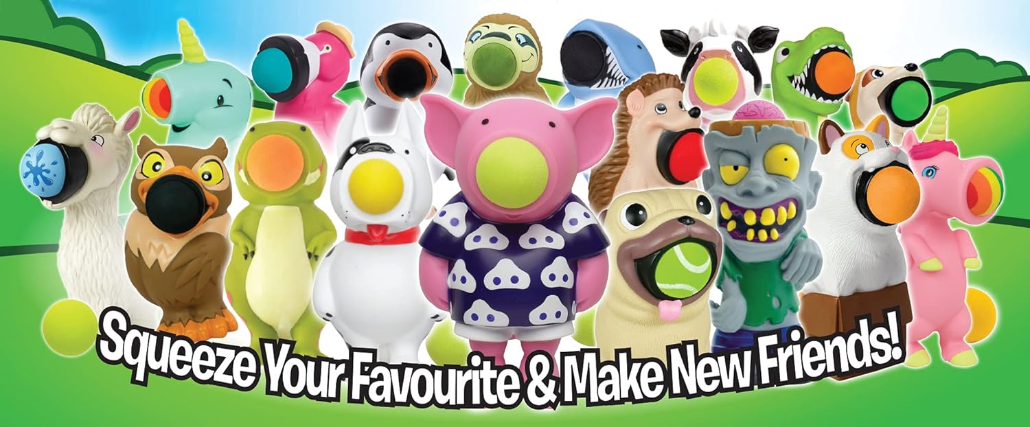 La comprovata popolarità degli Squeeze Poppers li rende un must per la tua collezione di palline di schiuma. Metti una palla nella bocca del bradipo... dagli una potente compressione sulla pancia... e KAPOW!... La palla in morbida schiuma spara fino a 20 piedi Sicuro per interni ed esterni, ogni confezione viene fornita con 6 palline.