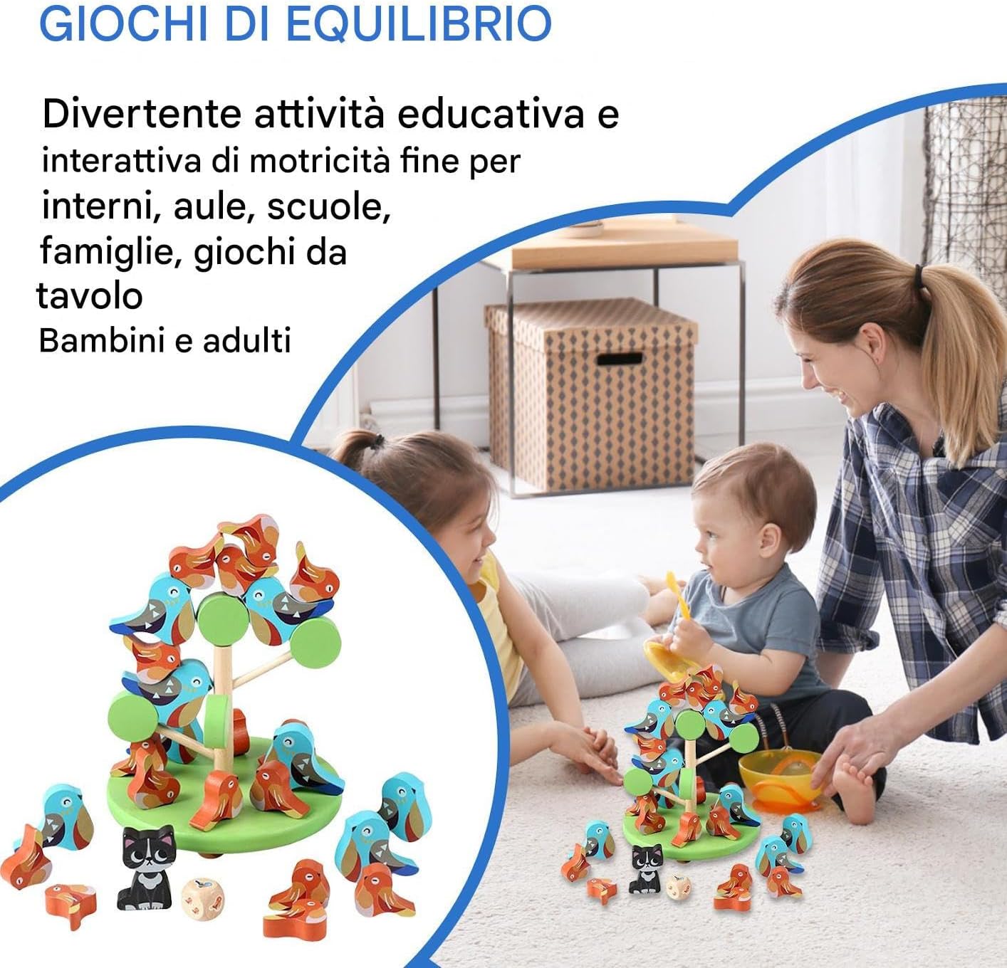 Trasporto Senza Sforzo: Soluzione leggera con design adattabile e custodia pratica, offre intrattenimento portatile ovunque grazie alle dimensioni ridotte che semplificano lo spostamento. Competizione di : Favorisce la creazione di rituali familiari con modalità di impilamento collaborativo che migliorano le capacità comunicative introducendo sfide di gruppo in ambiente interattivo Test Abilità:Gioco incentrato sull'equilibrio che stimola il pensiero logico con sfide divertenti, sviluppa la coordinazione occhio-mano e incrementa la percezione spaziale tramite esplorazioni dinamiche e coinvolgenti Struttura Legno : Realizzato con legno pregiato rifinito e lavorazione multilivello, offre superficie liscia con bordi sicuri per bambini, progettato per durare anni di utilizzo continuativo Supporto Apprendimento Precoce: Rafforza le capacità motorie e la percezione cromatica attraverso sfide strutturate, essenziale per le tappe educative iniziali dei bambini piccoli
