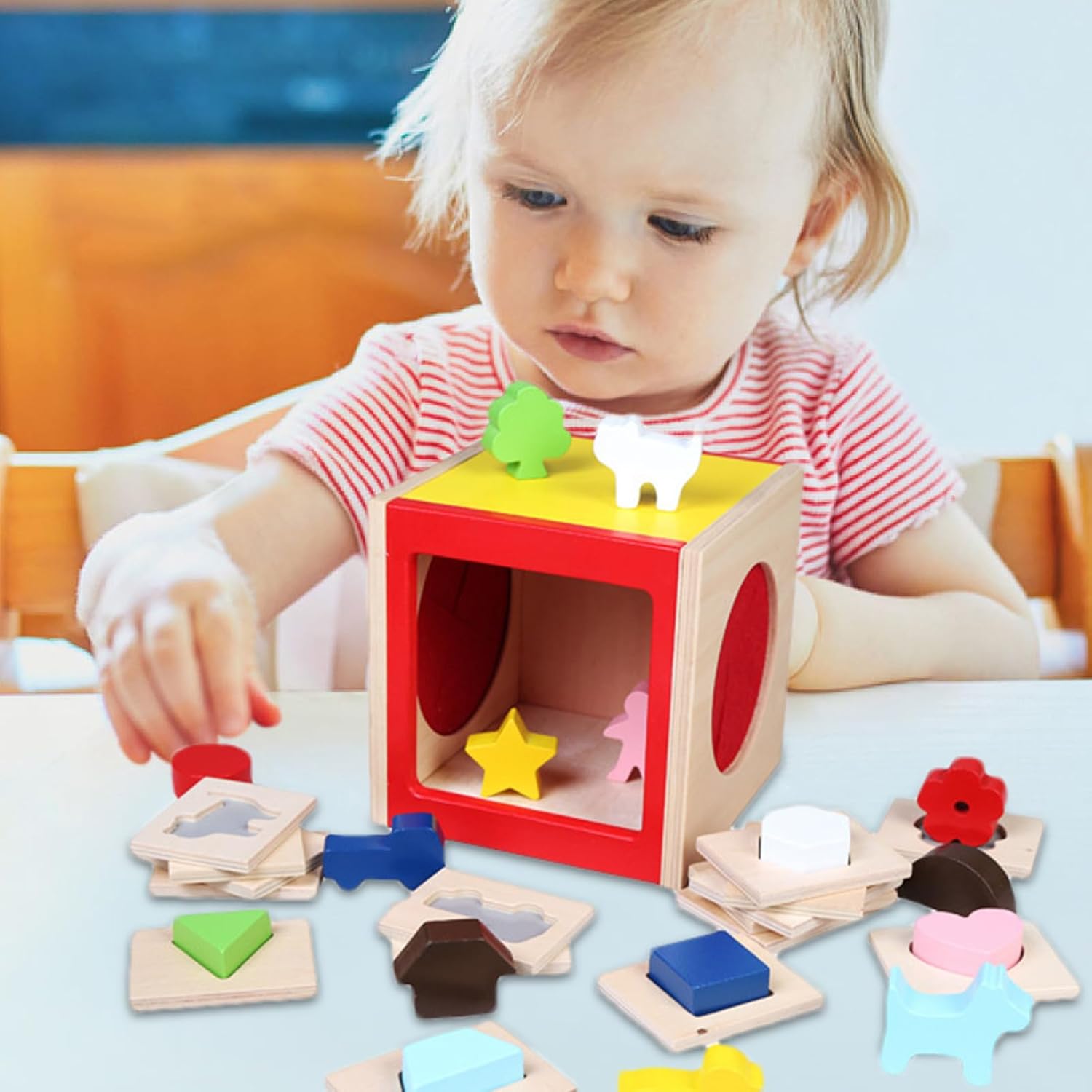 Sviluppo Cognitivo: Stimola il cognitivo precoce e la padronanza delle forme con giocattoli in legno che uniscono ispirazione educativa pensiero logico pratico e sfide di abbinamento per bambini Caratteristiche di Sicurezza: Giocattolo con bordi arrotondati e finitura superficiale ultra liscia che previene graffi, studiato per mani piccole e movimenti naturali per divertimento senza preoccupazioni Sviluppo abilità manuali: La scoperta tattile guidata con scatola chiusa supporta l'allenamento integrazione sensoriale, sviluppando destrezza manuale e capacità creative Gioco a Difficoltà Regolabile: Apprendimento pratico con giocattoli forme in legno, design rompicapo al buio e livelli scalabili, sostiene una crescita educativa diversificata tramite l'impegno nel gioco Sviluppo Abilità: Rafforza le abilità di problem solving, il riconoscimento dei colori e la concentrazione, offrendo vantaggi educativi duraturi e potenziando naturalmente la consapevolezza spaziale e la memorizzazione delle forme.