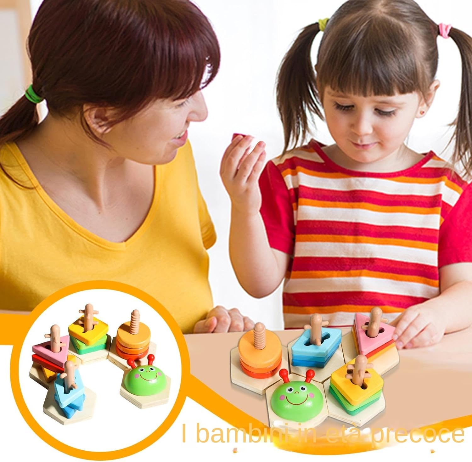 Sviluppo Cognitivo: Il processo di apprendimento dello smontaggio unito alla pratica ripetuta di assemblaggio potenzia il controllo motorio fine, stabilendo una base per la crescita creativa ed educativa continuativa Apprendimento Sicuro: Giochi impilabili in legno con livelli di difficoltà progressiva per bambini 1-3 anni, promuovono la motricità fine grazie alla presa ergonomica e bordi arrotondati lisci per massima sicurezza durante il gioco. Giochi Creativi: Goditi un gioco interattivo con componibili che supportano elementi di ruolo, rafforzando il genitore-figlio attraverso scene di gioco per momenti creativi e piacevoli in famiglia. Esperienza Formativa: Le sfide d'impilamento promuovono principi matematici precoci e rafforzano abilità motorie, unendo coordinazione occhio-mano al riconoscimento forme geometriche per un'arricchente esperienza educativa Combinazioni Cromatiche Ricche: Conla logica spaziale e affina le abilità di soluzione problemi integrando colori vivaci e forme diversificate in un'esperienza dinamica d'impilamento per apprendimento multidimensionale