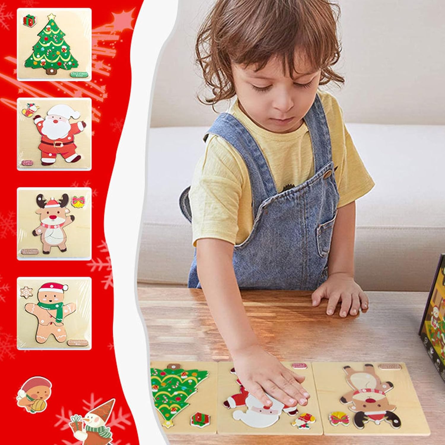 Personaggi Festivi Vibranti: Con vivaci figure natalizie e motivi stagionali che portano un'atmosfera festosa nella stanza, introducendo al contradizioni di Natale care, migliorando naturalmente lo spirito di celebrazione con colori brillanti Costruzione Robusta e Durevole: Grazie al materiale legnoso e alla lavorazione , questo puzzle natalizio offre pezzi resistenti all'usura che conservano i colori vivaci nel , garantendo un'esperienza duratura e soddisfacente per ogni utilizzo Allestimento Innovativo: Migliora l'atmosfera interna attraverso l'esposizione del puzzle completato, offrendo un modo innovativo per decorare lo spazio diffondendo gioia e appeal visivo con un design versatile e adatto a tutti gli ambienti Esercizio Cerebrale Interattivo: Questo Christmas Puzzle favorisce la pratica del problem solving e la crescita cognitiva, migliorando la coordinazione occhio-mano e affinando le abilità motorie fini attraverso un gioco interattivo e stimolante per tutte le età Regalo Meraviglioso: Giocattolo educativo adatto a partire dai 3 anni che stimola le capacità cognitive mentre è un ottimo regalo festivo, ideale per coinvolgere la famiglia in attività divertenti durante la stagione natalizia con un design educativo
