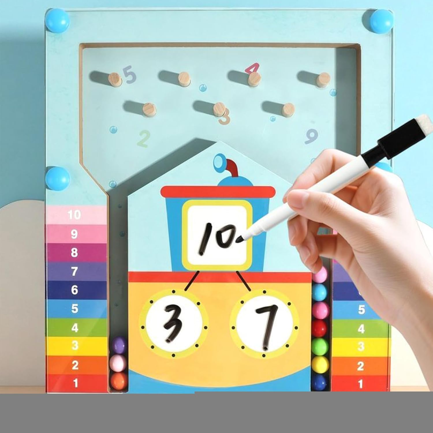 Divertimento Sicuro e Durevole: Dotato di perline sicure colorate su base lignea robusta con pannelli acrilici trasparenti, questo gioco matematico offre qualità resistente catturando efficacemente l'interesse dei piccoli apprendisti Matematica Divertente: Le perline interattive trasformano concetti matematici astratti in attività coinvolgenti che rendono l'apprendimento piacevole, sviluppando contemporaneamente il senso numerico e alimentando la passione per la matematica attraverso il gioco pratico Introduzione alla Matematica: i bambini alla scuola primaria presentando concetti matematici , migliorando il ragionamento logico e agevolando il passaggio all'istruzione formale con attività divertenti Esercizi Coinvolgenti: Rinforza le abilità di sottrazione e insegna le addizioni di base con numeri 1-10. Assicura che i bambini sviluppino solide basi matematiche attraverso attività divertenti che promuovono pratica diretta e padronanza durante il gioco. Risoluzione Interattiva: Giochi matematici per bambini migliorano concentrazione, coordinazione occhio-mano e motricità fine, sviluppando capacità di problem solving in modo coinvolgente per giovani apprendisti