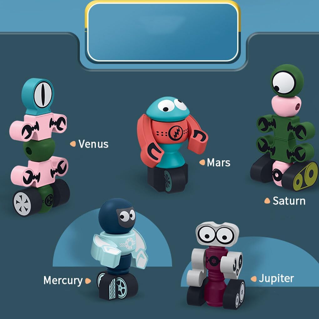 Giochi divertenti da 5 pezzi con blocchi magnetici stimolano la creatività e l'apprendimento dei giocattoli robot magnetici ABS. Regali meravigliosi