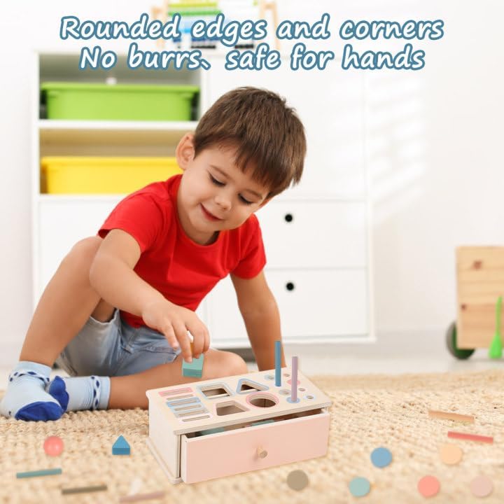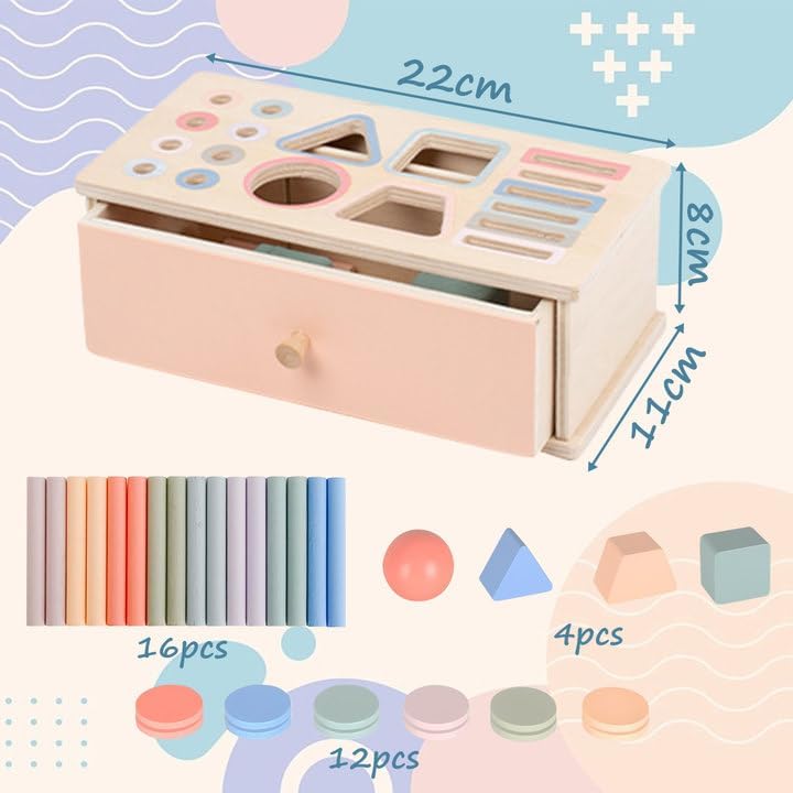 Giochi Montessori:questo Giochi Montessori utilizzato per assegnare colori e forme comprende una scatola di legno,16 bastoni rotondi,12 blocchi di legno rotondi e 4 blocchi di legno 3D.Giochi in legno per bambini Forma il riconoscimento dei colori e delle forme,impara le basi e risolve i problemi Materiale di qualità:i Giochi Montessori utilizzano un materiale di legno robusto di alta qualità,con un lato esterno liscio,molto resistente e senza odore.I bordi rotondi della barra e della scatola di legno garantiscono la sicurezza dei bambini e danno ai genitori una maggiore sensazione di sicurezza Facile da immagazzinare:il design del cassetto consente di inserire tutte le parti in esso,facilitando il trasporto come giocattolo da viaggio.I bambini possono organizzare facilmente i giocattoli e sviluppare abitudini di stoccaggio,facilitando l'interazione dei genitori con i bambini in qualsiasi momento e ovunque per facilitare la comunicazione emotiva Promuovere l'apprendimento e lo sviluppo:Giochi Montessori aiuta i bambini a scoprire il mondo toccando vari oggetti e osservando i risultati del loro comportamento,ed è ideale per migliorare le abilità motorie dei bambini e riconoscere colori e forme Il regalo ideale:questo giochi in legno per bambini è il regalo perfetto.E 'super adatto come un regalo significativo per 1 2 bambini di 3 anni in vacanze come compleanno,Pasqua,Capodanno,Natale,Halloween,ecc
