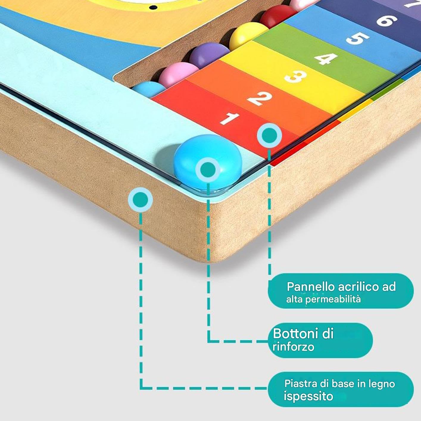 Costruzione per Bambini e Robusta: Progettato con vivaci perline sicure, una base in legno e pannelli acrilici trasparenti, offre un prodotto di lunga durata che unisce sicurezza e gioco educativo coinvolgente per l'infanzia. Divertimento Matematico Tattile: Le perline interattive un'esperienza coinvolgente che rende la matematica divertente e accessibile, rafforzando il senso numerico dei bambini e incoraggiando la partecipazione attiva nell'apprendimento matematico Fondamenti Matematici: Introduce concetti matematici essenziali sviluppando il pensiero logico, garantendo un passaggio agevole alla scuola primaria e preparando i bambini al successo scolastico con attività coinvolgenti Apprendimento Base: Sostiene la costruzione delle fondamenta matematiche introducendo addizioni e sottrazioni con numeri 1-10. Offre un modo coinvolgente per rinforzare abilità chiave con giochi dinamici studiati per potenziare la competenza aritmetica iniziale. Sviluppo Cognitivo: Progettati per affilare concentrazione, migliorare coordinazione occhio-mano e sviluppare motricità fine, offrono un metodo divertente per costruire competenze di problem solving