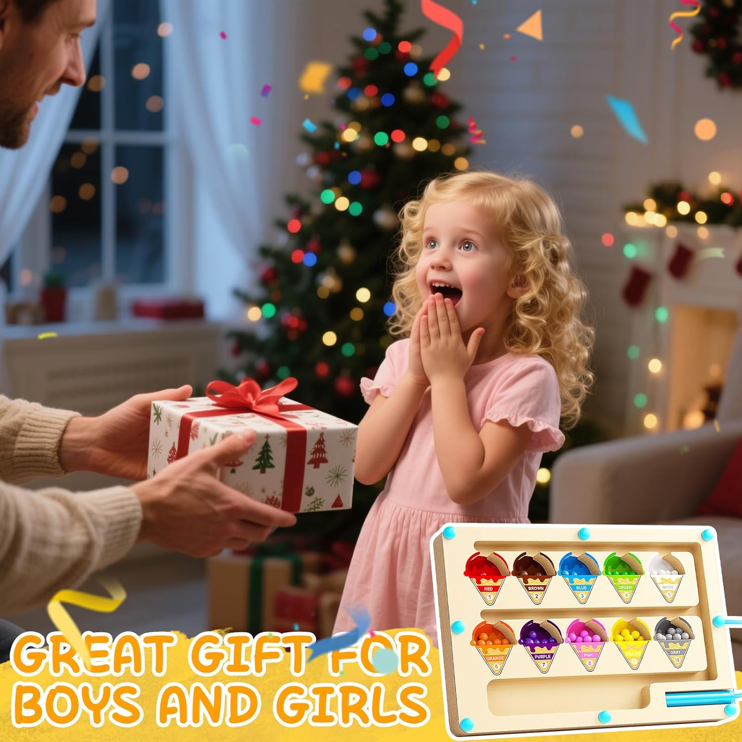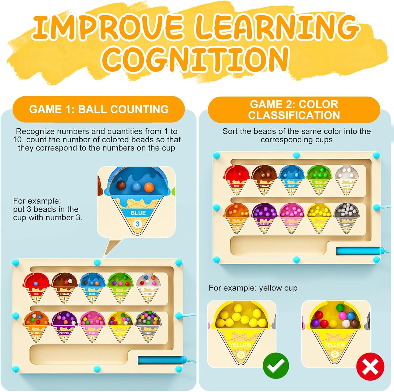 【Apprendimento divertente】 Il nostro Giochi Montessori ha la forma di un labirinto di gelati. I 10 gelati corrispondono ai numeri da 1 a 10 e a diversi colori. I bambini possono usare le bacchette magnetiche per trascinare le perline magnetiche in modo che si adattino, sviluppando facilmente la cognizione digitale, il conteggio e il riconoscimento dei colori. Utilizzando il nostro Labirinto Magnetico Bambini, la flessibilità delle mani dei bambini può essere migliorata. 【Materiali di alta qualità】Il nostro Giocattoli in Legno Educativi è realizzato in legno naturale con vernice a base d'acqua, con superficie e bordi lisci e una struttura solida. Il nostro Giochi Montessori utilizza una lavagna acrilica per incapsulare le perline magnetiche ed evitare che cadano; la penna magnetica è collegata alla lavagna con una corda fissa ed è dotata di uno speciale scomparto per penne, così puoi usarla quando vuoi senza preoccuparti di perdere piccoli accessori. 【Design portatile】 Il nostro Labirinto Magnetico Bambini è piccolo e leggero, quindi è facile da mettere nello zaino dei bambini. Possono giocare in qualsiasi momento durante i lunghi viaggi per mantenersi concentrati e divertirsi. Quando mangiano fuori o fanno un picnic al parco, i bambini possono usare il nostro Giochi Montessori per giocare in qualsiasi momento. È un ottimo compagno per viaggi e attività all'aperto. 【Interazione genitore-figlio】 Giocattoli in Legno Educativi può promuovere la relazione genitore-figlio. I genitori possono partecipare ai giochi e giocare con i propri figli. Possono accrescere le proprie emozioni nell'interazione e aiutare i bambini a sviluppare la coordinazione occhio-mano, le capacità motorie fini e altre abilità. Labirinto Magnetico Bambini introduce i concetti matematici di base e le capacità di problem solving ai bambini in modo interessante e coinvolgente. 【Regalo preferito】 Giochi Montessori integra elementi educativi come il riconoscimento dei colori, la classificazione e l'apprendimento dei numeri. Quando i bambini giocano, la loro coordinazione occhio-mano, le capacità motorie fini e le capacità di problem solving migliorano simultaneamente. Giocattoli in Legno Educativi è un regalo eccellente per compleanni, Natale e altre festività per bambini in età scolare dai 3 ai 5 anni.