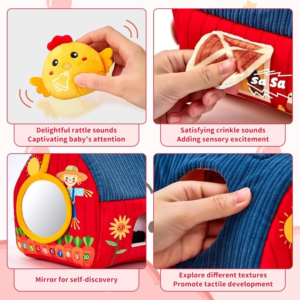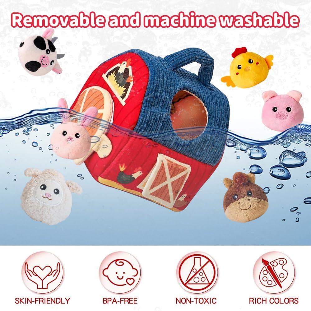 【Set da gioco creativo Fienile】I nostri Giochi Neonato includono sei simpatici animali della fattoria di peluche (agnello, coniglio, mucca, pony, pulcino e maiale) per l'esplorazione sensoriale. I bambini possono pizzicare, stringere e scuotere il fienile per sperimentare i suoni della carta frusciante e dei sonagli e la sensazione tattile di diverse texture. Il fienile presenta anche due aperture appositamente progettate per il gioco interattivo. 【Set di animali della fattoria】I nostri Giochi Neonato promuovono lo sviluppo delle capacità multisensoriali. Gli animali di peluche sono inoltre dotati di sonaglio incorporato, suoni divertenti e colori vivaci per favorire lo sviluppo visivo e uditivo. Uno specchio sicuro aiuta i bambini a osservare e monitorare i propri movimenti, promuovendo la consapevolezza di sé e creando momenti di felicità. 【Materiale sicuro e morbido】Questi giocattoli di peluche in cotone sono realizzati in peluche di alta qualità e cotone naturale, che li rende morbidi e delicati sulla pelle. Questi Giochi Neonato sono inodori e privi di piccole parti, quindi non rappresentano un pericolo per il tuo bambino. Ogni peluche è lungo poco più di 7 cm, eliminando il rischio di soffocamento. Offrono un divertimento sensoriale sicuro e piacevole e sono sicuri da tenere in mano. 【Facile da trasportare】Il fienile in peluche funge anche da spazio per riporre tutti i giocattoli di peluche in cotone ed è dotato di una morbida maniglia per un facile trasporto. Perfetto per gite in auto, pasti o giochi al parco. Questi Giochi Neonato intrattengono il tuo bambino e facilitano i viaggi per i genitori. Adatto a bambini dai 6 ai 12 mesi. 【Regalo ideale per bambini】Questi Giochi Neonato sono un ottimo regalo per neonati e bambini piccoli e una scelta popolare per baby shower, compleanni o vacanze. I colori vivaci e le funzioni interattive intrattengono i più piccoli, favorendo al contempo lo sviluppo cognitivo e sensoriale. Un compagno delizioso per l'infanzia.