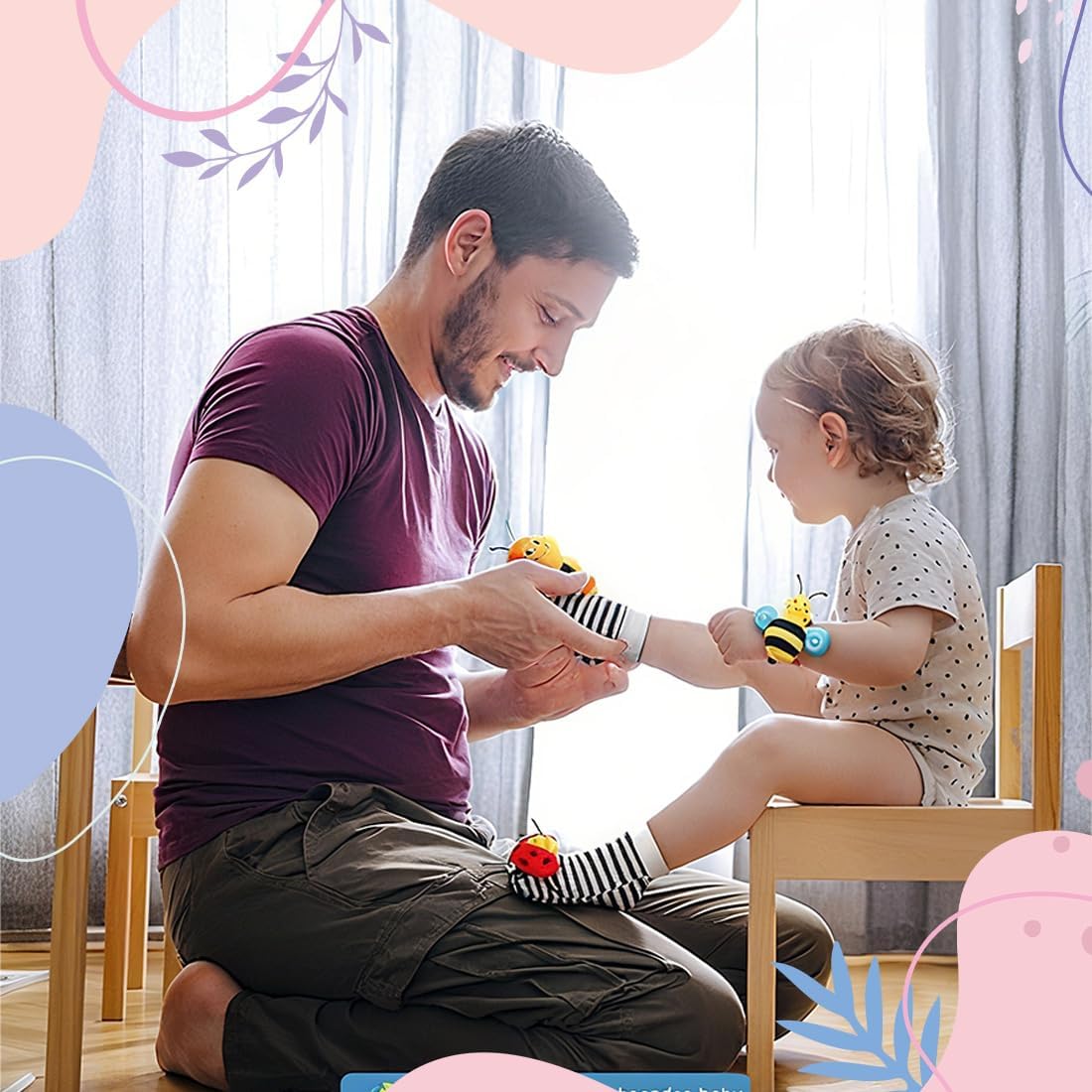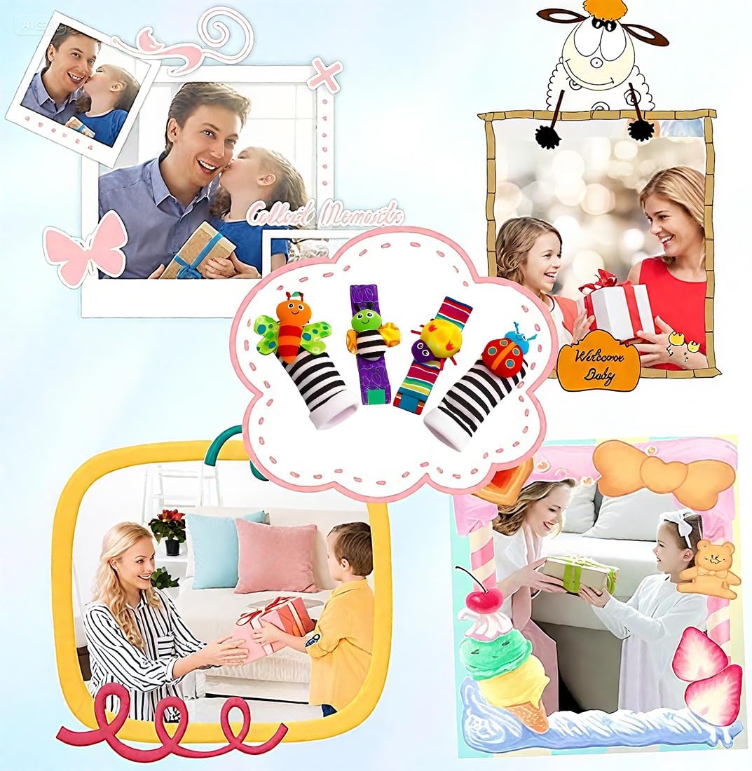 Materiali sicuri: Realizzati con materiali in cotone morbido e sicuro per i neonati, questi calzini e polsini sonagli sono sicuri da toccare e persino da mordere, rendendoli un giocattolo ideale per i primi mesi. Regalo ideale per neonati: Questo set di calzini è il regalo perfetto per una festa di benvenuto e un'aggiunta preziosa a qualsiasi lista dei desideri per neonati. Suoni attraenti: I calzini e i polsini sonagli sono dotati di motivi contrastanti, colori vivaci e suoni forti per stimolare i sensi del neonato e suscitare la sua curiosità. Comfortevoli da indossare: Il set include 1 paio di polsini morbidi e 1 paio di calzini, perfetti per i polsi e le caviglie del neonato. Dotato di cinturini allungabili che crescono con il bambino, garantendo divertimento a lungo termine. Giocattolo stimolante: Progettato per promuovere la vista, l'interazione e l'esplorazione del neonato, questo set di calzini sonagli è essenziale per lo sviluppo infantile e offre innumerevoli ore di gioco e apprendimento.