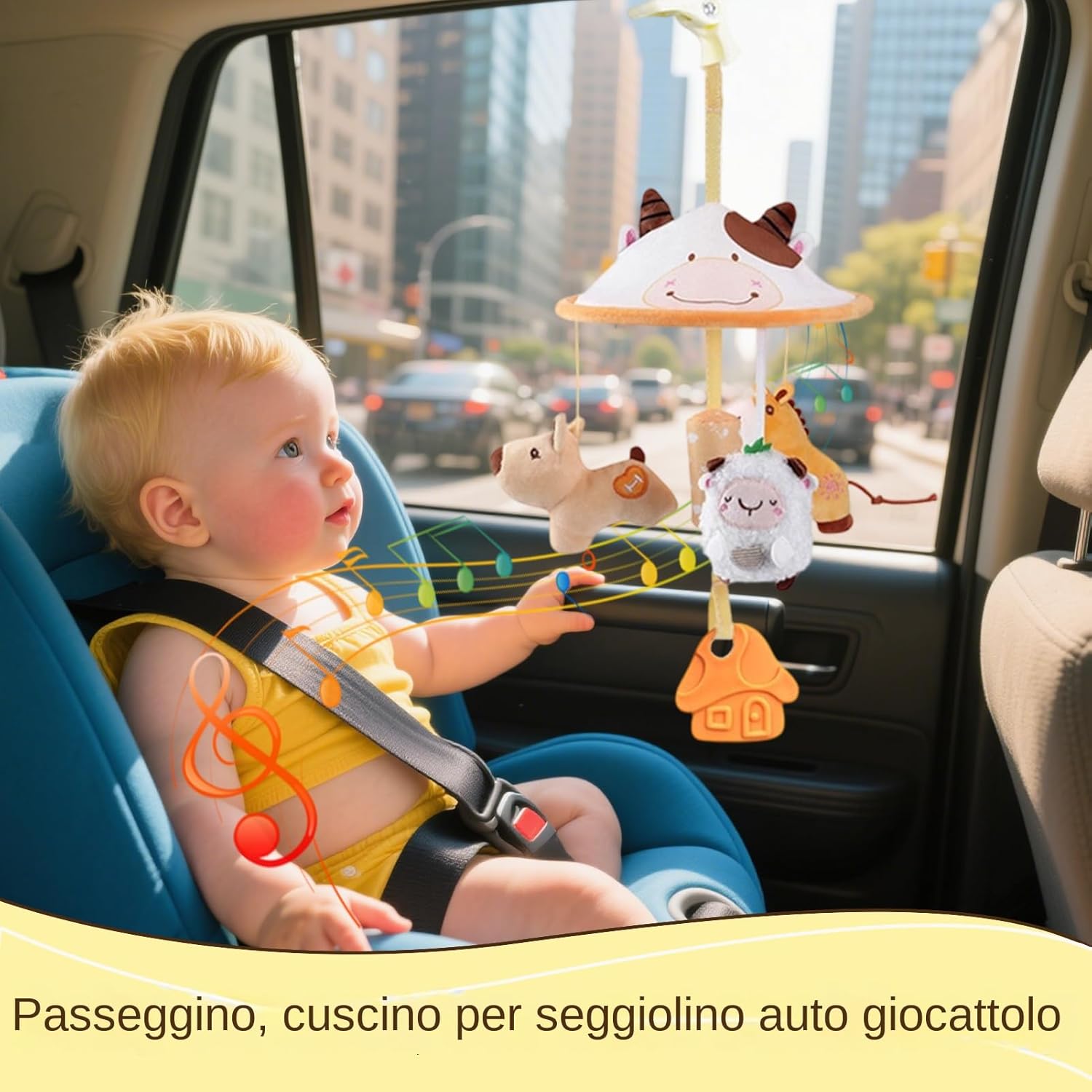 Gioco Interattivo: Ombrellino a tema fattoria con forme divertenti e design sospeso stimola curiosità coinvolgendo i bimbi in attività ludiche Elementi dinamici: Sviluppa i sensi con decorazioni sospese mobili e variazioni cromatiche, potenziando la coordinazione occhio-mano mediante esperienze tattili studiate per passeggini. Tema Fattoria Vivace: Accessorio passeggino coinvolgente con ombrello rotante dinamico, tiene il bambino calmo e intrattenuto migliorando le esperienze di viaggio con il suo tema fattoria adorabile, per creare ricordi preziosi tra genitore e bambino. Melodie Dolci: Funzione musicale con toni delicati che promuovono lo sviluppo uditivo bilanciando le emozioni del bambino grazie a suoni costantemente rilassanti e di alta qualità Adattabilità Totale: Rispondono a esigenze diverse come relax domestico o avventure in movimento, allineandosi perfettamente a passeggini e seggiolini auto grazie al profilo compatto e alla sospensione flessibile per semplicità operativa
