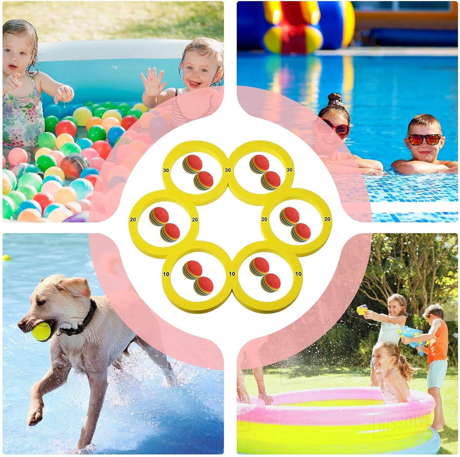 Design Flessibile e Resistente: Realizzato in materiale EVA ad alta densità, questo gioco da piscina combina una superficie liscia, proprietà impermeabili e struttura flessibile per garantire divertimento sicuro e senza preoccupazioni durante l'uso. Resistente agli urti e adatto a diverse condizioni acquatiche. Divertimento acquatico pratico: Con componenti galleggianti, questo gioco permette un recupero facile durante il gioco, ideale per piscine, laghi o spiagge. Il design portatile e lo rende facile da trasportare. Gioco Cooperativo: Progettato con regole intuitive, favorisce il genitori-figli attraverso meccanismi collaborativi in sessioni multigiocatore adatte a tutte le generazioni, sviluppando capacità di comunicazione e interazione Attività colorata: Il set da gioco include elementi arcobaleno che un'esperienza sensoriale completa, ideale per migliorare la precisione dei movimenti durante il gioco in acqua, con componenti progettati per massimizzare l'interazione ludica e l'apprendimento motorio Divertimento in Famiglia: Progettato per attività acquatiche in spiaggia o piscina, questo coinvolgente gioco promuove l'interazione tra famiglie e gruppi. Soddisfa varie preferenze di intrattenimento outdoor con un design adatto a tutti, garantendo momenti di puro divertimento.