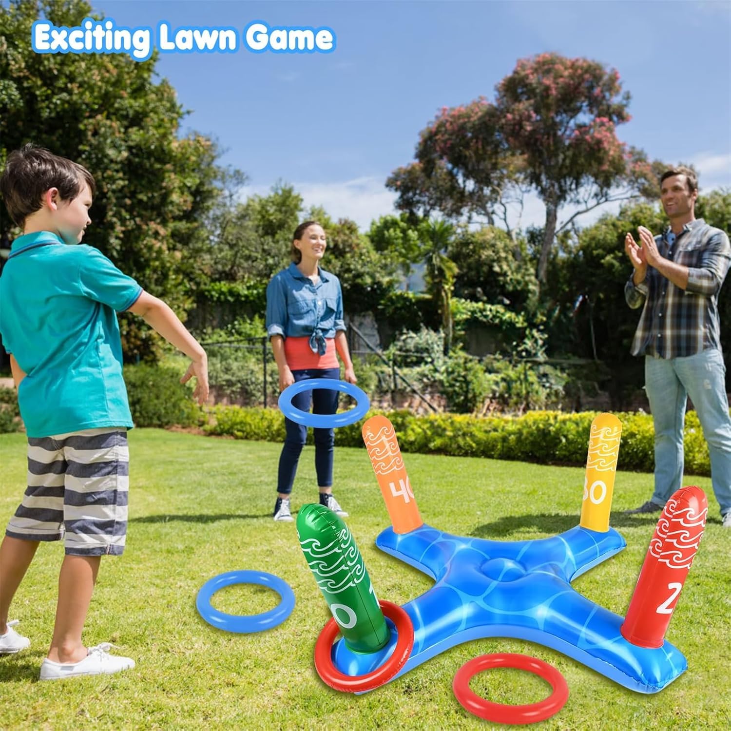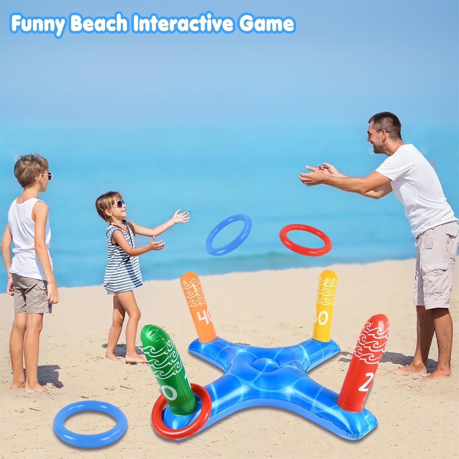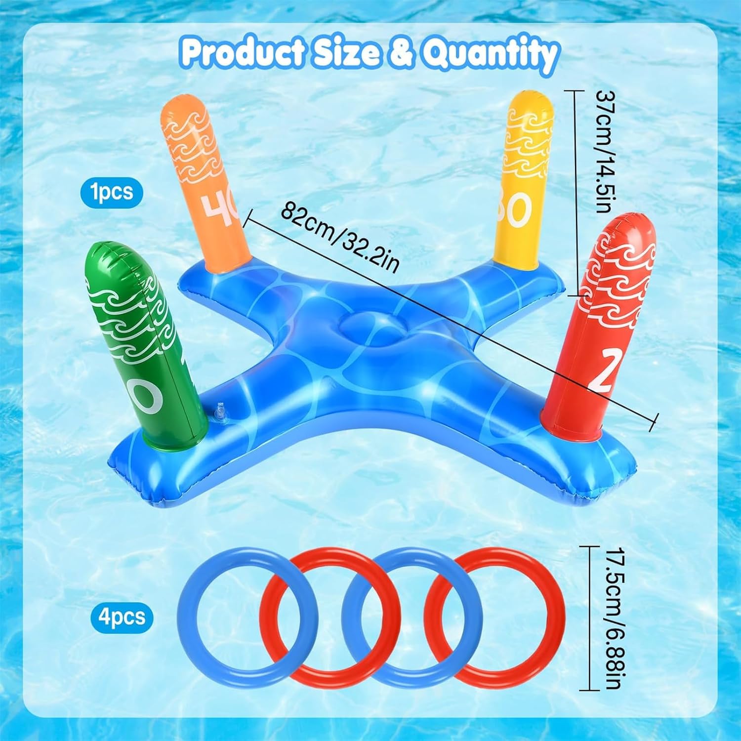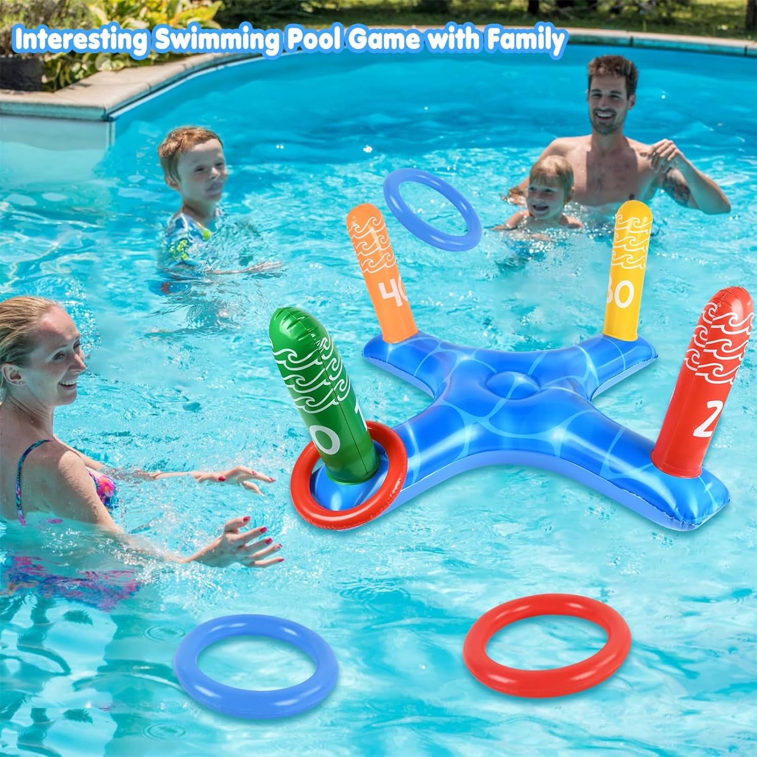Giochi Gonfiabili per Piscina: Include 1 gioco gonfiabile di lancio a croce da 31,5 x 14,3 pollici e 4 anelli gonfiabili (colori casuali). Rendi l'estate più emozionante divertendoti in piscina e goditi la giornata estiva perfetta. Design Creativo:Il concetto di design pieno di divertimento e creatività offre abilità di lancio stimolanti, gare di lancio in cerchio e altre modalità di gioco, migliorando l'esperienza di gioco in acqua, suscitando l'interesse dei giocatori e godendosi il divertimento dei giochi in piscina. Materiale di Alta Qualità: Il giocattolo gonfiabile per piscina è realizzato in materiale PVC addensato di alta qualità, che ha eccellenti proprietà di aria e impermeabilità e non si graffia o sbiadisce facilmente. Durevole e riutilizzabile per un divertimento duraturo sull'acqua. Facile da Preparare:Il gonfiabile per piscina si gonfia e si sgonfia rapidamente, rendendolo pronto per divertenti giochi d'acqua in pochissimo tempo. Risparmiate tempo ed energia e godetevi il gioco più facilmente. Utilizzo in Scene Multiple:Il set di giochi da piscina è adatto a varie occasioni estive, come feste in piscina, feste in spiaggia, feste di compleanno, giochi in giardino, giochi in spiaggia, giochi di biliardo, attività all'aperto e altro ancora. Goditi il nuoto estivo in piscina con la famiglia e gli amici e riunisci la gioia!